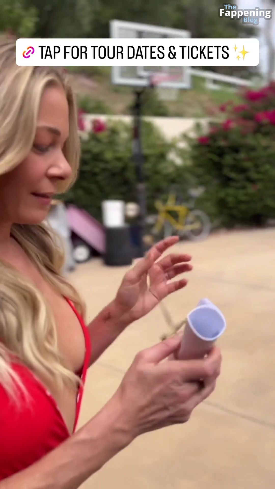 Prepárate para quedar impresionado con las impresionantes fotos y video de Leann Rimes, mostrando un escote serio con sus grandes y voluptuosos pechos en un traje de baño rojo súper escotado que deja boquiabierto. Está causando sensación mientras anuncia su próxima gira.