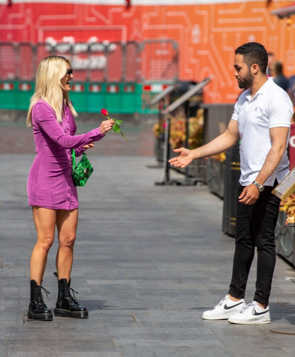 La bomba rubia recibe una rosa roja de un caballero fuera de los estudios.