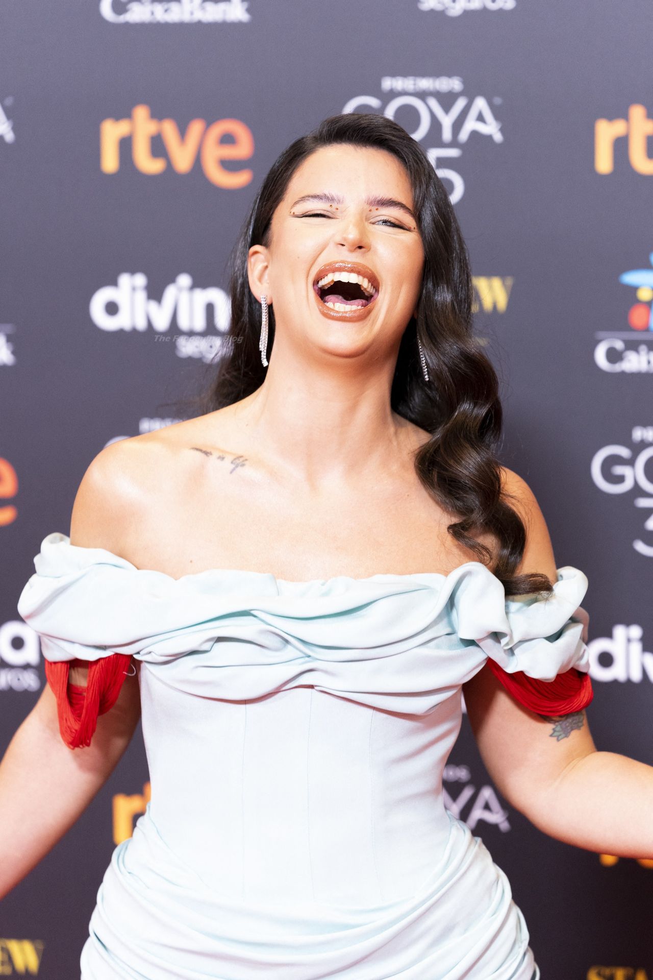 La cantante argentina Nathy Peluso posa en la alfombra roja y actúa en la ceremonia de los Premios Goya de la Academia de Cine Español en Málaga, España, 03/06/2021.