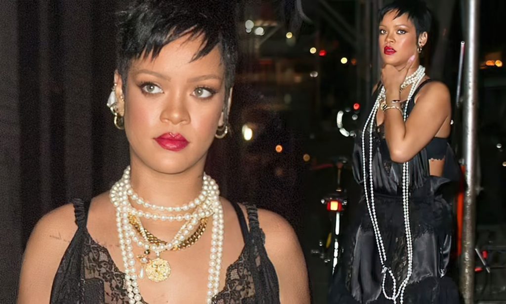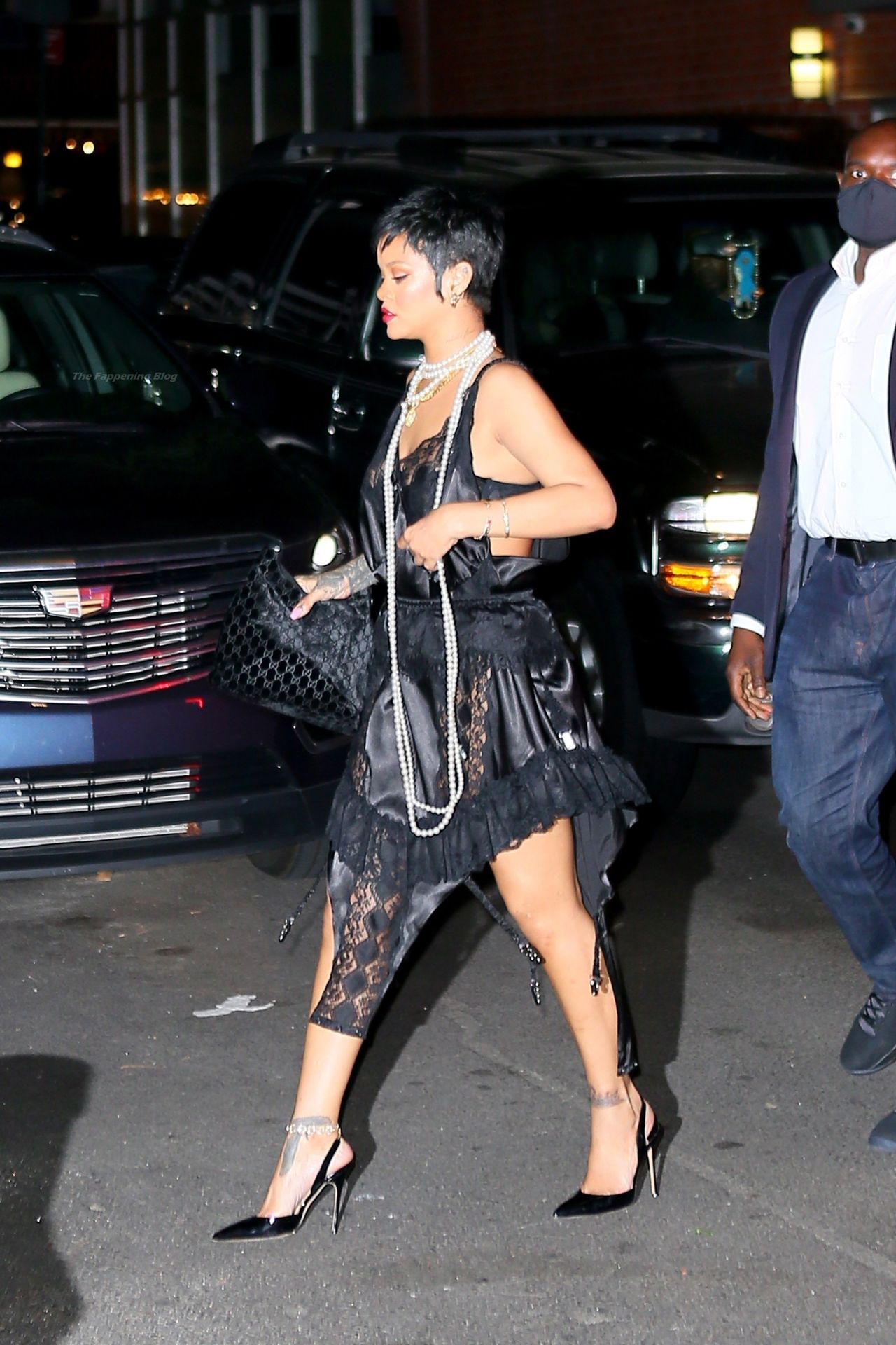 Cantante y estrella de The Fappening Rihanna va a cenar al restaurante italiano Carbone con un sexy vestido negro de encaje y tacones – Nueva York, 07/05/2021.