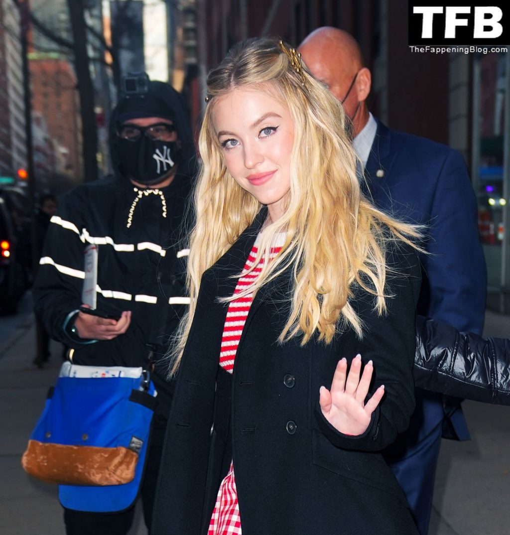 Sydney Sweeney de piernas largas sale del programa de Drew Barrymore en Manhattan (48 fotos)