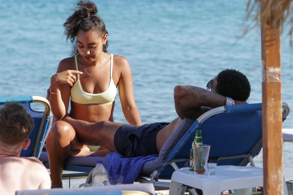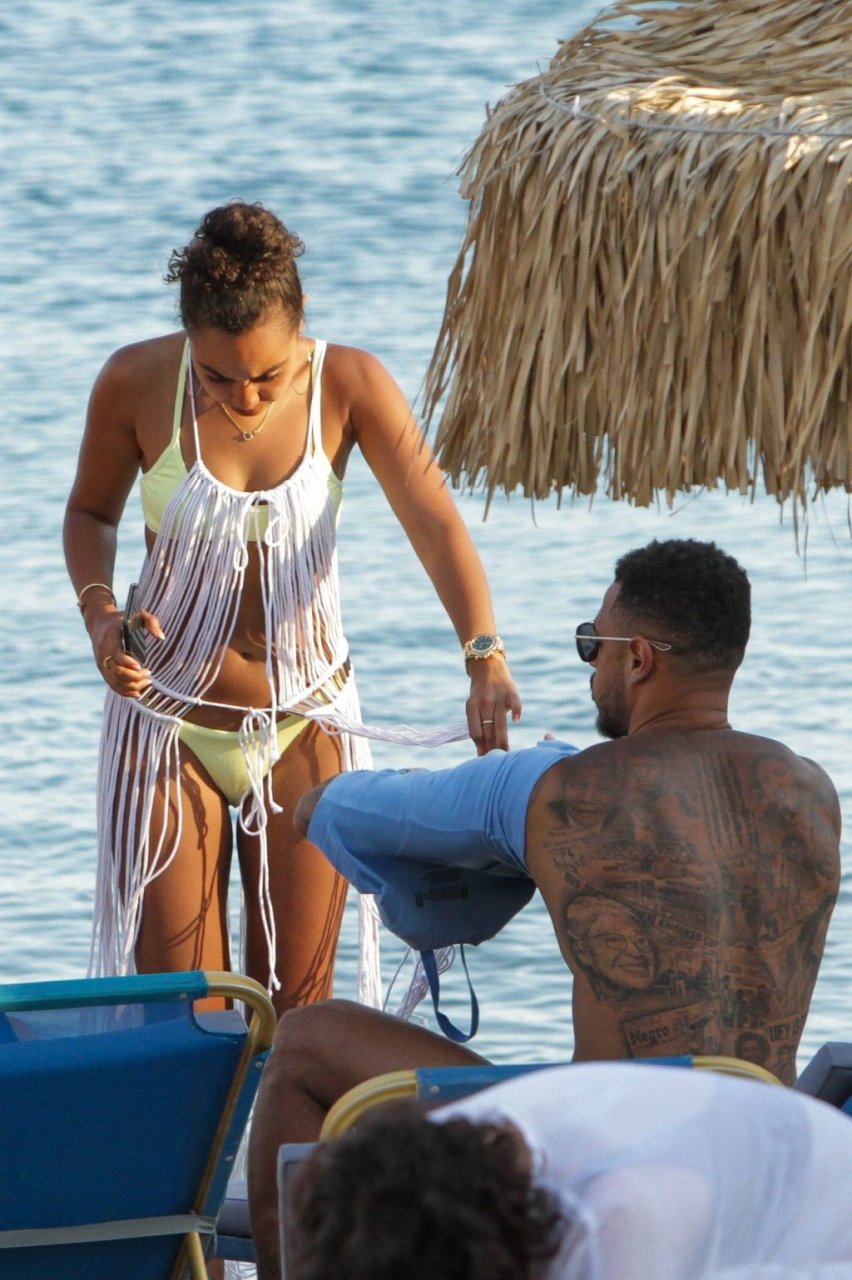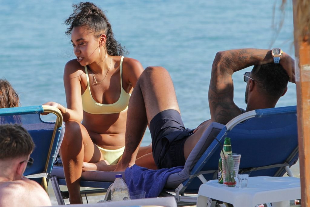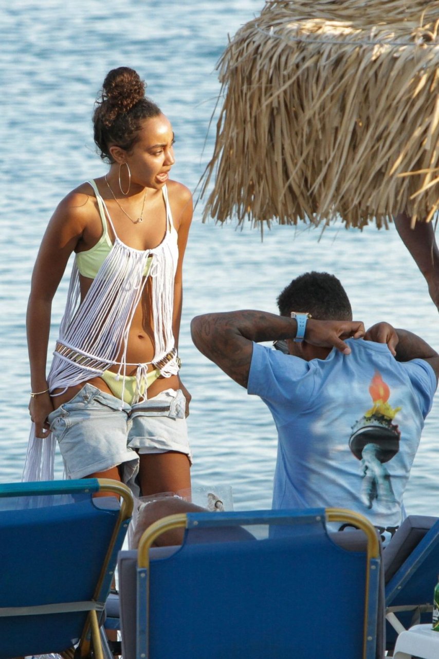 Leigh-Anne Pinnock fue vista en un bikini amarillo con su novio Andre Grey en la playa de la isla de Mykonos, Grecia, 08/06/2019.