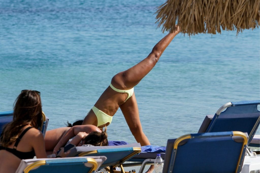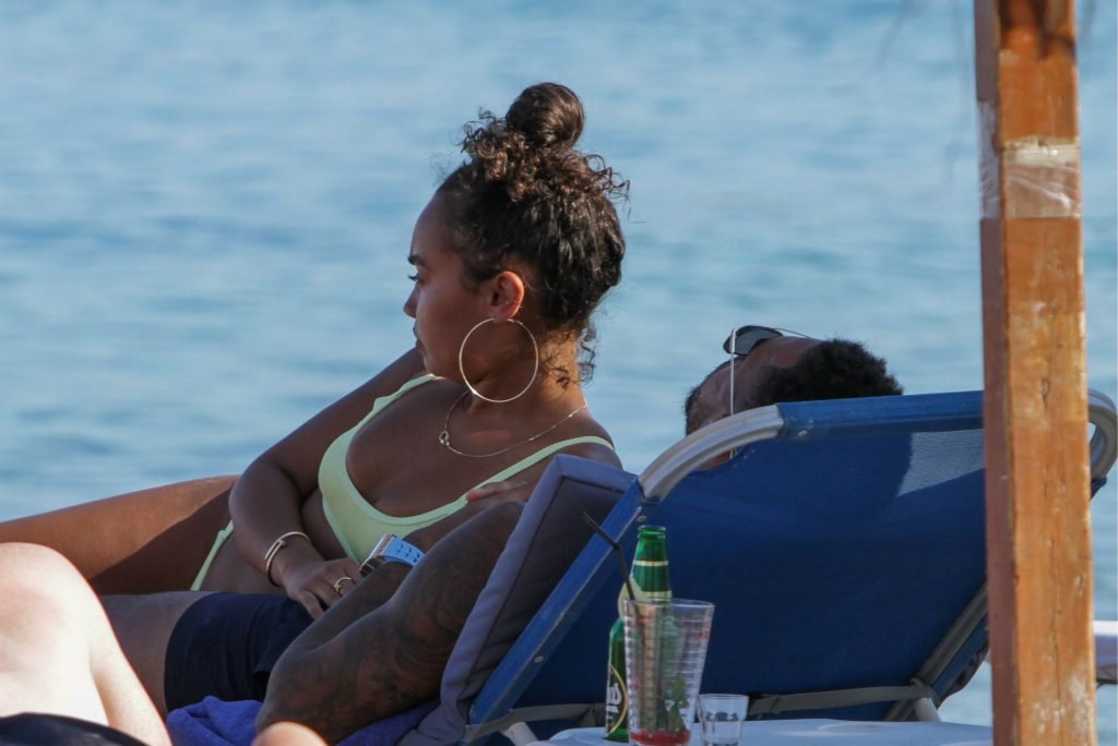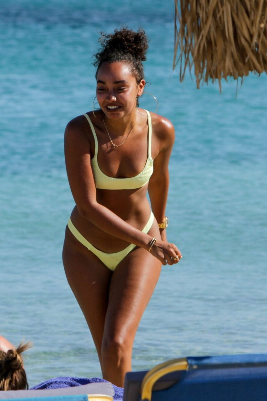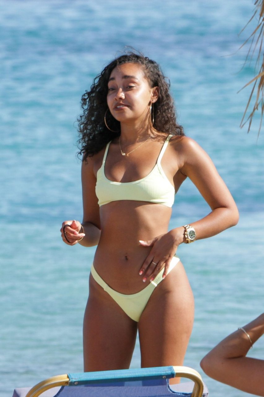 Leigh-Anne Pinnock fue vista en un bikini amarillo con su novio Andre Grey en la playa de la isla de Mykonos, Grecia, 08/06/2019.