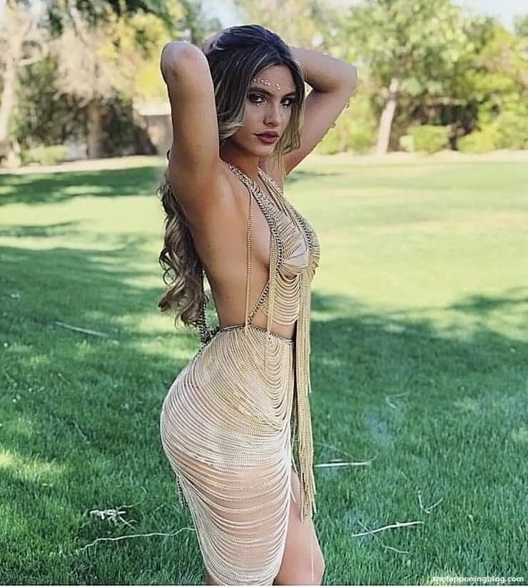 Once again, Lele Pons tits almost fell out of her cleavage! She wore a long sparkly gown as she posed for a few photos for her Instagram! This is one of the biggest cleavages that she’s worn so far! And that puts her in competition for the biggest cleavages on celebrities! Of course, the star of significant cleavages is Margot Robbie, who is still in the first place, but Lele Pons is not that far from her!