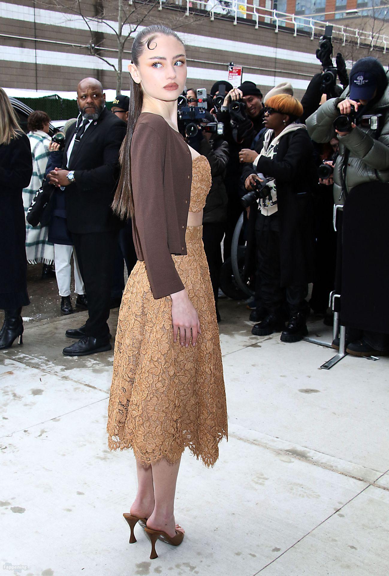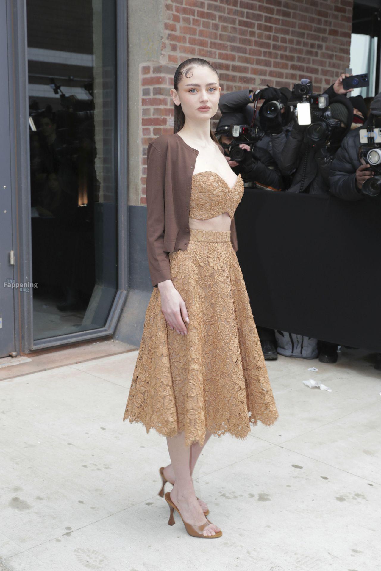 La modelo Leni Klum asiste al desfile de moda Michael Kors Colección 2025 con un conjunto de encaje que dejó sus sensuales pechos completamente a la vista.