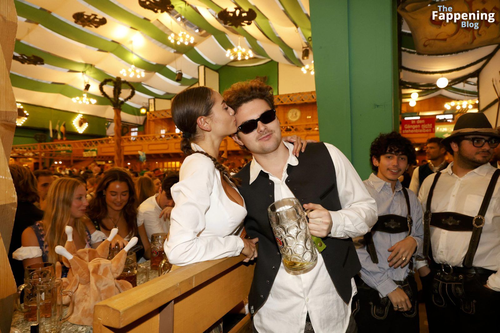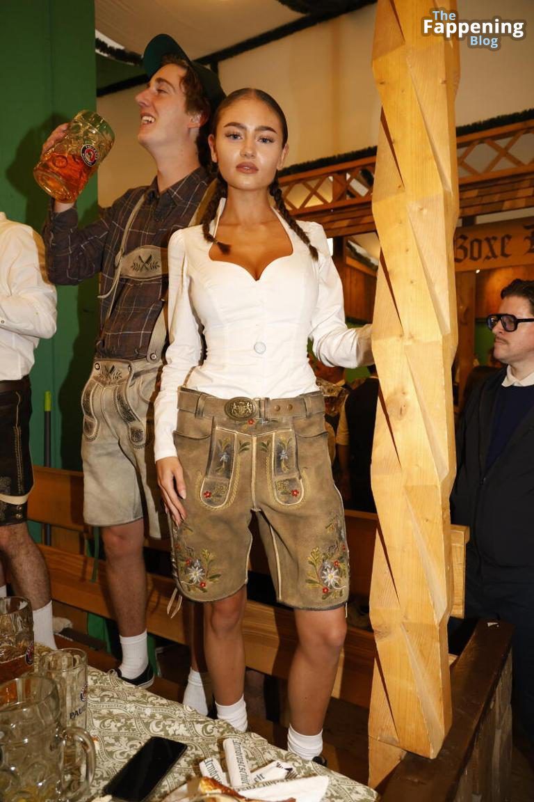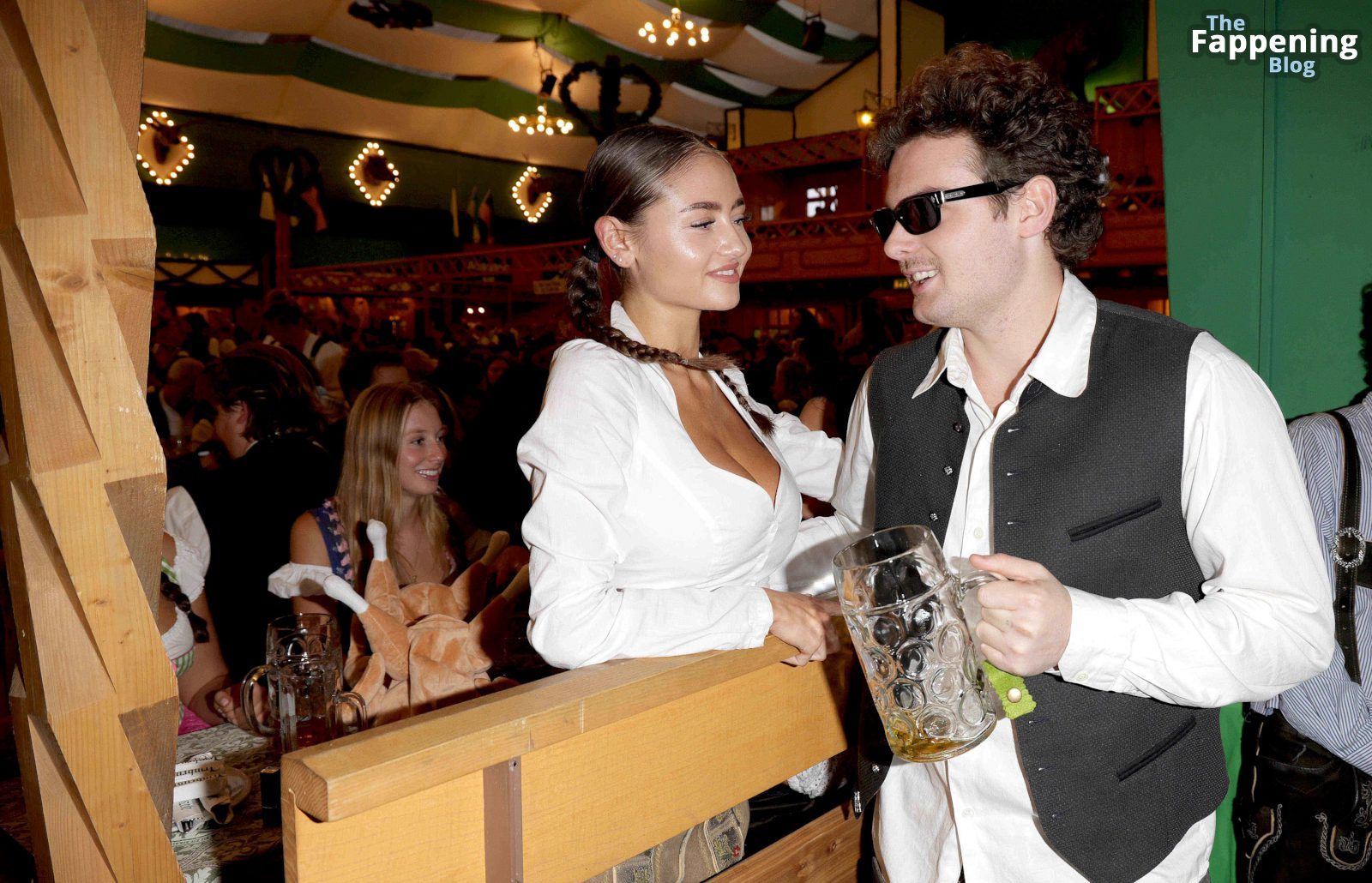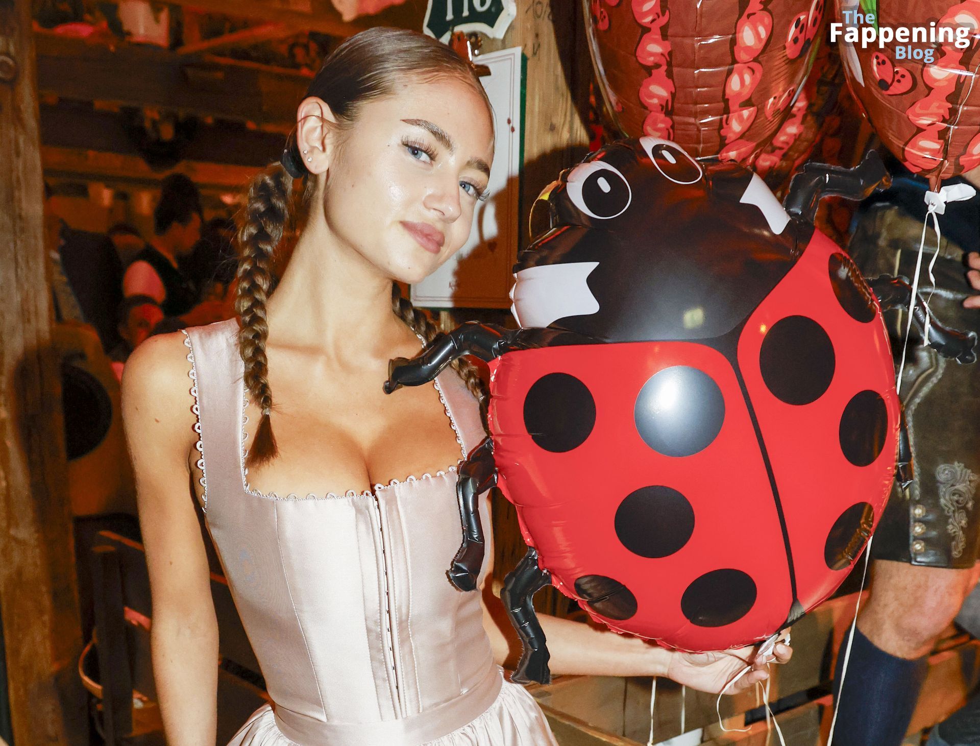 La modelo Leni Klum muestra un impresionante escote con un ajustado top blanco en el Oktoberfest.