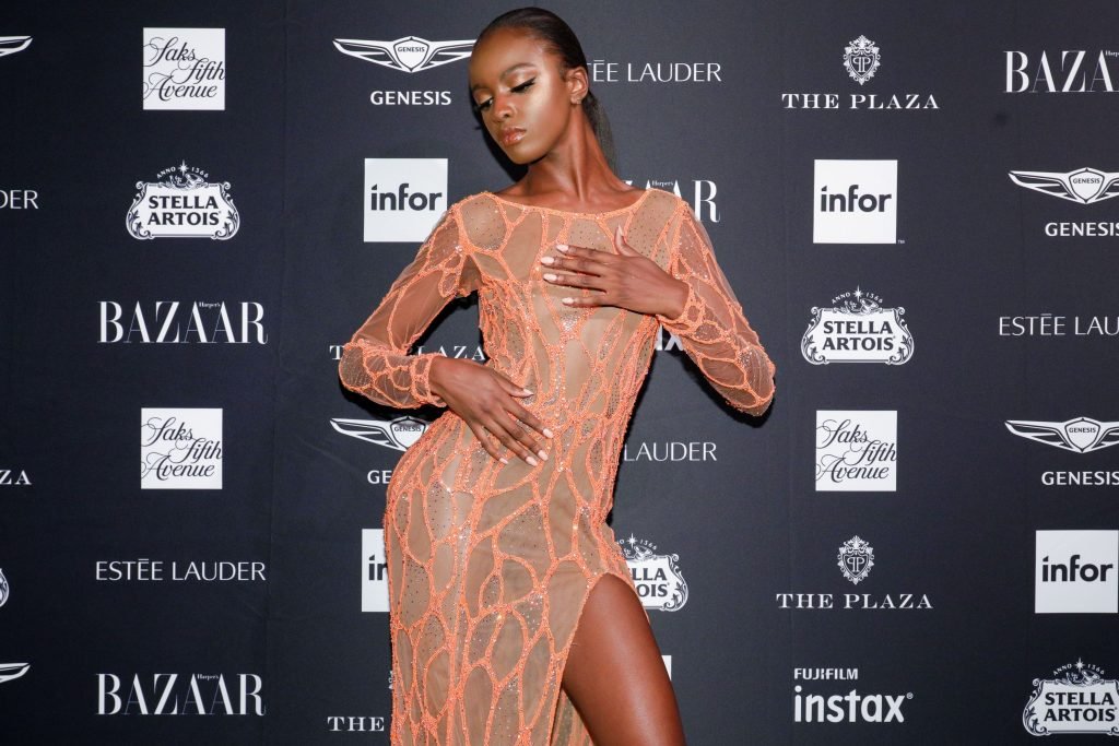 Leomie Anderson asiste a la fiesta ICONS de Harper’s BAZAAR en The Plaza Hotel en Nueva York, 07/09/2018. Leonie Anderson es una modelo y diseñadora británica de 25 años. En 2015, fue elegida como modelo para el Victoria’s Secret Fashion Show. En 2016, fundó su marca de ropa llamada LAPP.