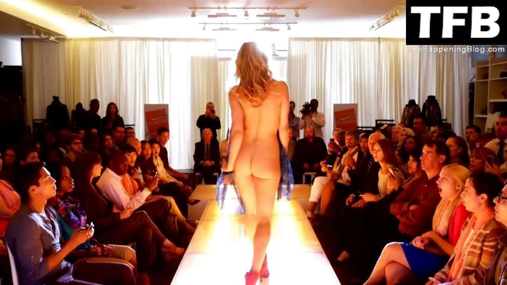 Leslie Bibb camina por la pasarela en un desfile de moda desnuda, solo con un par de zapatos rojos y algunas bufandas colgadas en su cuello. Vemos su trasero desnudo desde atrás mientras avanza por la pasarela, y luego otra mujer le quita las bufandas, dejando a Leslie desnuda. Un guardia de seguridad entonces le aplica una descarga eléctrica en el cuello y ella cae entre la multitud.
