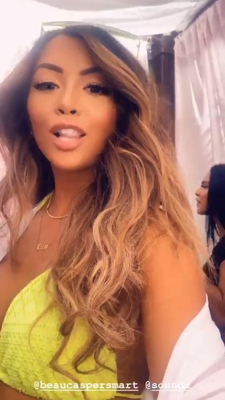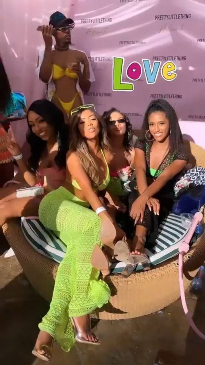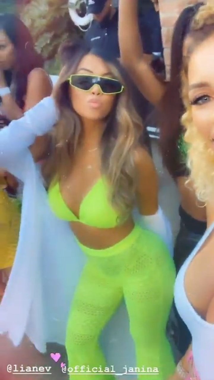 La cantante Liane V (Valenzuela) fue vista con un conjunto verde en la fiesta de lanzamiento de PrettyLittleThing x Ashanti en The Hollywood Roosevelt, 30/06/2019.