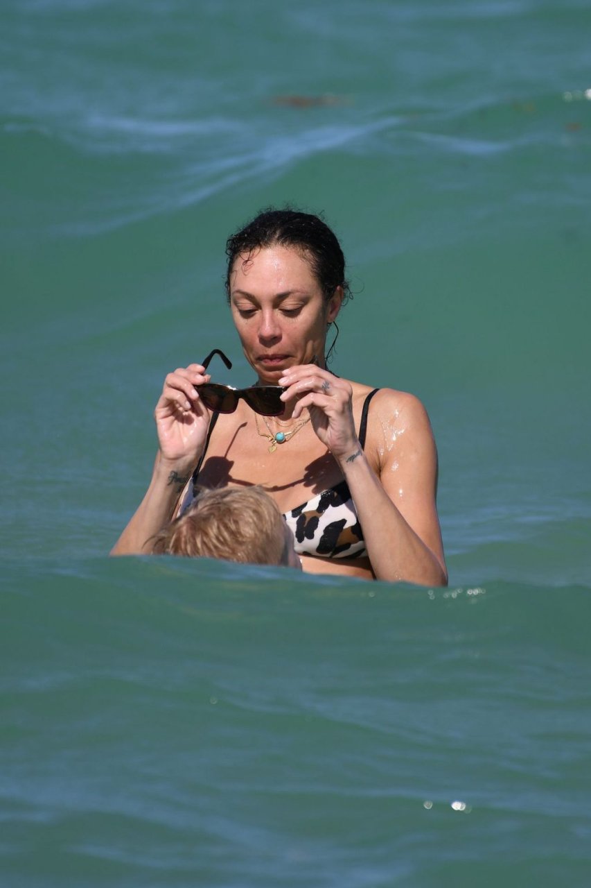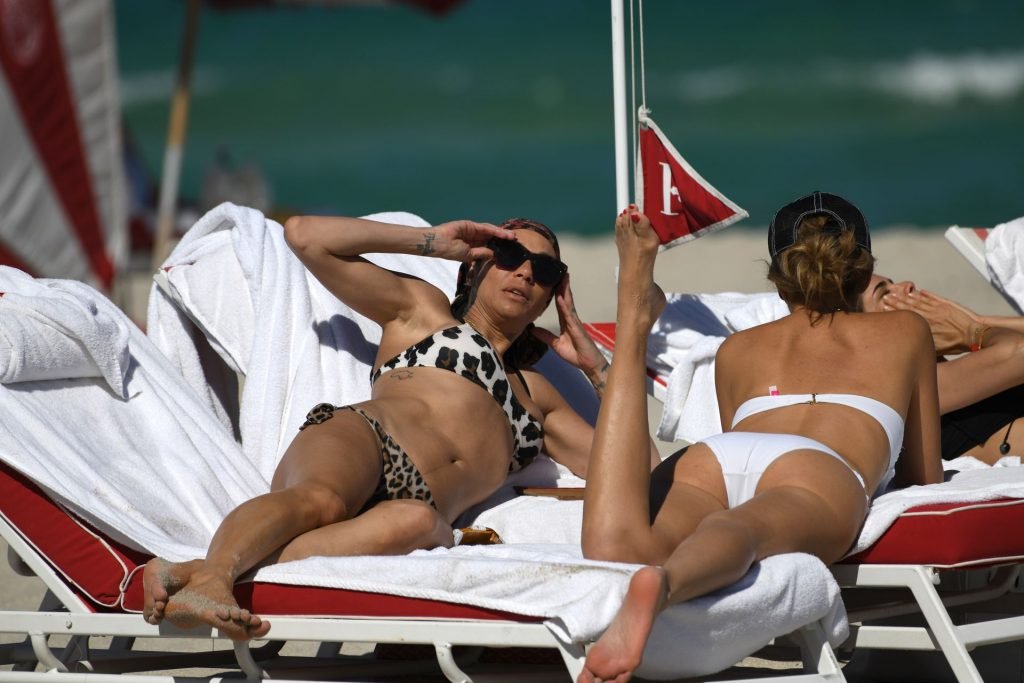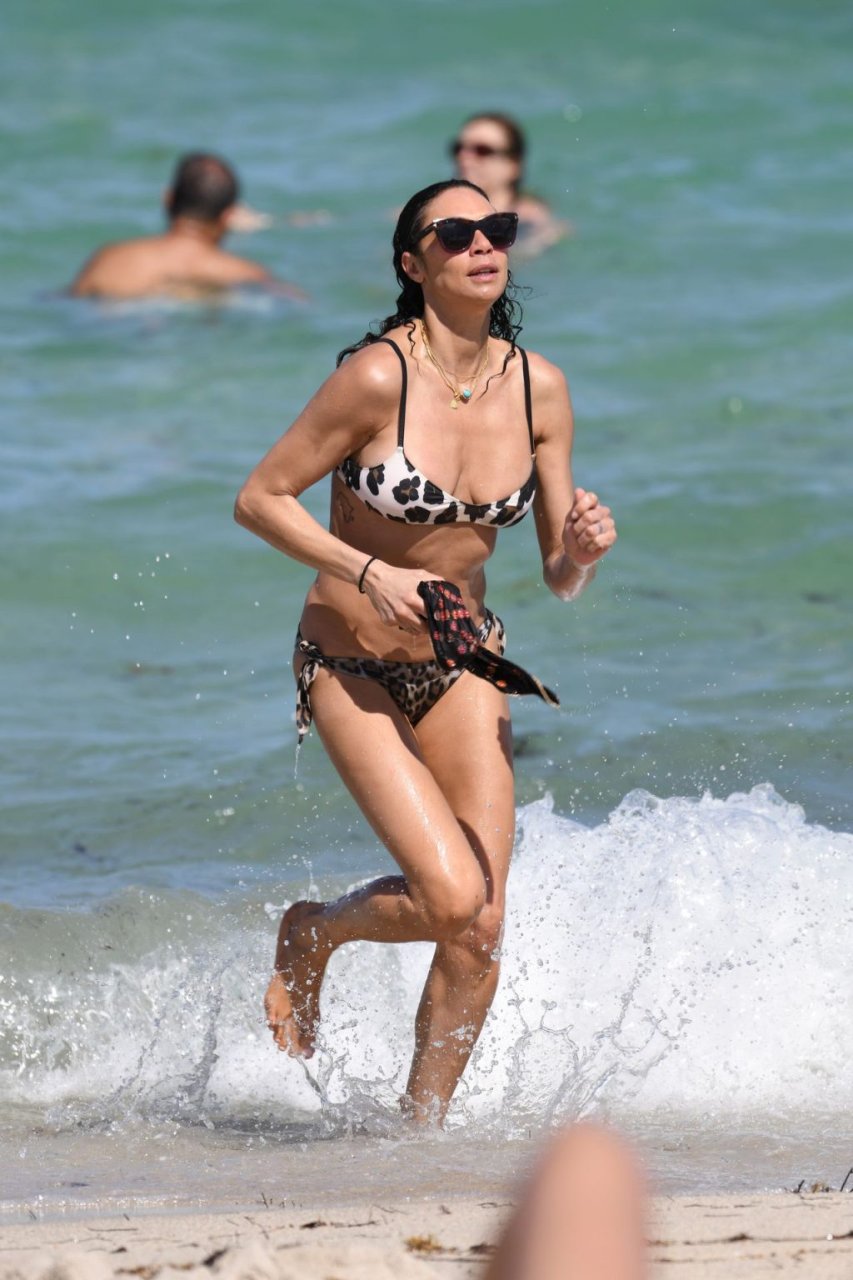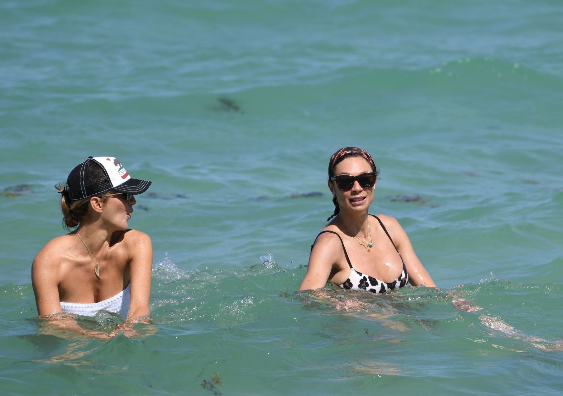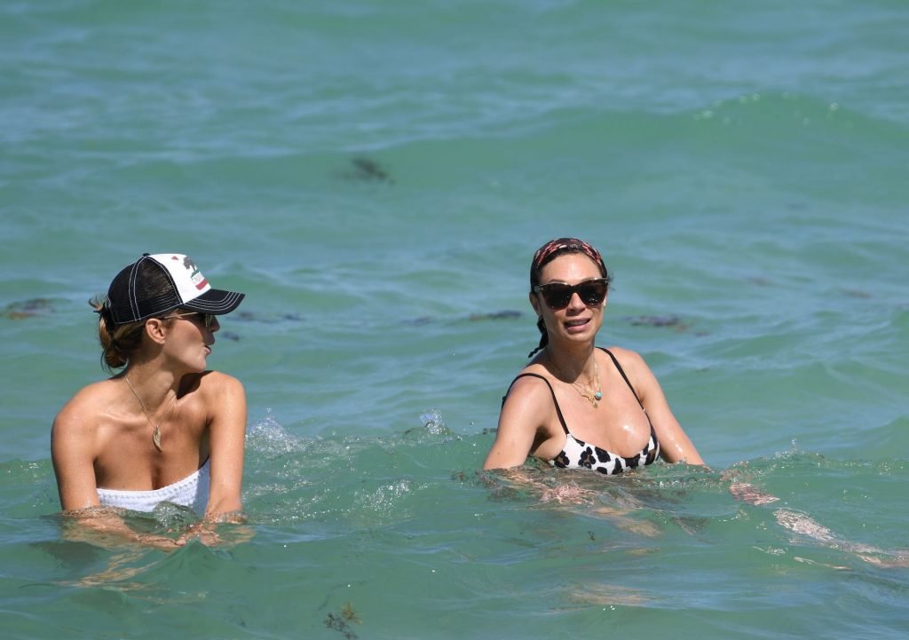 Lilly Becker muestra su figura con un bikini combinado mientras se divierte en Miami Beach, 16/04/2019. La ex señora Boris Becker fue vista pasando un buen rato con amigos y su hijo Amadeus esta tarde en Miami Beach, usando un par de braguitas de bikini con estampado de leopardo y un top de bikini combinado.