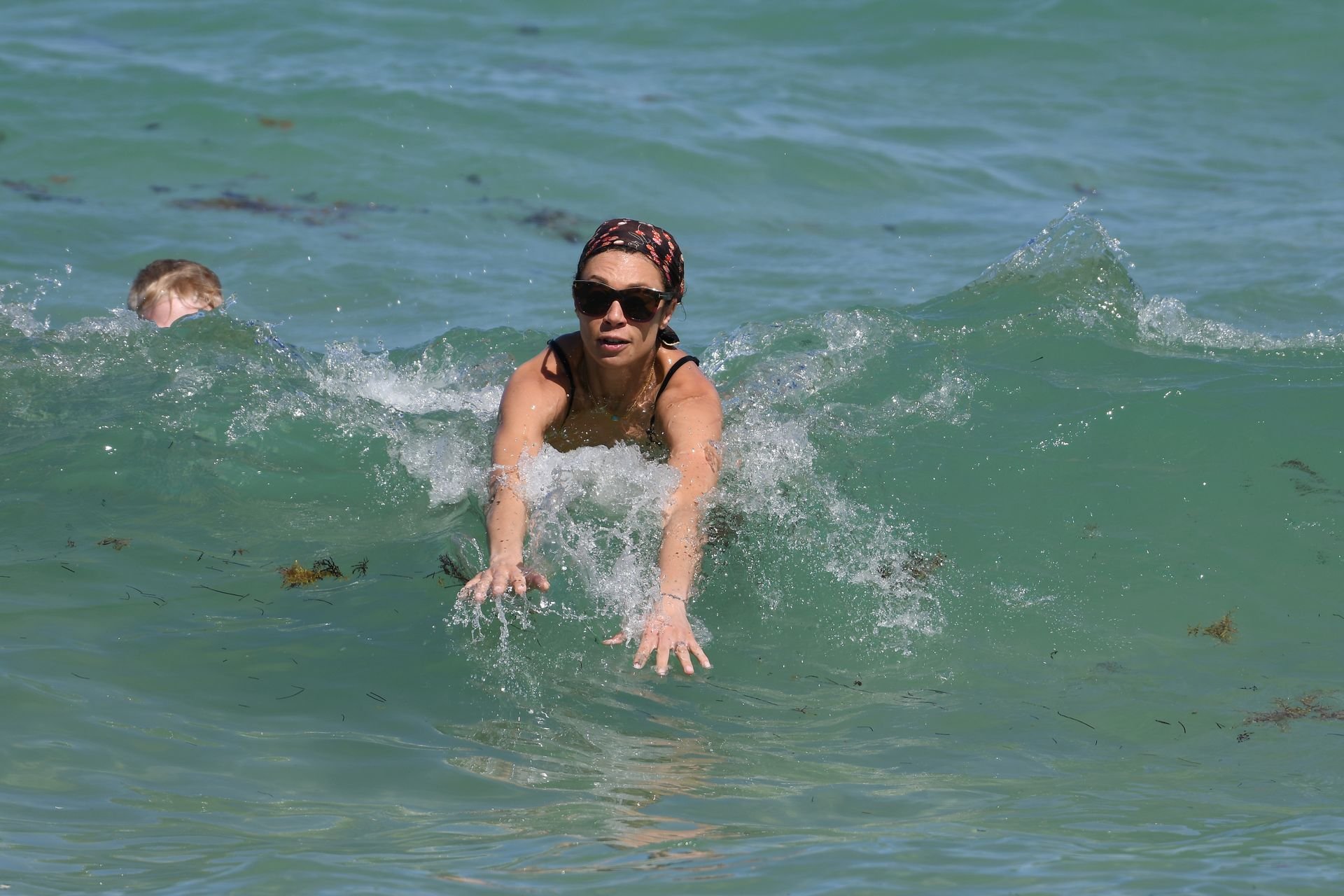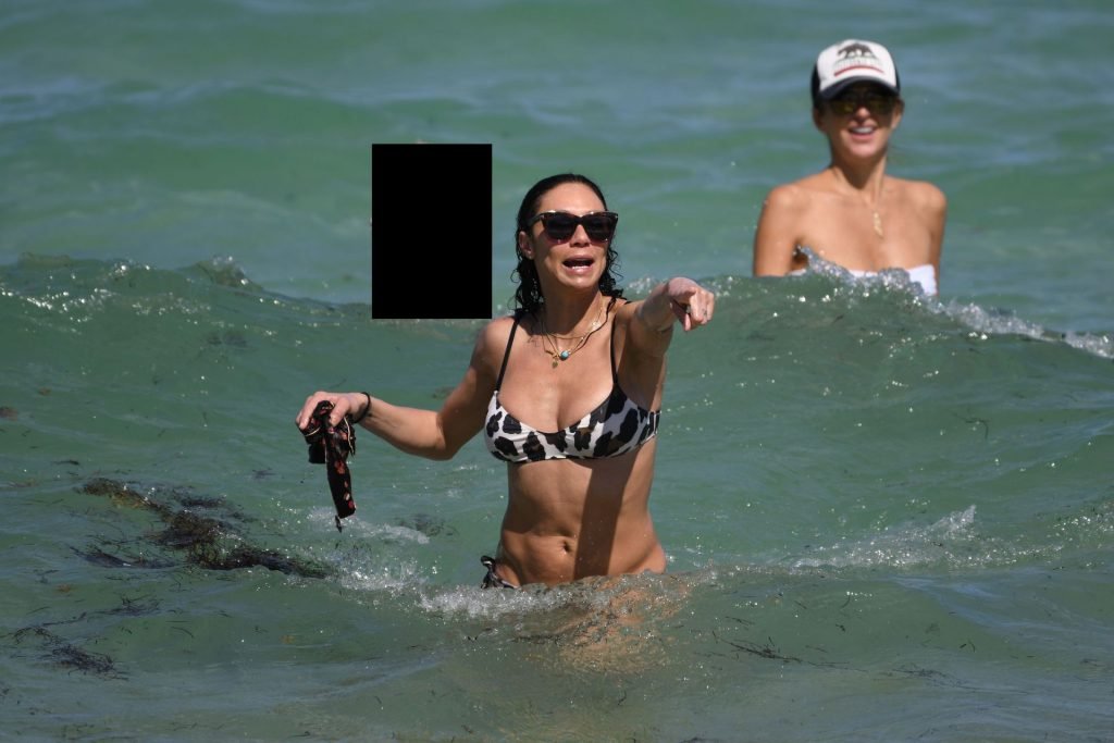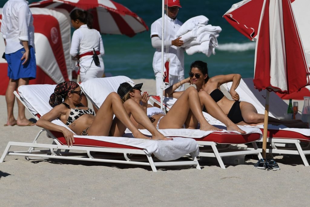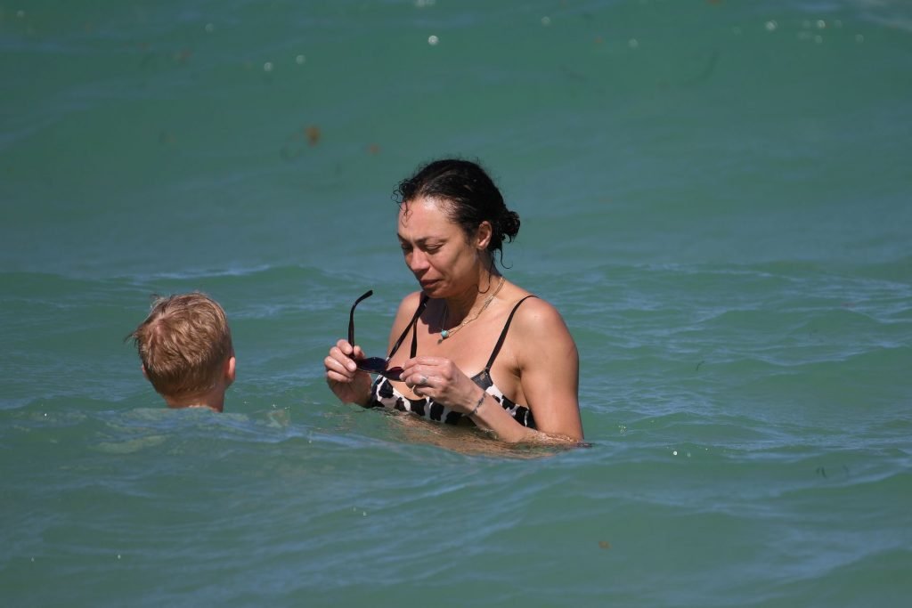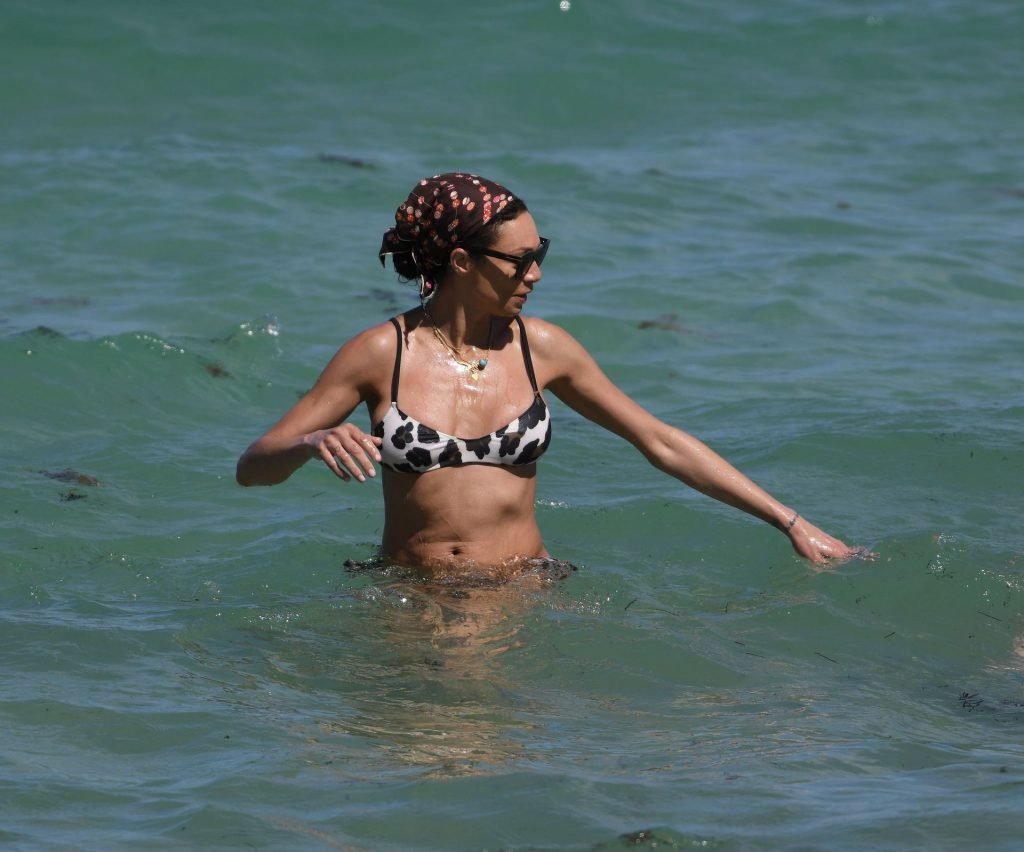 Lilly Becker muestra su figura con un bikini combinado mientras se divierte en Miami Beach, 16/04/2019. La ex señora Boris Becker fue vista pasando un buen rato con amigos y su hijo Amadeus esta tarde en Miami Beach, usando un par de braguitas de bikini con estampado de leopardo y un top de bikini combinado.