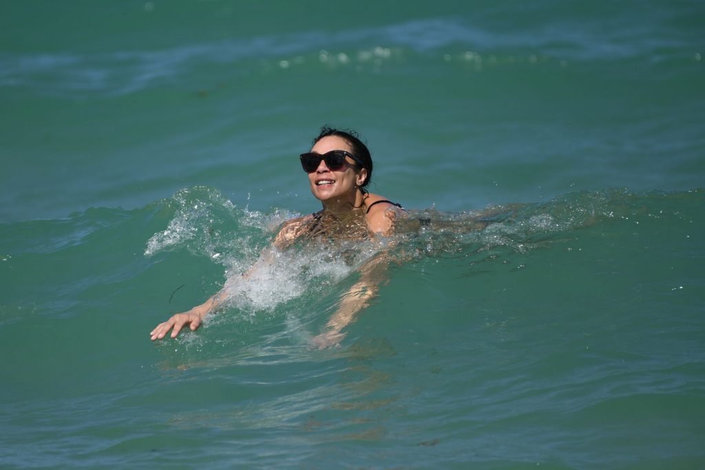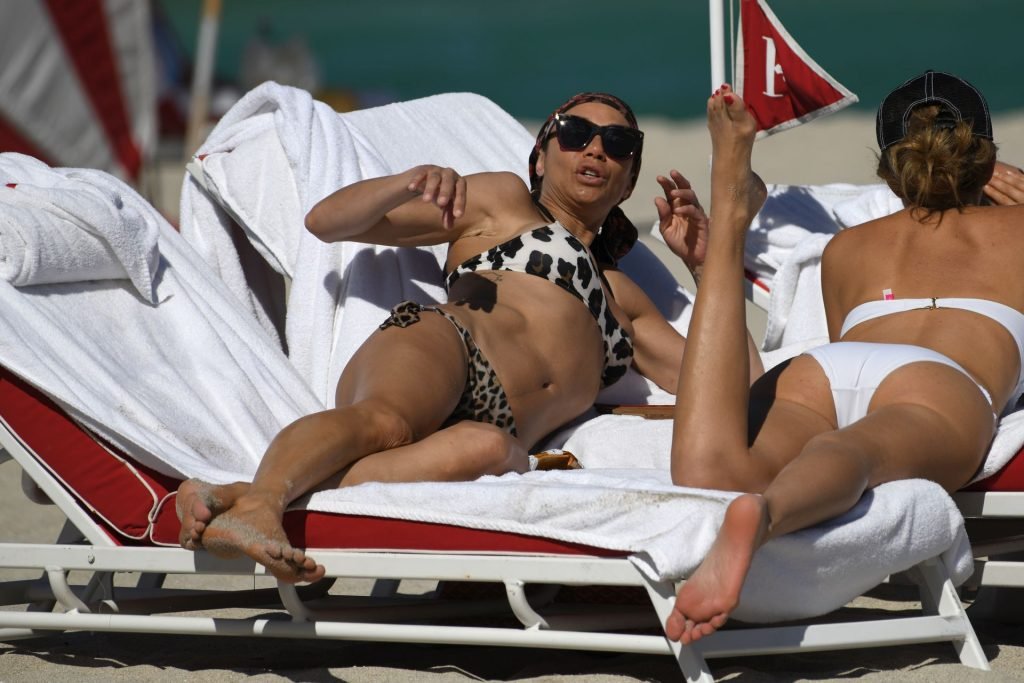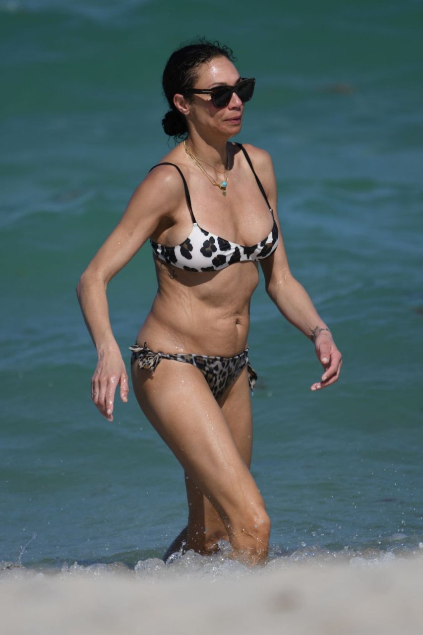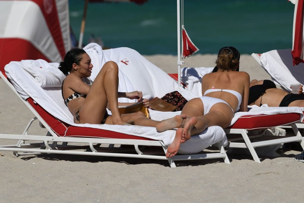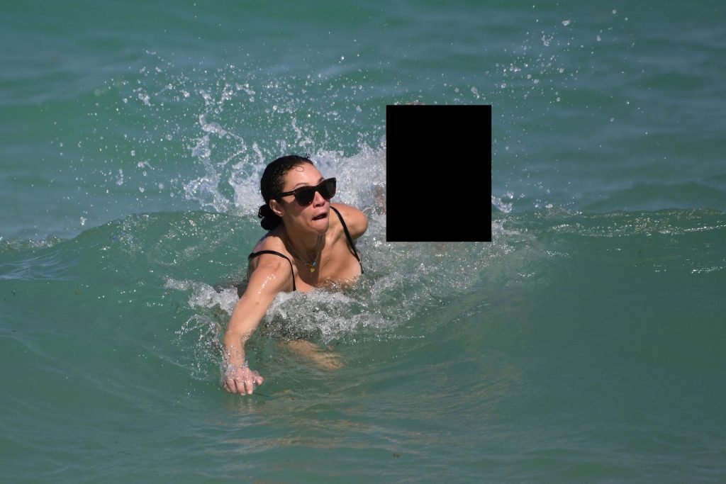 Lilly Becker muestra su figura con un bikini combinado mientras se divierte en Miami Beach, 16/04/2019. La ex señora Boris Becker fue vista pasando un buen rato con amigos y su hijo Amadeus esta tarde en Miami Beach, usando un par de braguitas de bikini con estampado de leopardo y un top de bikini combinado.