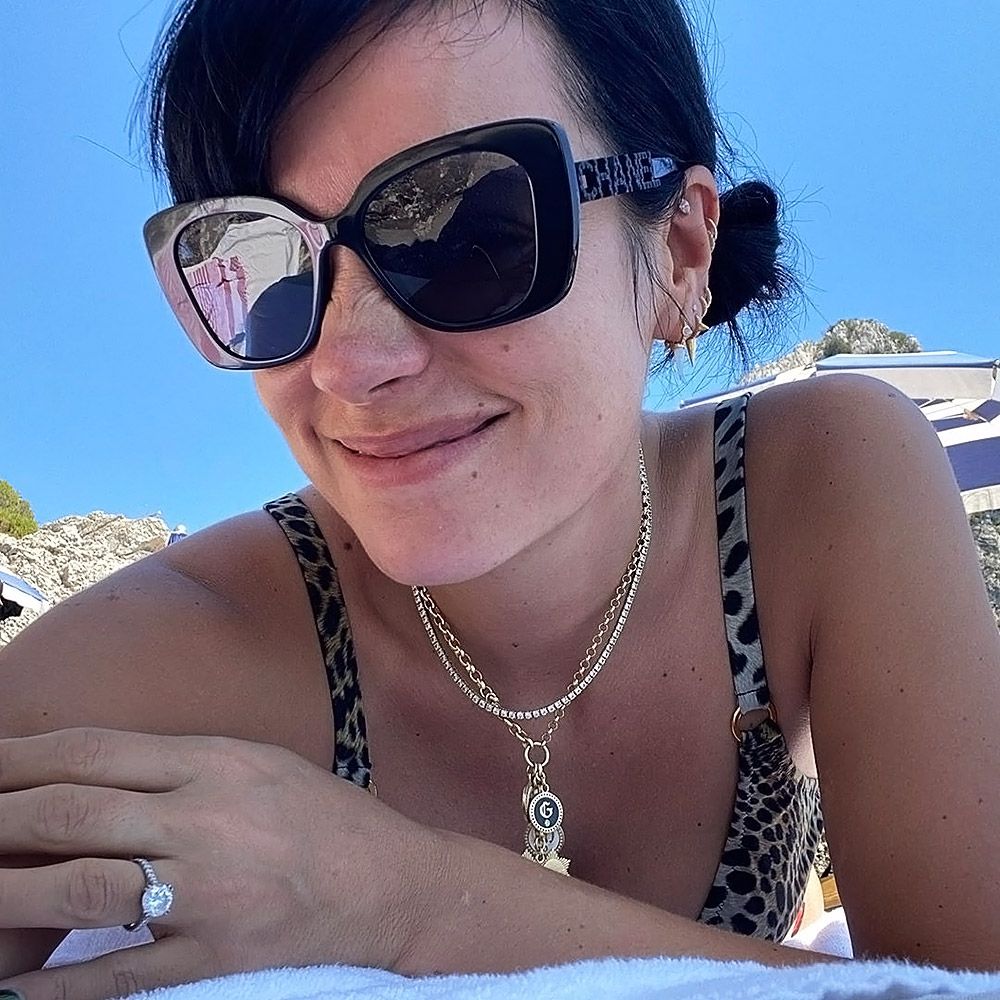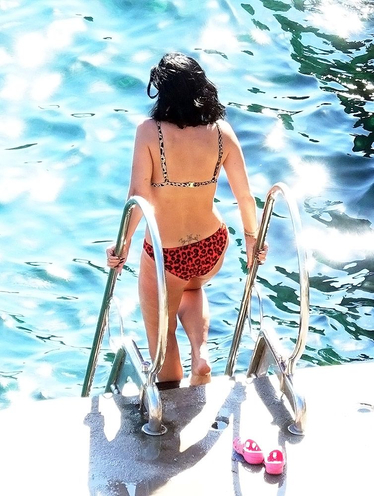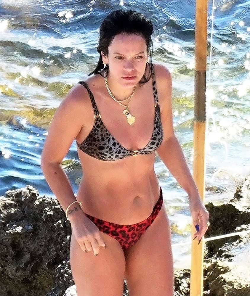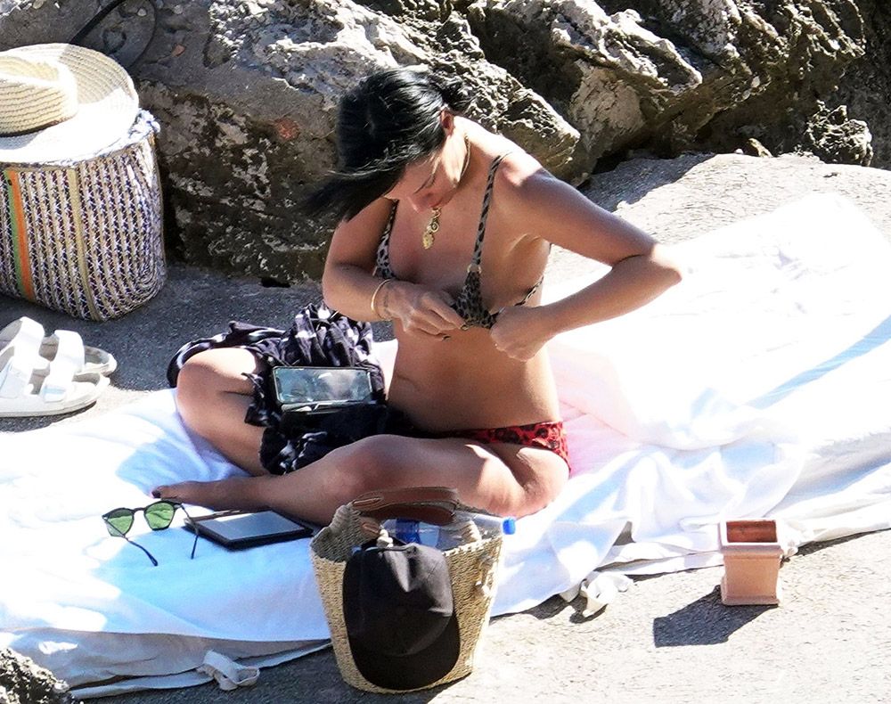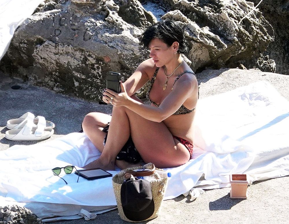 Lily Allen showed her boobs and hard nipples again! Now she is seen in Capri, wearing an animal print bikini. Lily looked like always, stoned and ugly. This July was waited for too long!