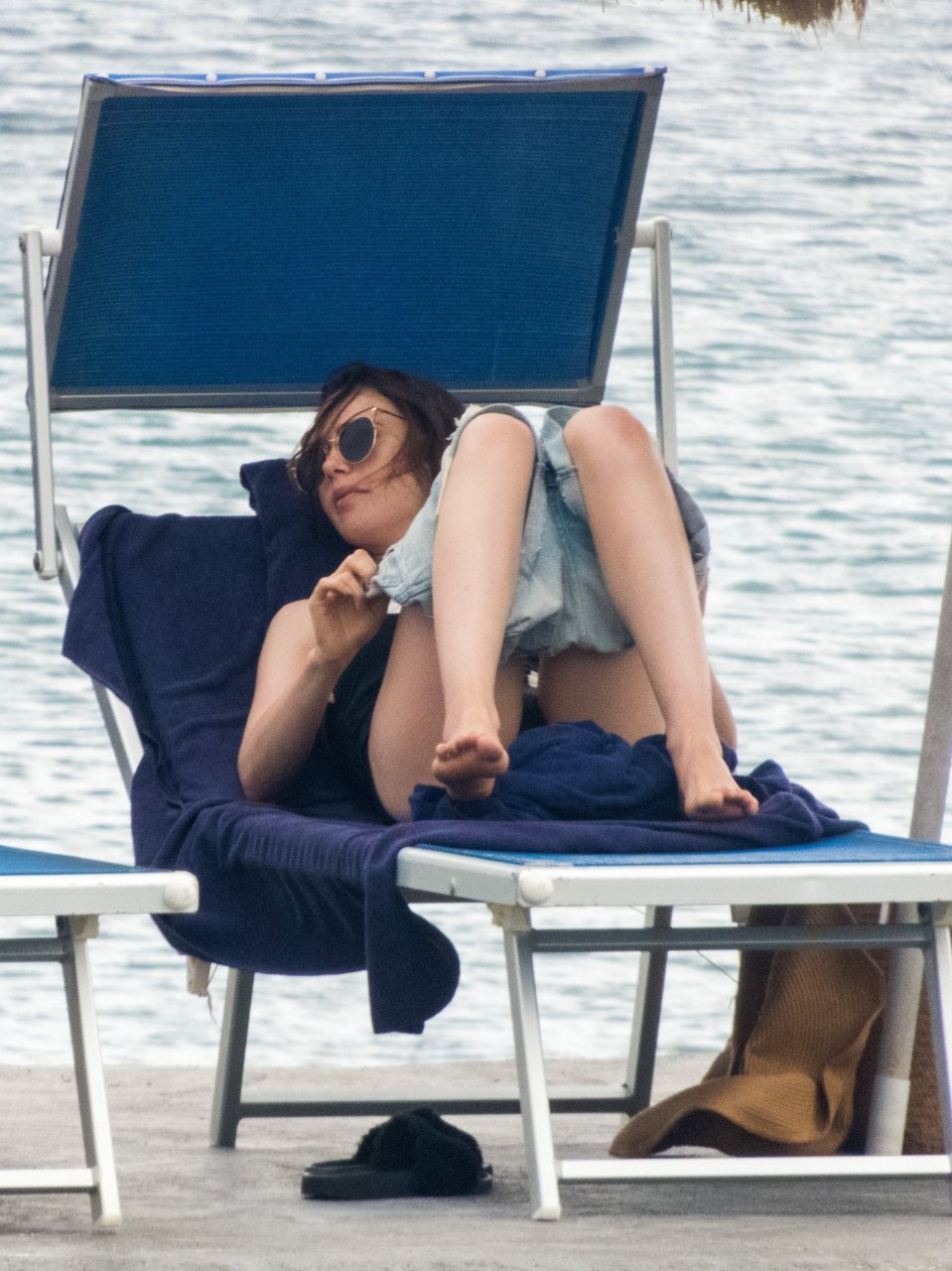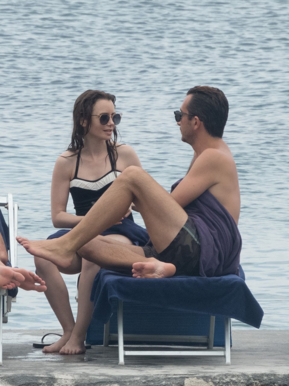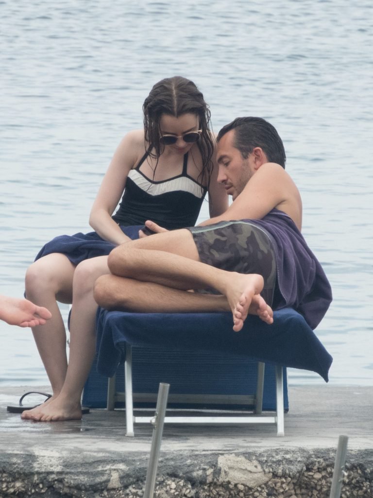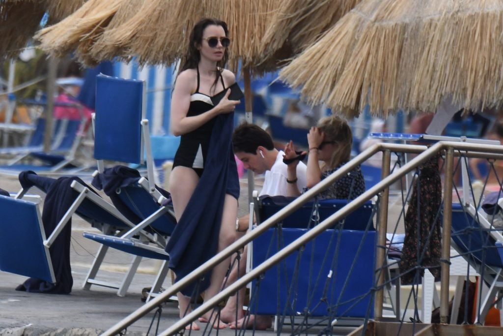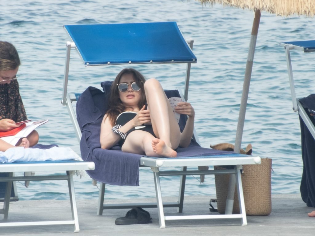 La actriz británico-estadounidense Lily Collins (29) fue vista con un traje de baño de una pieza negro mientras se zambullía en las aguas del hotel Albergo Della Regina Isabella en Ischia, Italia, 16/07/2018.