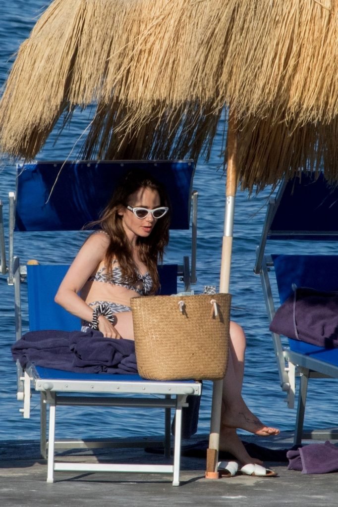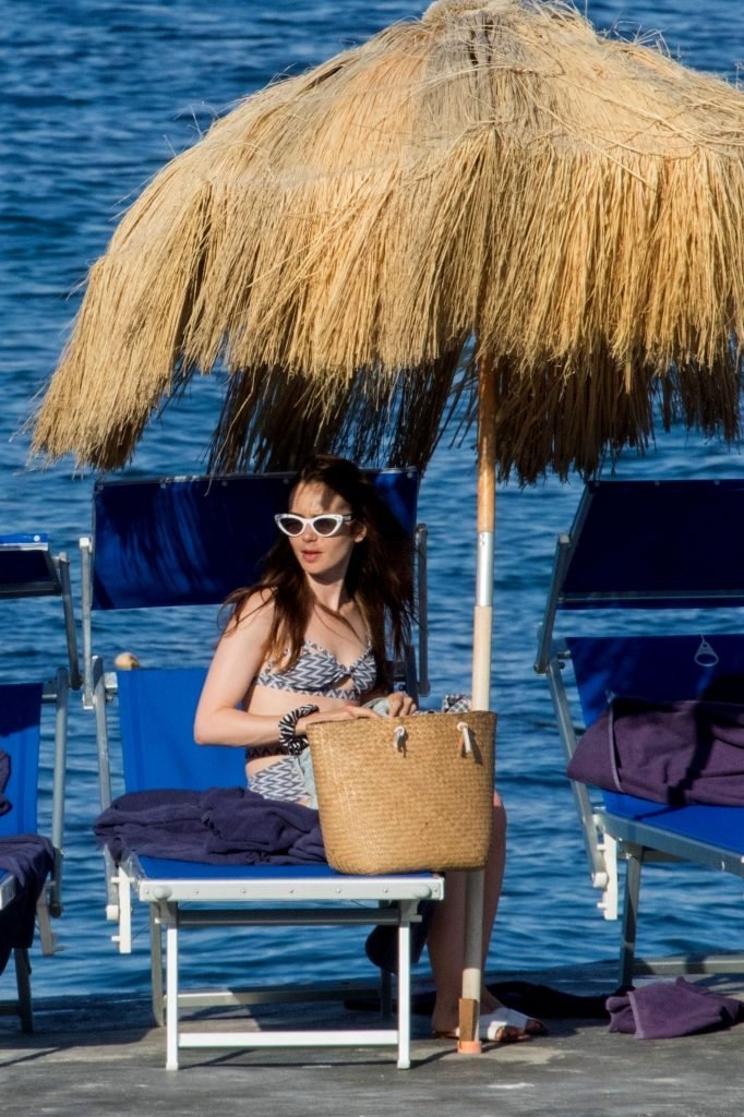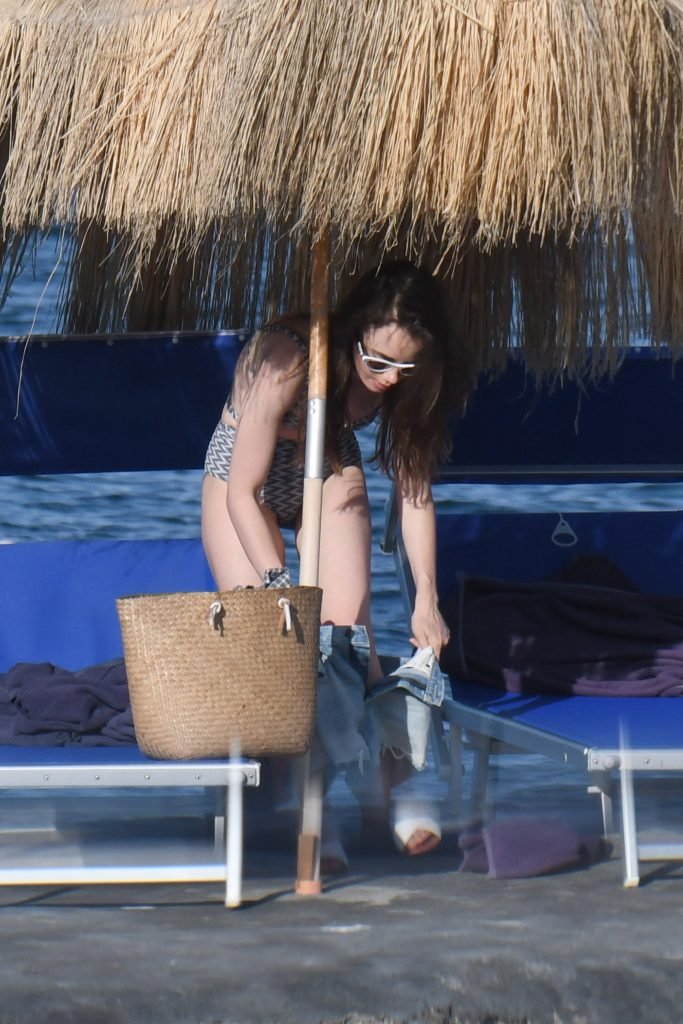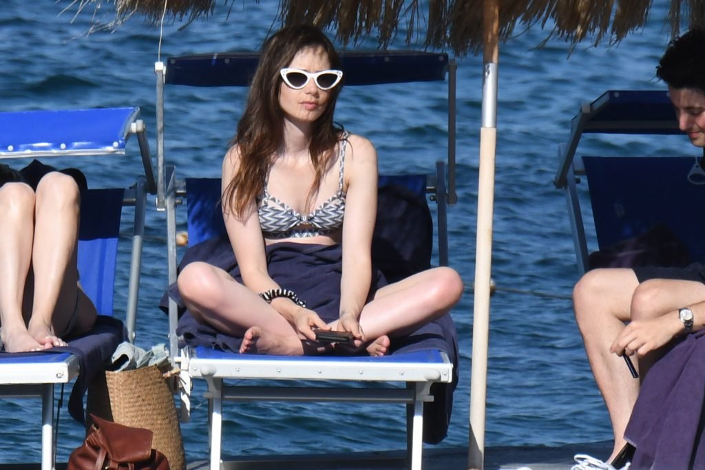 La hija de Phil Collins, Lily Collins, mostró su figura delgada y tonificada mientras disfrutaba del sol en la playa durante sus vacaciones en Ischia, 17/07/2018. La actriz/modelo se tomó un merecido descanso de la filmación en su último papel para una adaptación televisiva de “Los Miserables.”
