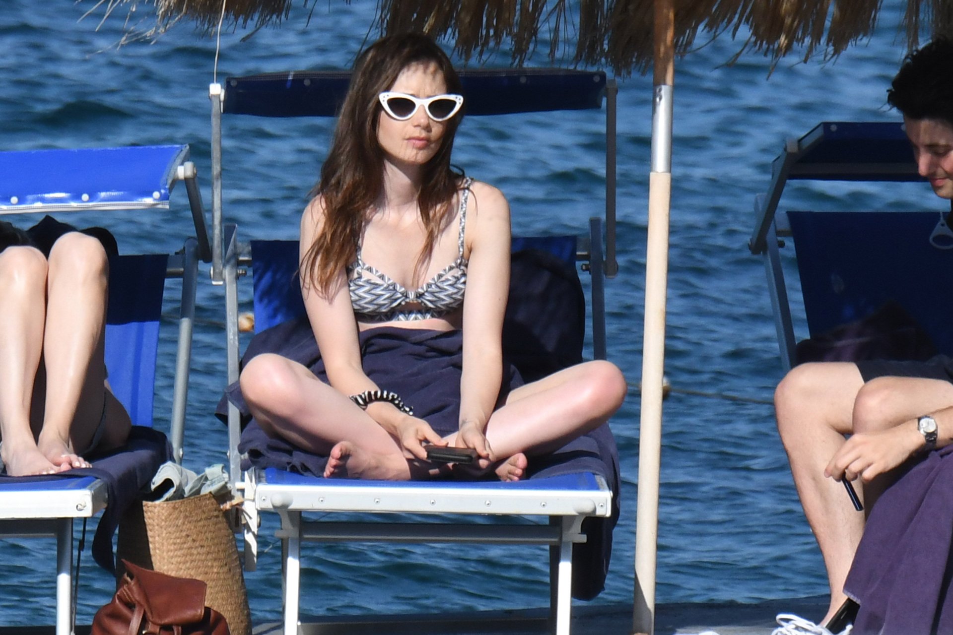 La hija de Phil Collins, Lily Collins, mostró su figura delgada y tonificada mientras disfrutaba del sol en la playa durante sus vacaciones en Ischia, 17/07/2018. La actriz/modelo se tomó un merecido descanso de la filmación en su último papel para una adaptación televisiva de “Los Miserables.”