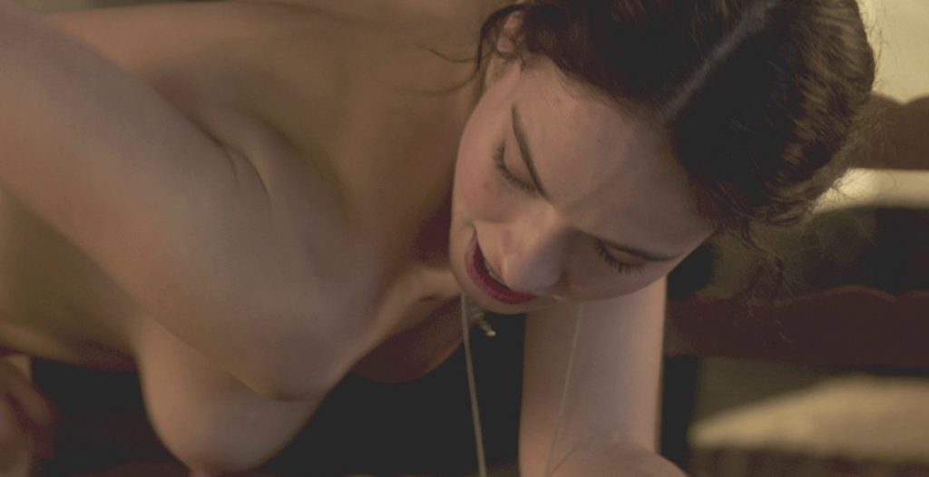 The scene below is also from the ‘Exception’ movie. In the next episode, Lily James exposes her naked tits and ass for the first time on the screen while he’s watching. She undresses the brown dress of her nude boobs and butt. The hottie gives an excellent look to the guy, indeed. Then she has juicy sex from behind after waiting for the man to provide her with his precious dick. Overall, enjoy the first nude scene ever from Lily.