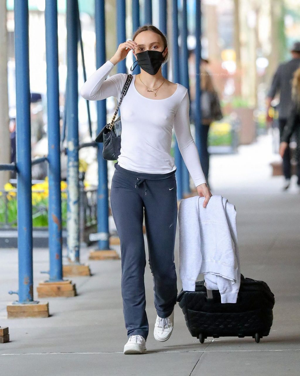 Well, guys, now I think it’s time for us to move on to some sexy photos of this blondie! Here are a few pictures on which we can see Lily-Rose Depp’s pokies! She wore a relatively thin and see-through shirt without a bra! Some sneaky paparazzi caught her as she was leaving for the airport in New York!