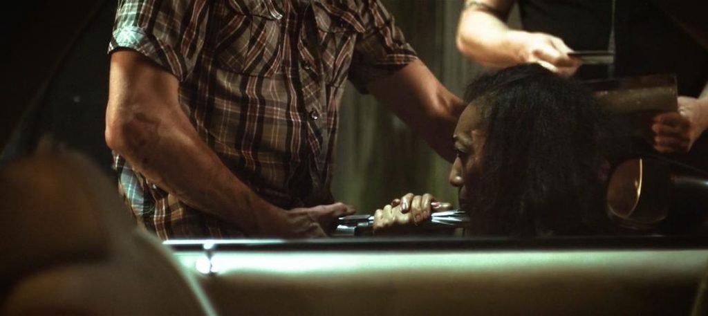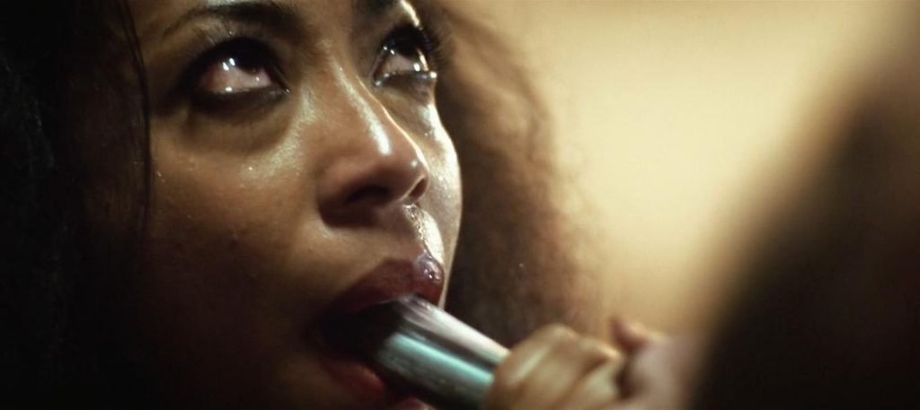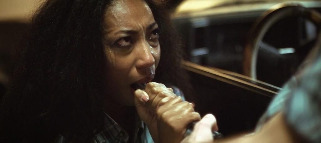 Mira la escena de simulación de sexo oral sin desnudez de Lindsay Castillo en “1 Buck” (One Buck, 2017). Lindsay está arrodillada frente a varios hombres, uno de ellos le pide que ponga un arma en su boca. Ella pone un condón en el arma e intenta tragar el cañón. Aparentemente, no tenía mucha experiencia con hombres.