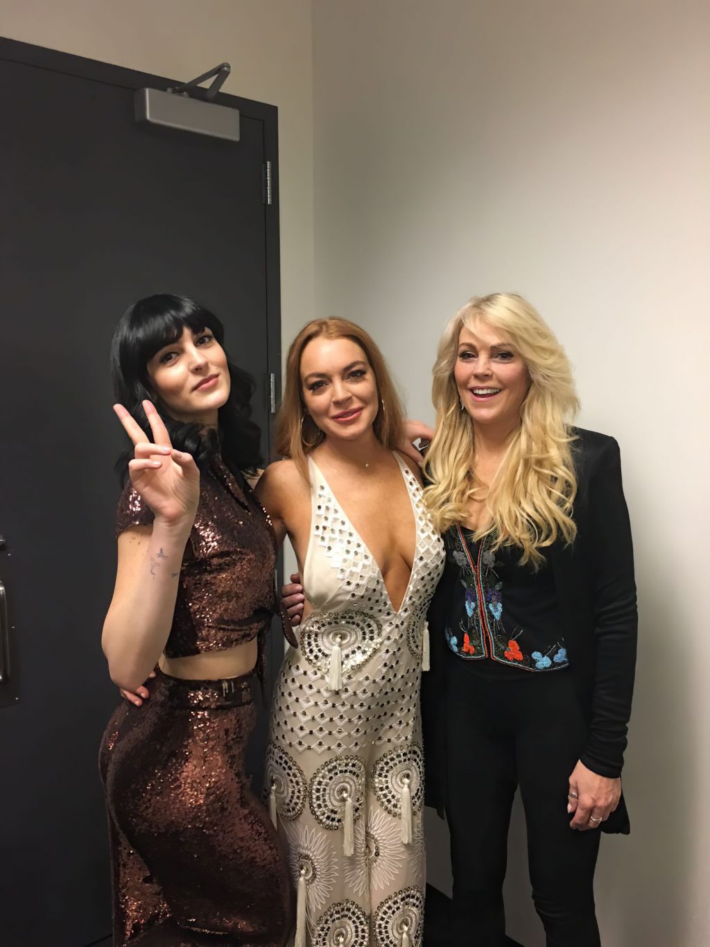 Mira esa foto con las tres. ¡Lindsay Lohan parece tan vieja como su mamá! Demonios, si no supiera mejor, diría que Lindsay es la mamá y Dina es una tía más joven.
