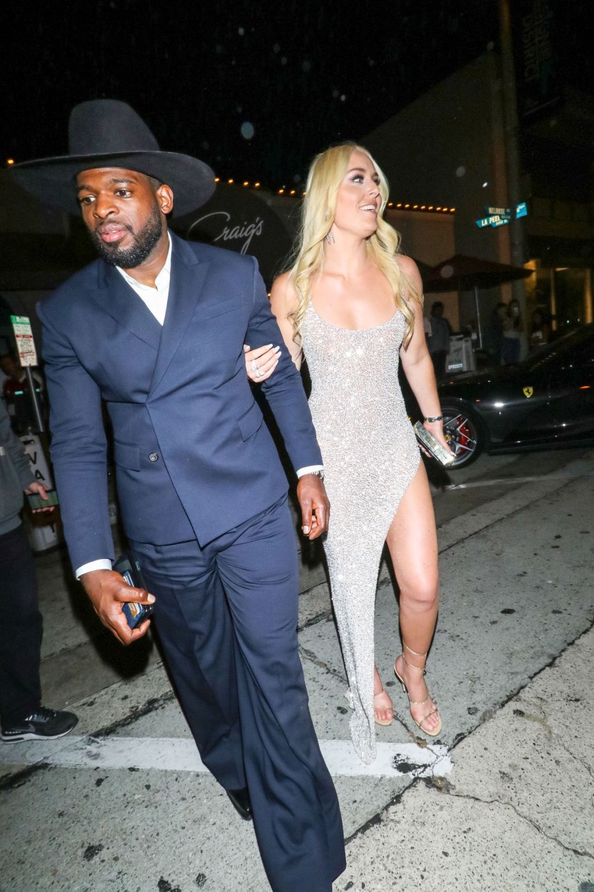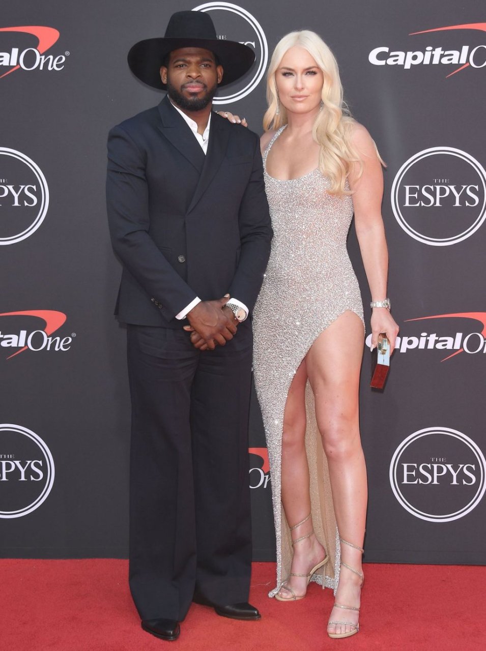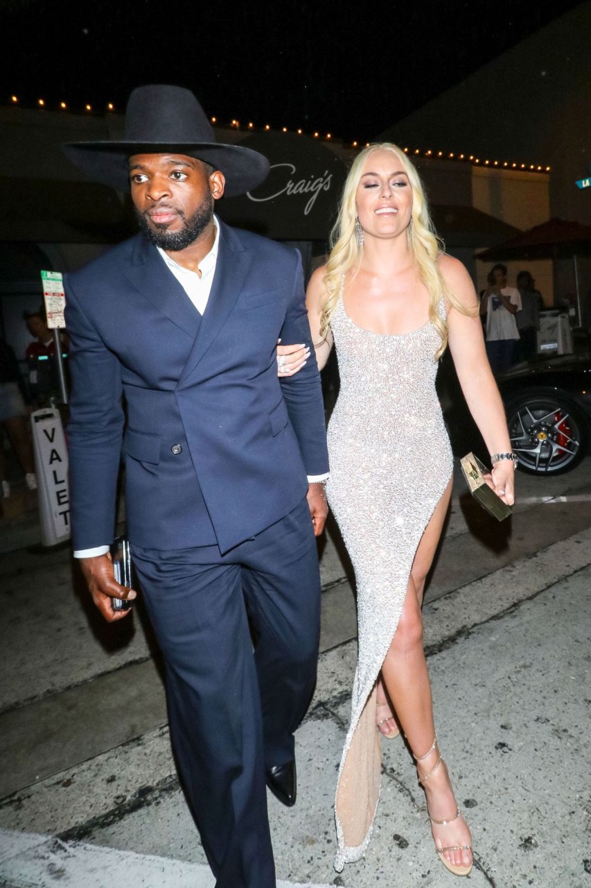 Pareja deportiva, Lindsey Vonn y P. K. Subban lucen impresionantes mientras asisten a los ESPYs 2019 y a la cena en Craig’s en West Hollywood, 07/10/2019.