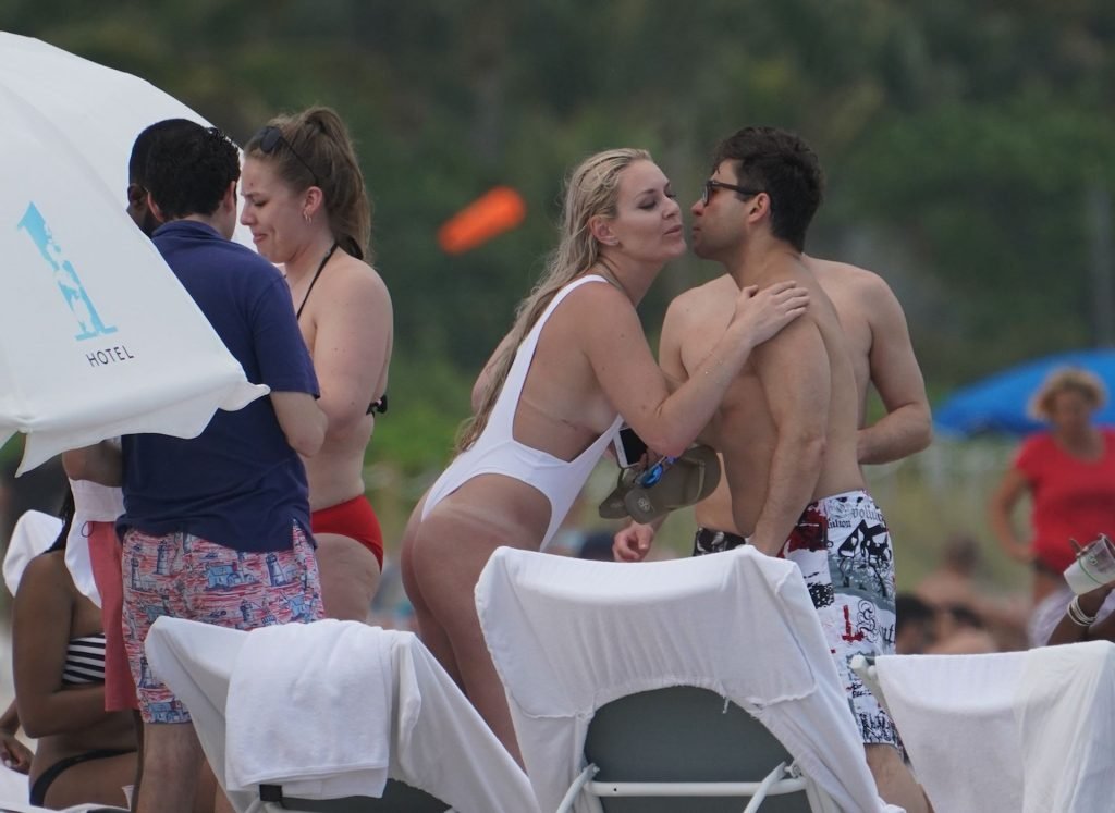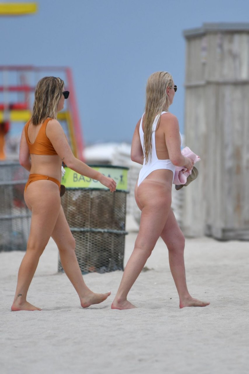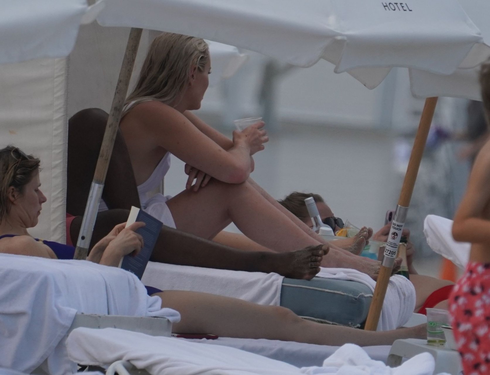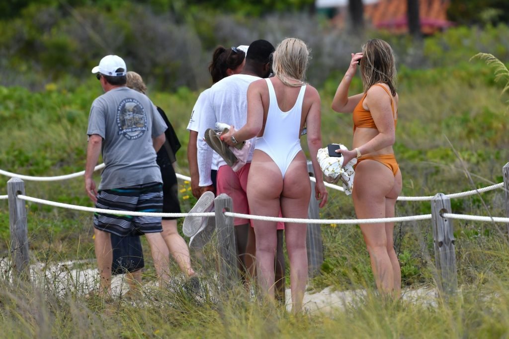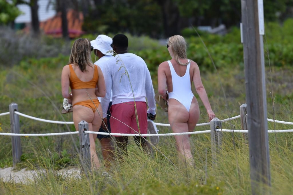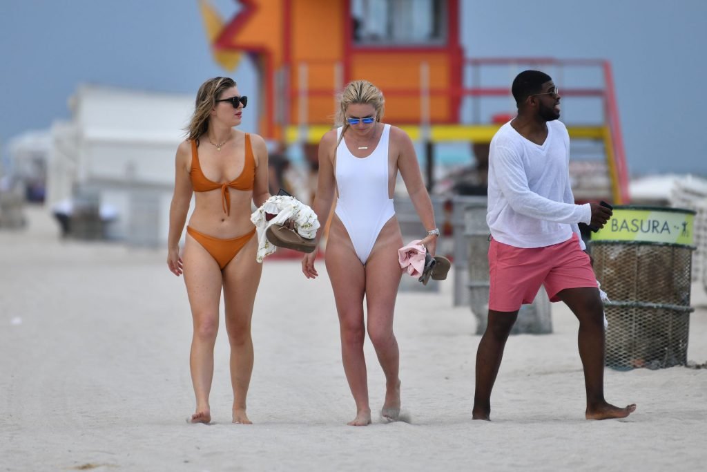 Lindsey Vonn muestra su figura atlética en un muy sexy traje de baño blanco de una pieza mientras pasea con su novio P.K. Subban y un amigo en la playa de Miami, 04/05/2019.