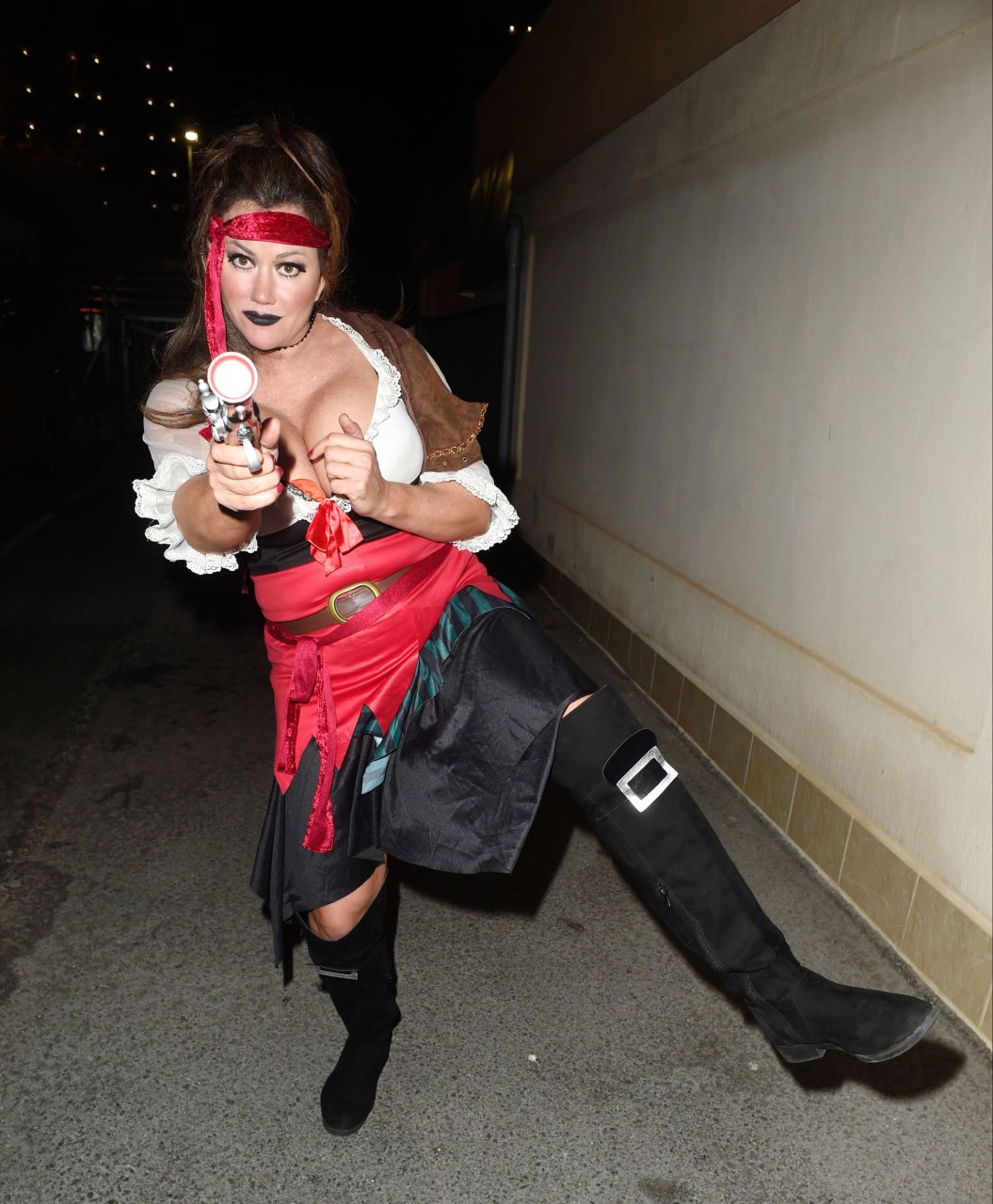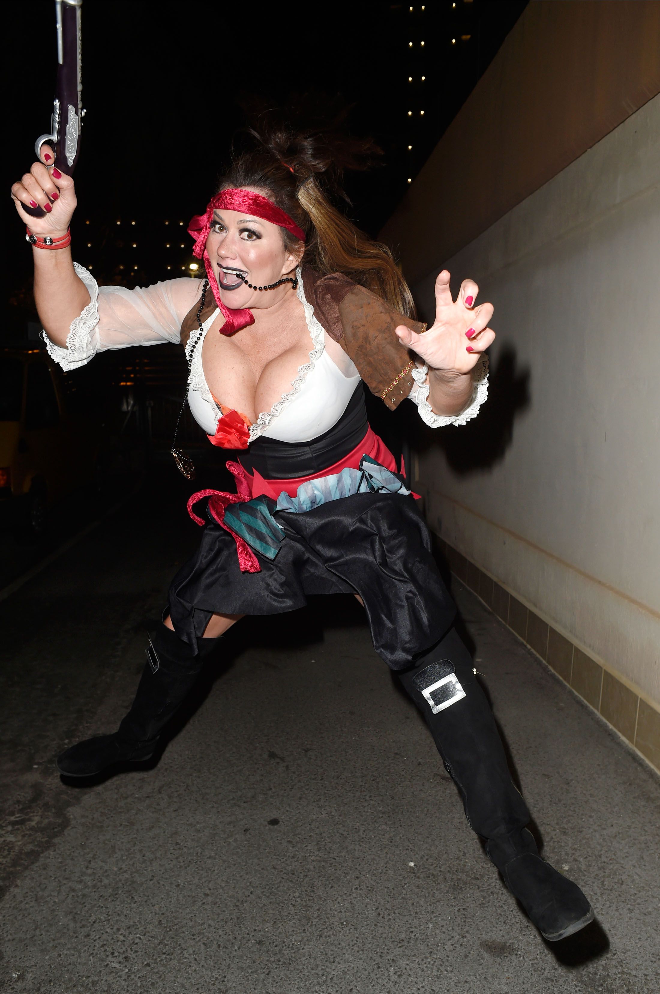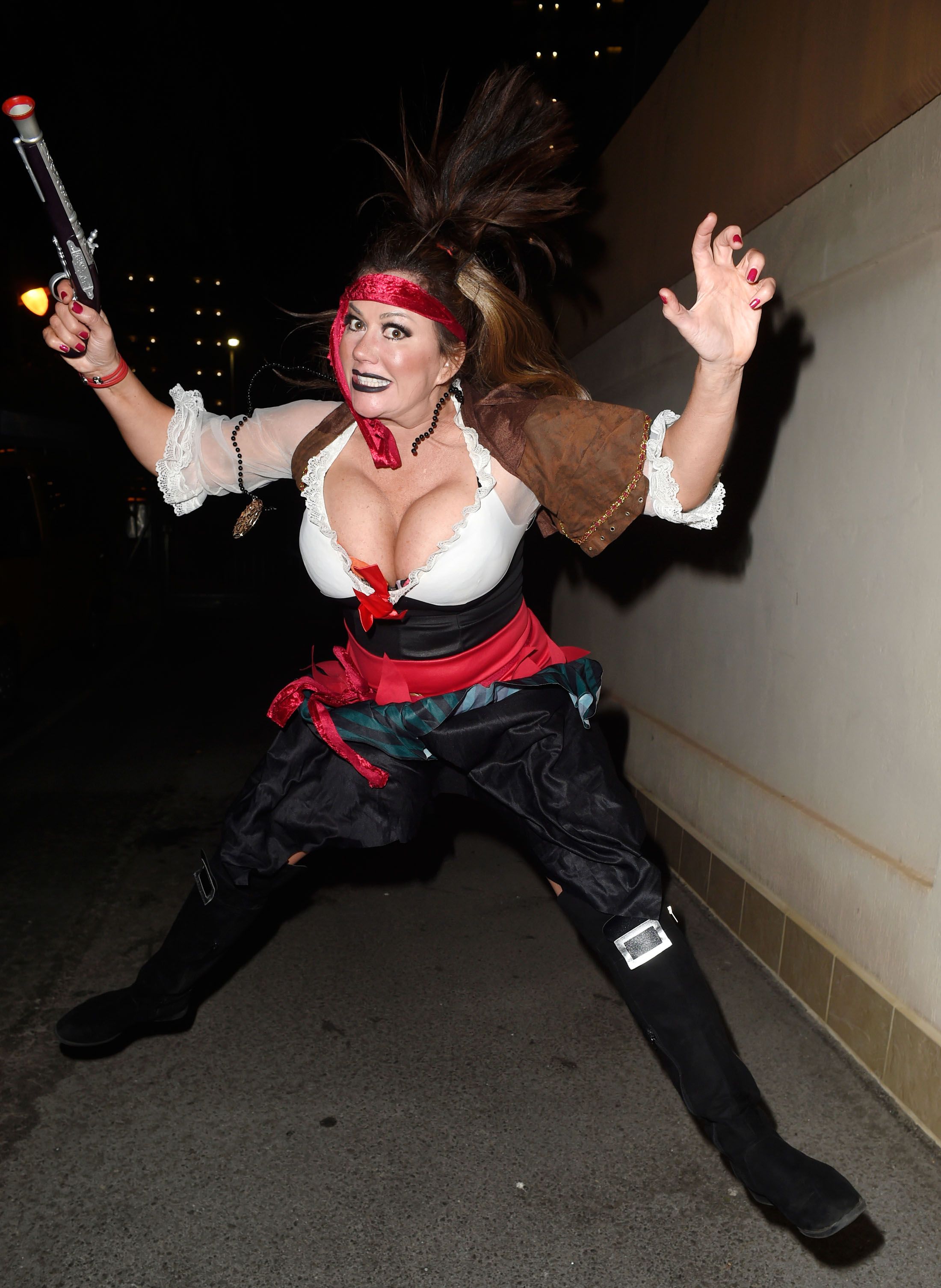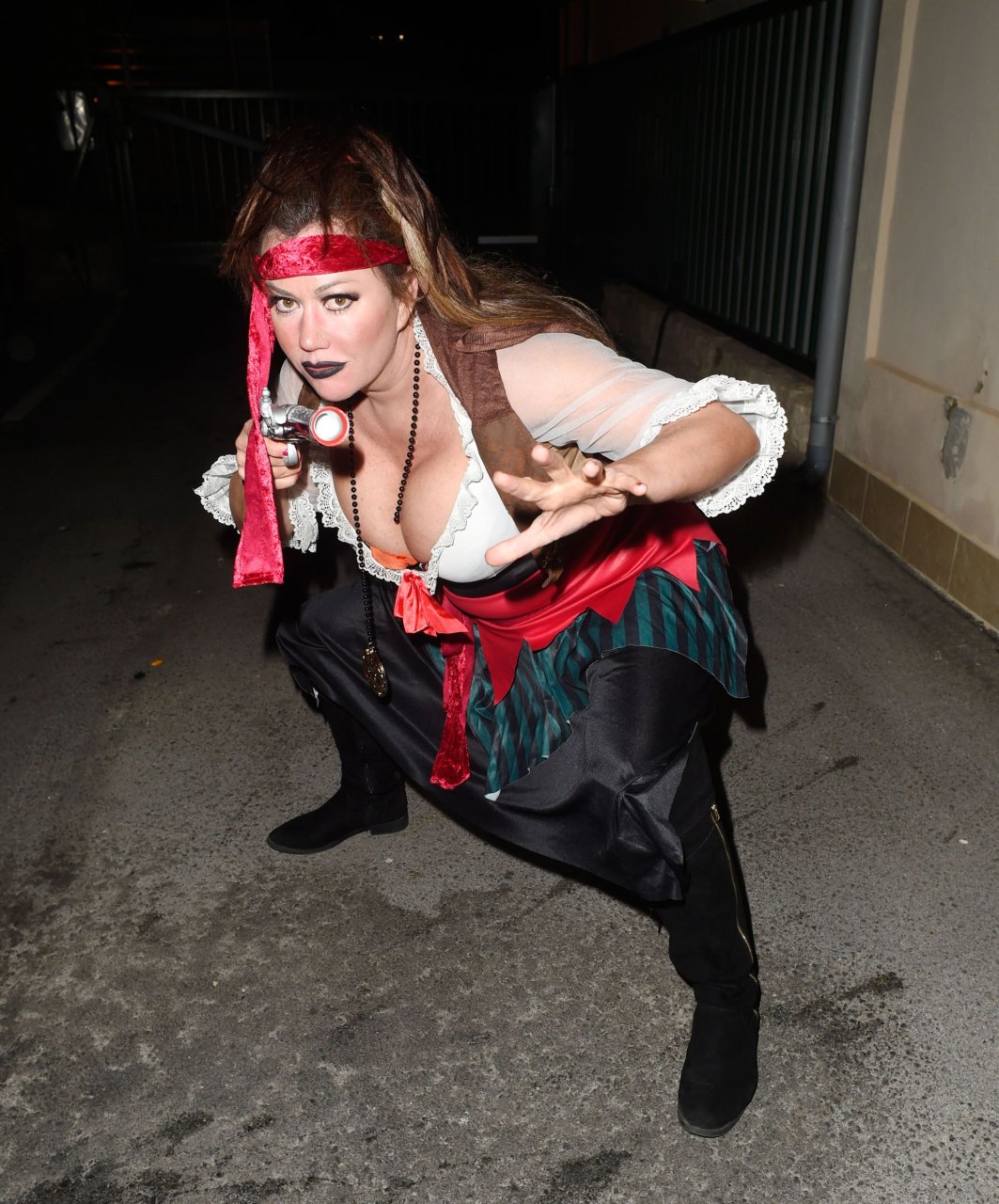Lisa Appleton lleva un disfraz de pirata para una fiesta de disfraces de amigos en Warrington, 29/01/2017. Lisa Appleton es una estrella británica de reality TV (Big Brother (Temporada 9)). Edad – 48, 23 de mayo de 1968.