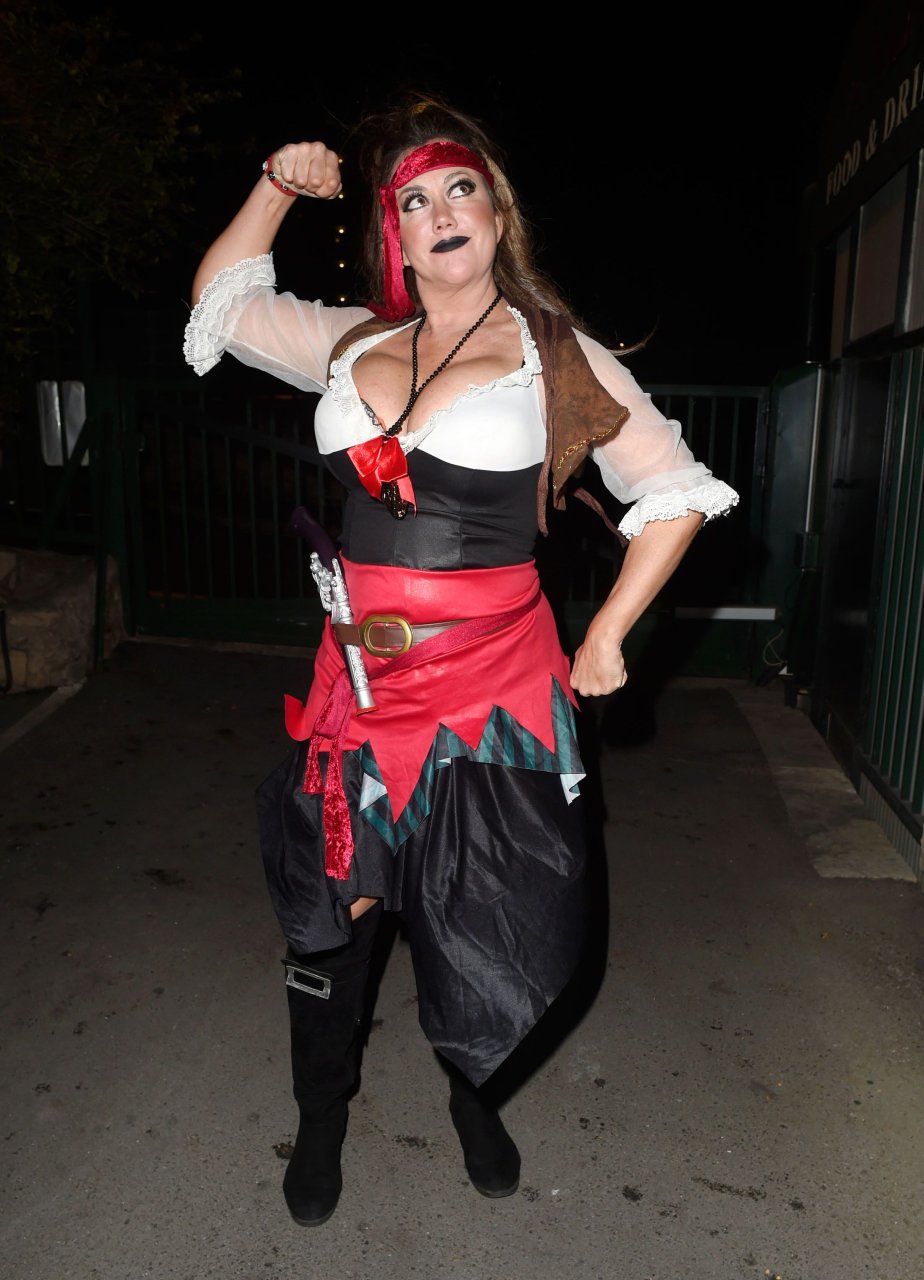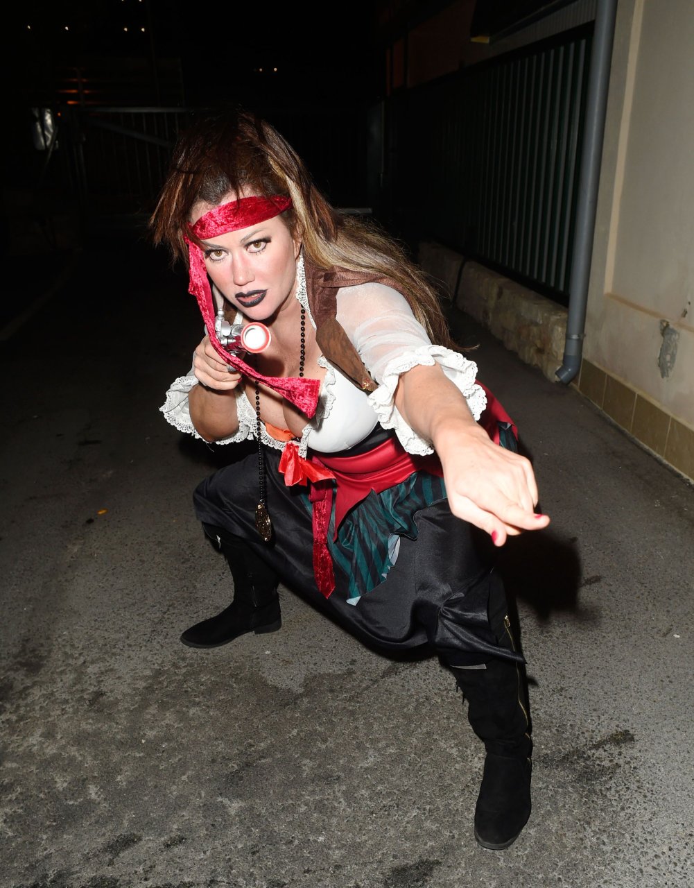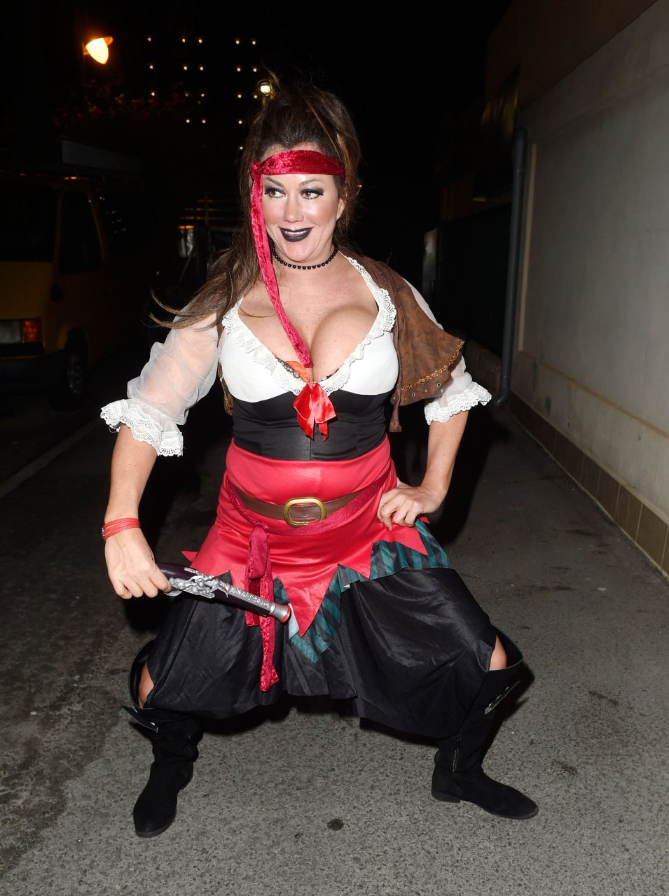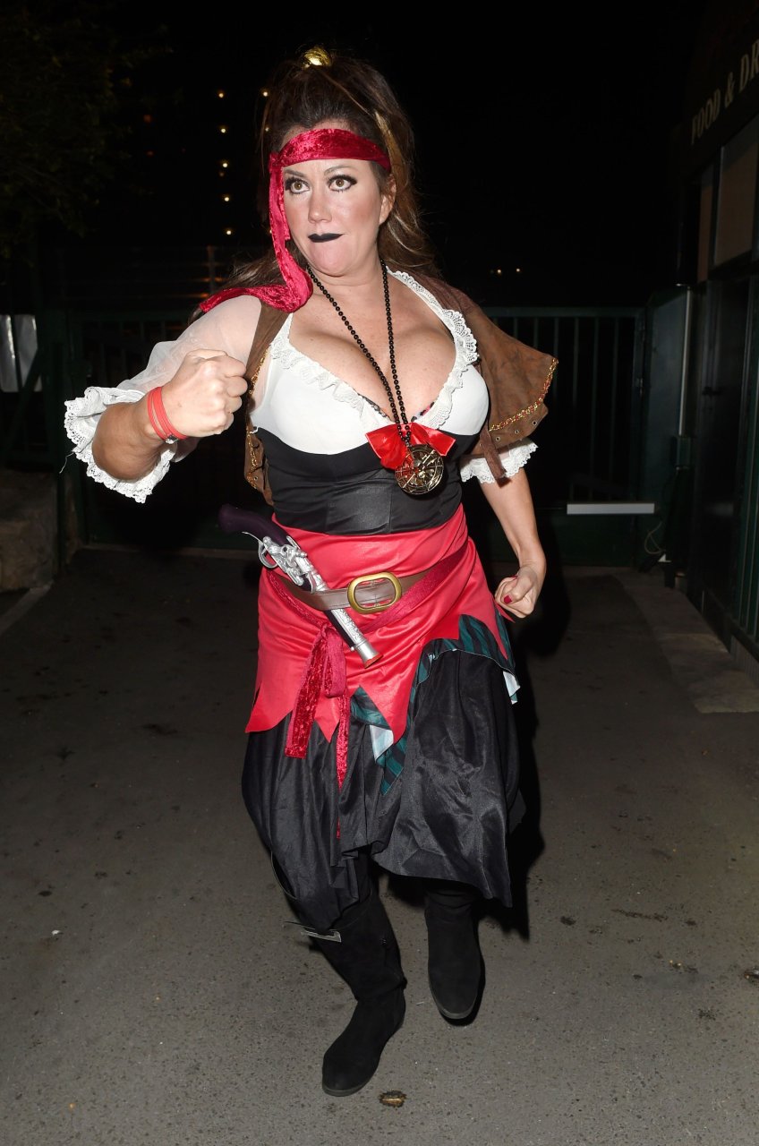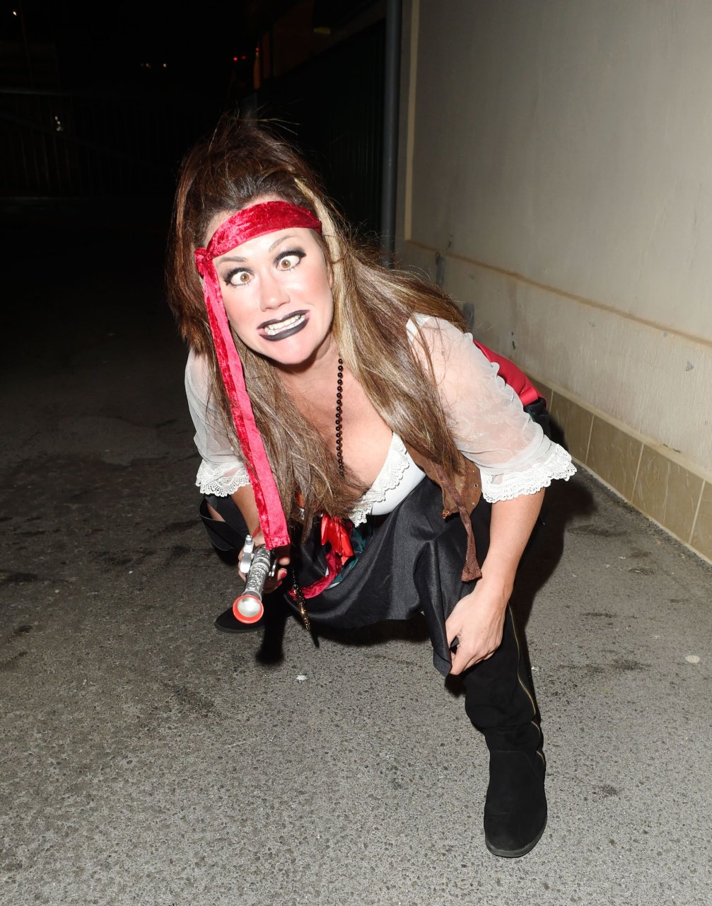 Lisa Appleton lleva un disfraz de pirata para una fiesta de disfraces de amigos en Warrington, 29/01/2017. Lisa Appleton es una estrella británica de reality TV (Big Brother (Temporada 9)). Edad – 48, 23 de mayo de 1968.