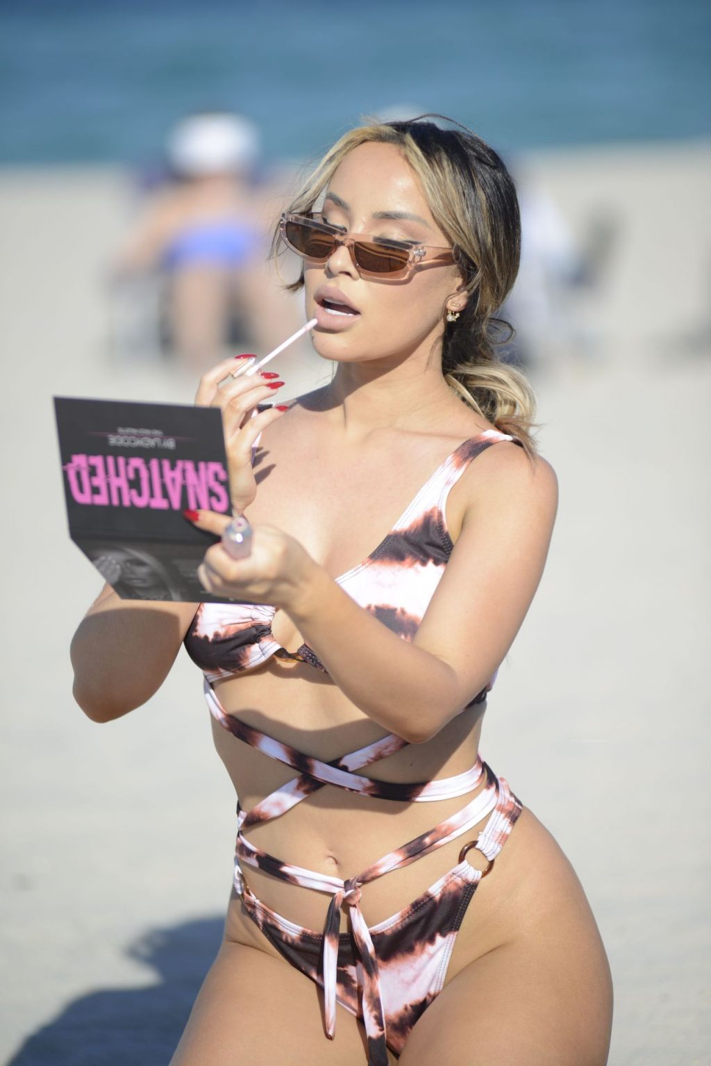 Lisa Opie llamó la atención mientras se relajaba en la playa de Miami, 24/04/2021. Siempre hermosa y lista para la foto, la estrella de 28 años retocó su maquillaje y se tomó selfies.