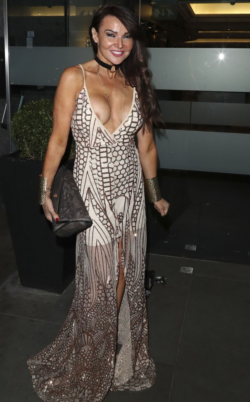 Lizzie Cundy sufre un fallo de vestuario mientras asiste a los ShowBiz Awards en Londres, 18/10/2016. ¡Un bonito deslizamiento de pecho y destello de bragas! Lizzie Cundy es una presentadora de televisión inglesa, asesora de moda y belleza y modelo. Edad: 48