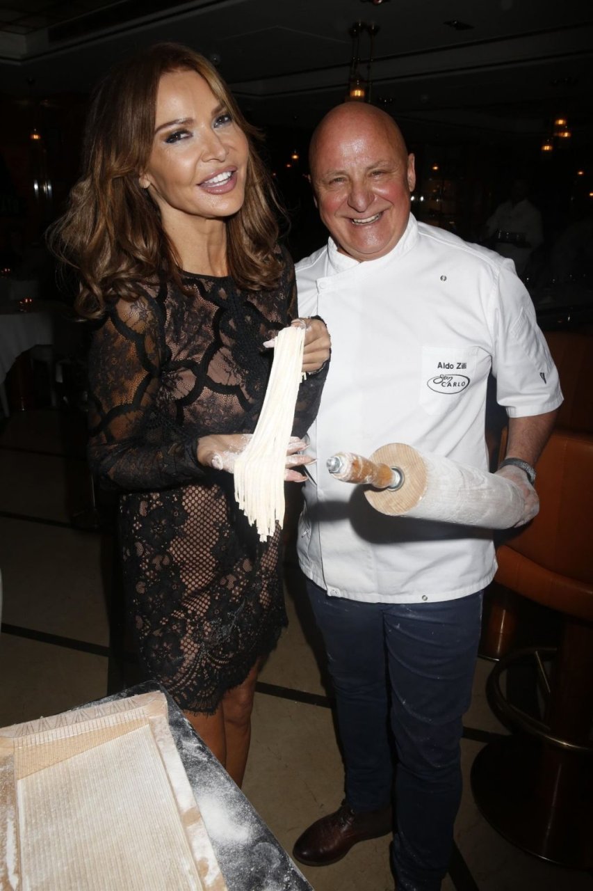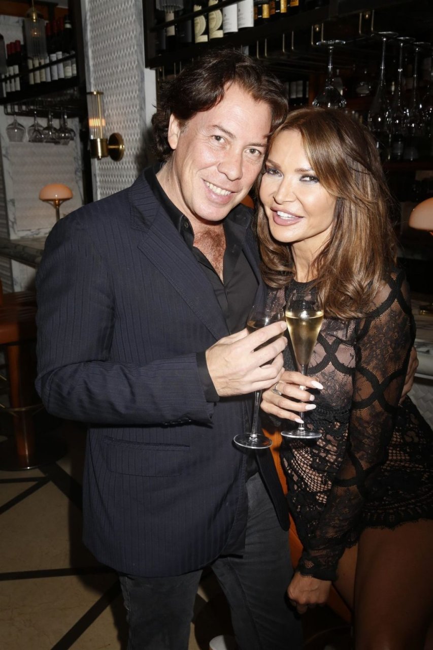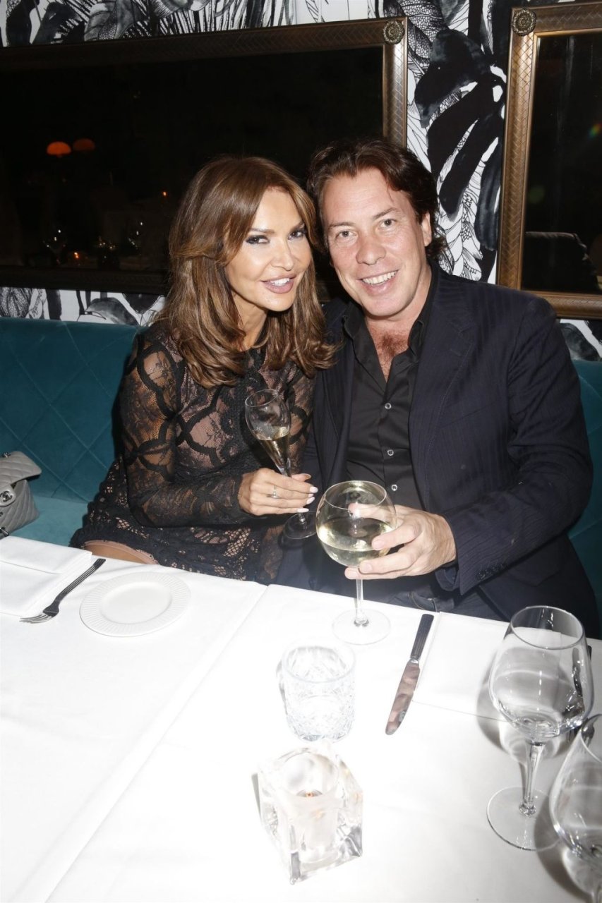 Lizzie Cundy de piernas largas junto a su nuevo hombre Jeremy Gordeno a pesar de las afirmaciones de sus exnovias, se les ve juntos en la velada benéfica para perros de Simon Cowell, organizada por Aldo Zilli en San Carlo, Regent Street en Londres, 31/05/2019.