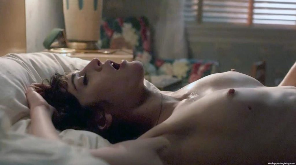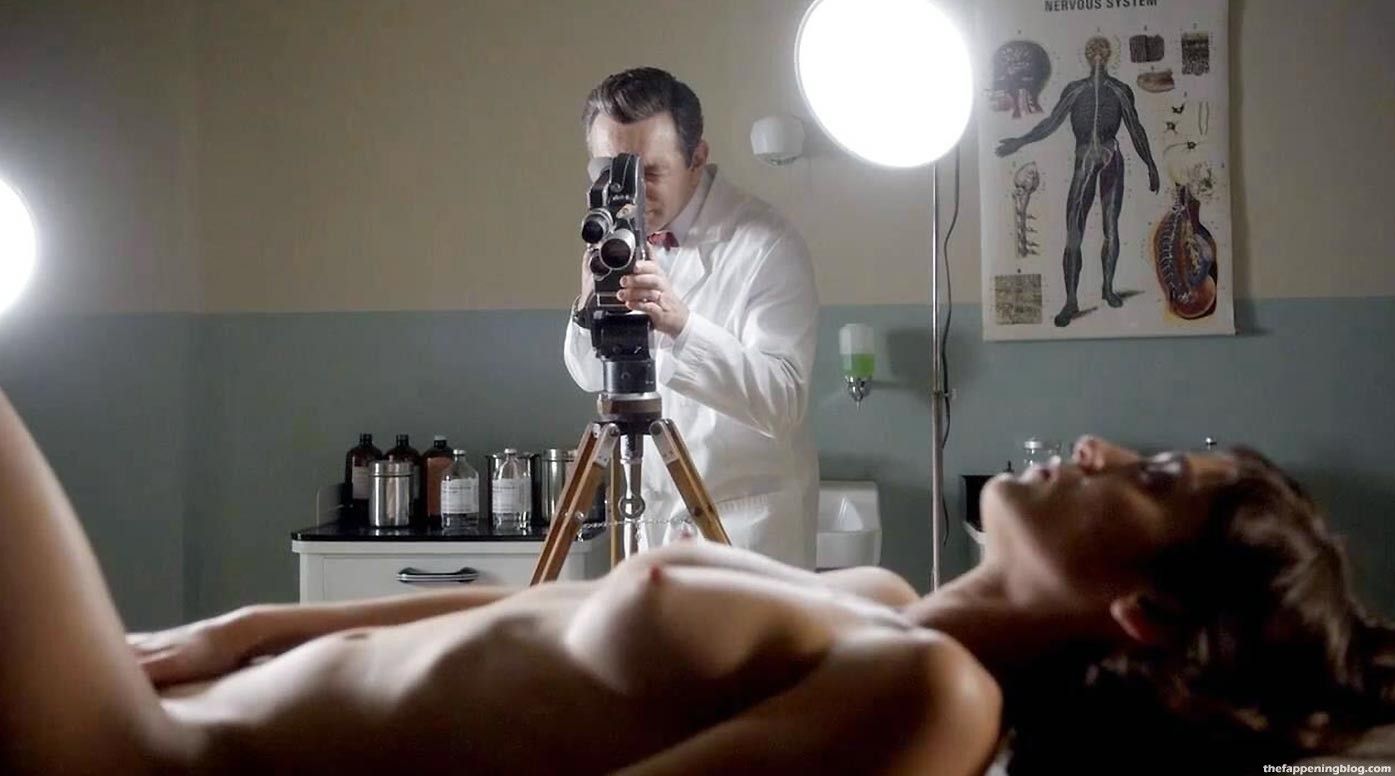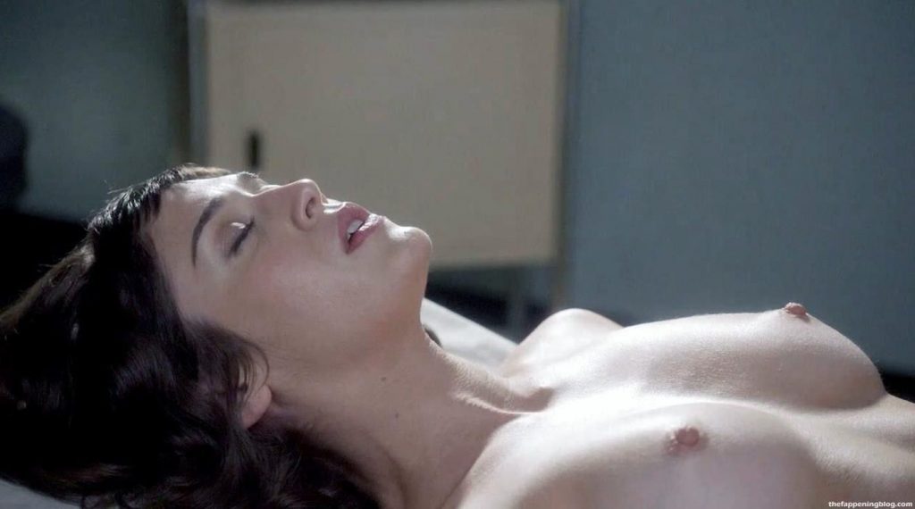 The first couple of scenes I have prepared for you are from the famous ‘Masters Of Sex’ series. In the first scene, we see Lizzy Caplan lying down on a medicine table in the doctor’s office and while he films her. She starts to caress her pussy, and we can see that she enjoy it very much. We also have a fantastic view of her nude sexy boobs and pointy nipples.