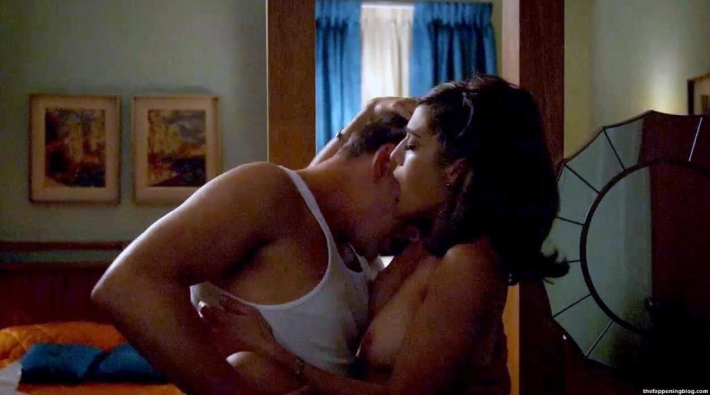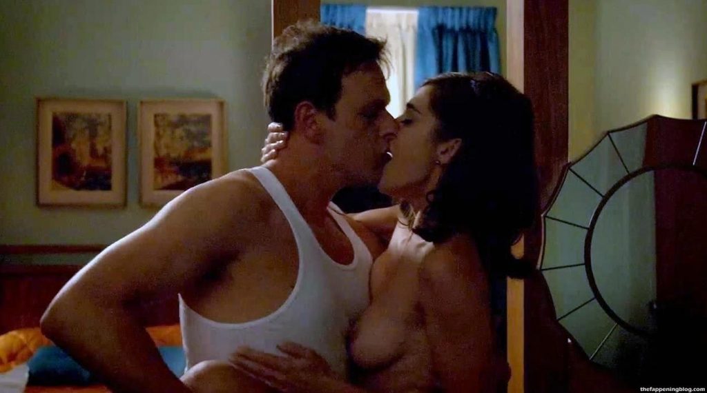 And now, guys, the last couple of scenes that I have to show you are from the ‘True Blood’ series. Super view of Lizzy Caplan’s tits. She is topless, and she wears only white sexy panties. We have a perfect view of her nude boobs and hot nipples. Please, press play to watch Lizzy Caplan’s naked boobs and butt in a nude sex scene from the ‘True Blood’ series.