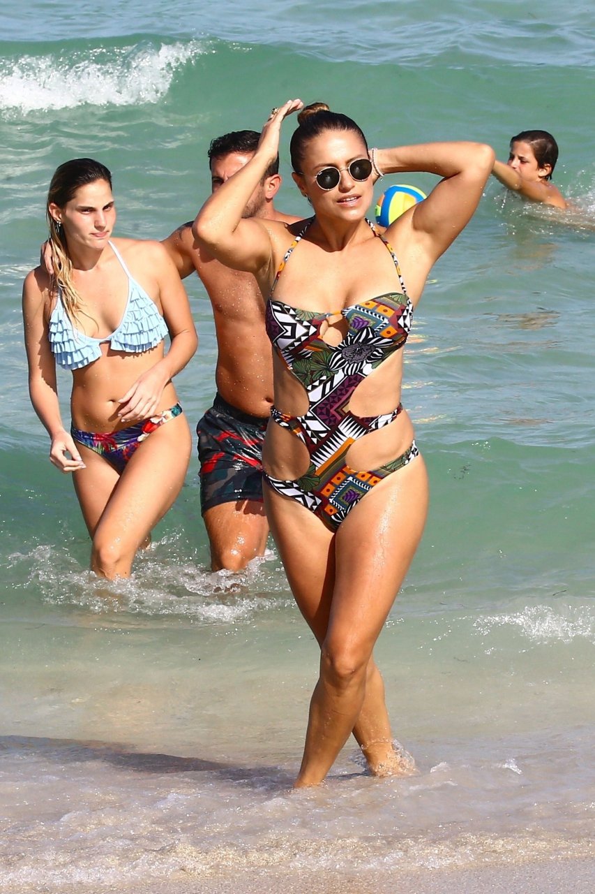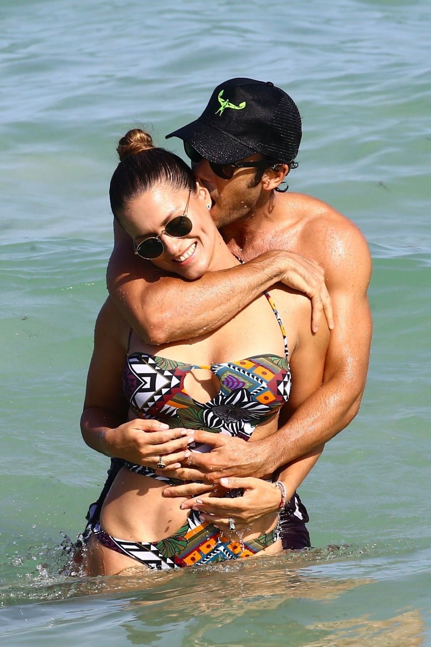 Aarón Díaz y Lola Ponce disfrutan de la playa en Miami, 05/08/2017. Paola Fabiana Ponce es una cantante, compositora, actriz y modelo argentina. Edad: 40.