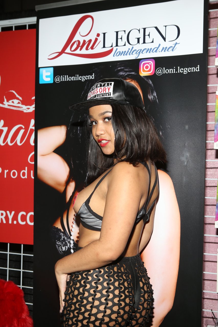 loni Legend asiste a la Expo EXXXOTICA 2017 en el Centro de Convenciones y Exposiciones de Nueva Jersey, 03/11/2017. loni Legend es una actriz pornográfica estadounidense. Edad: 22.