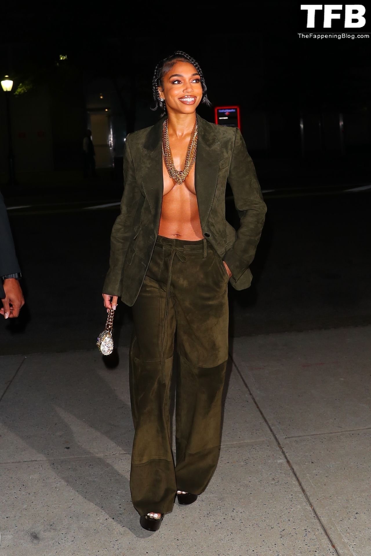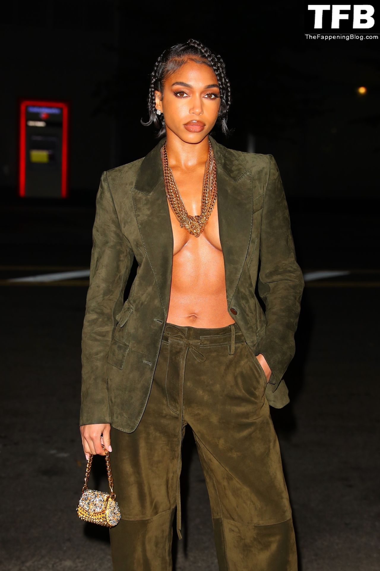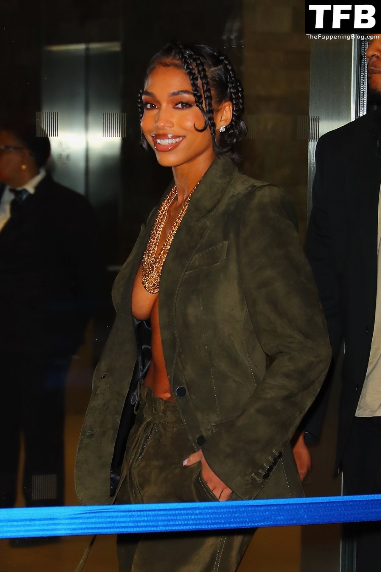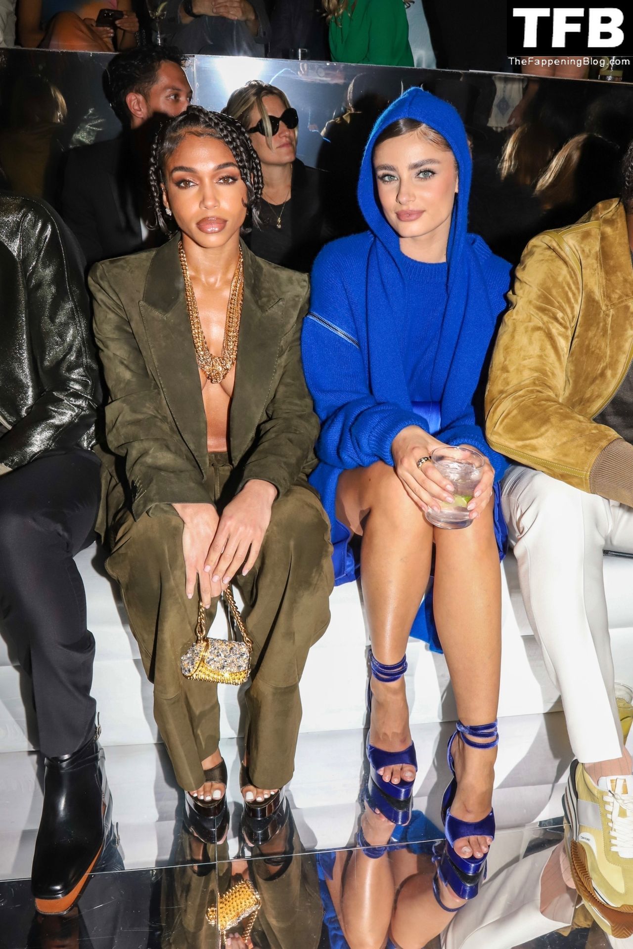 La modelo Lori Harvey es vista sentada en primera fila y saliendo del desfile de moda de Tom Ford durante la Semana de la Moda de Nueva York en la ciudad de Nueva York, 14/09/2022.