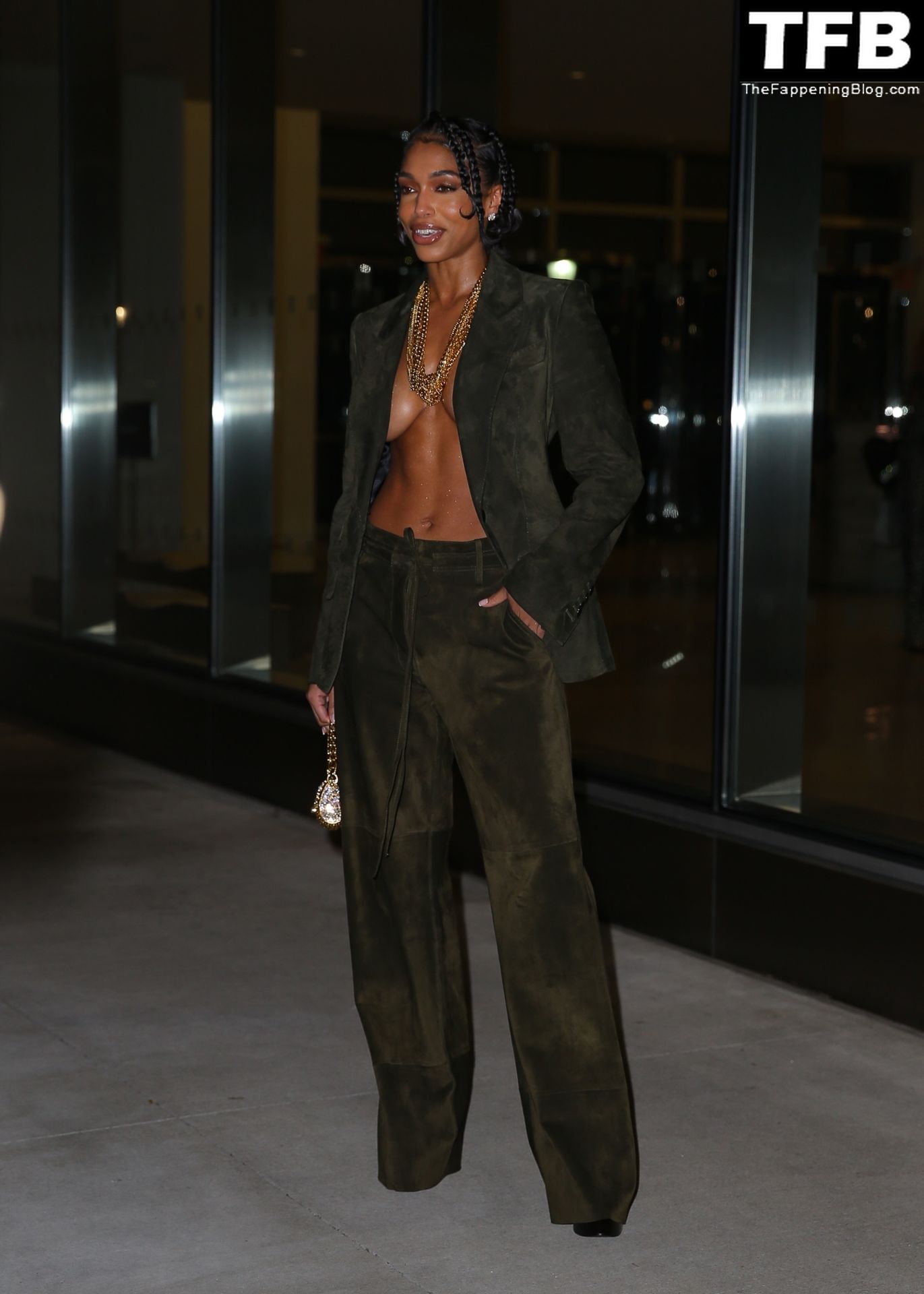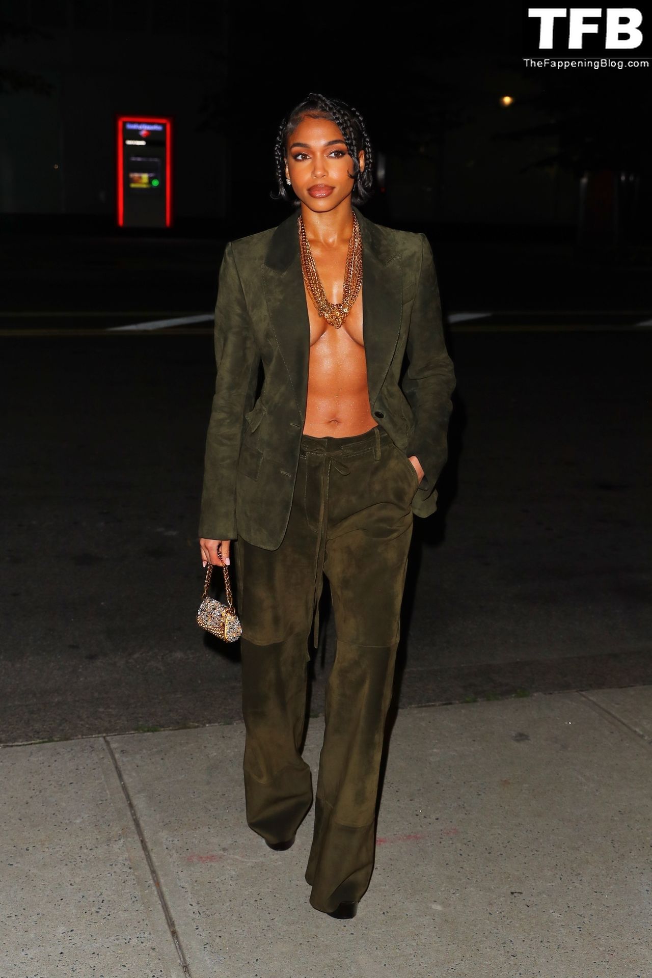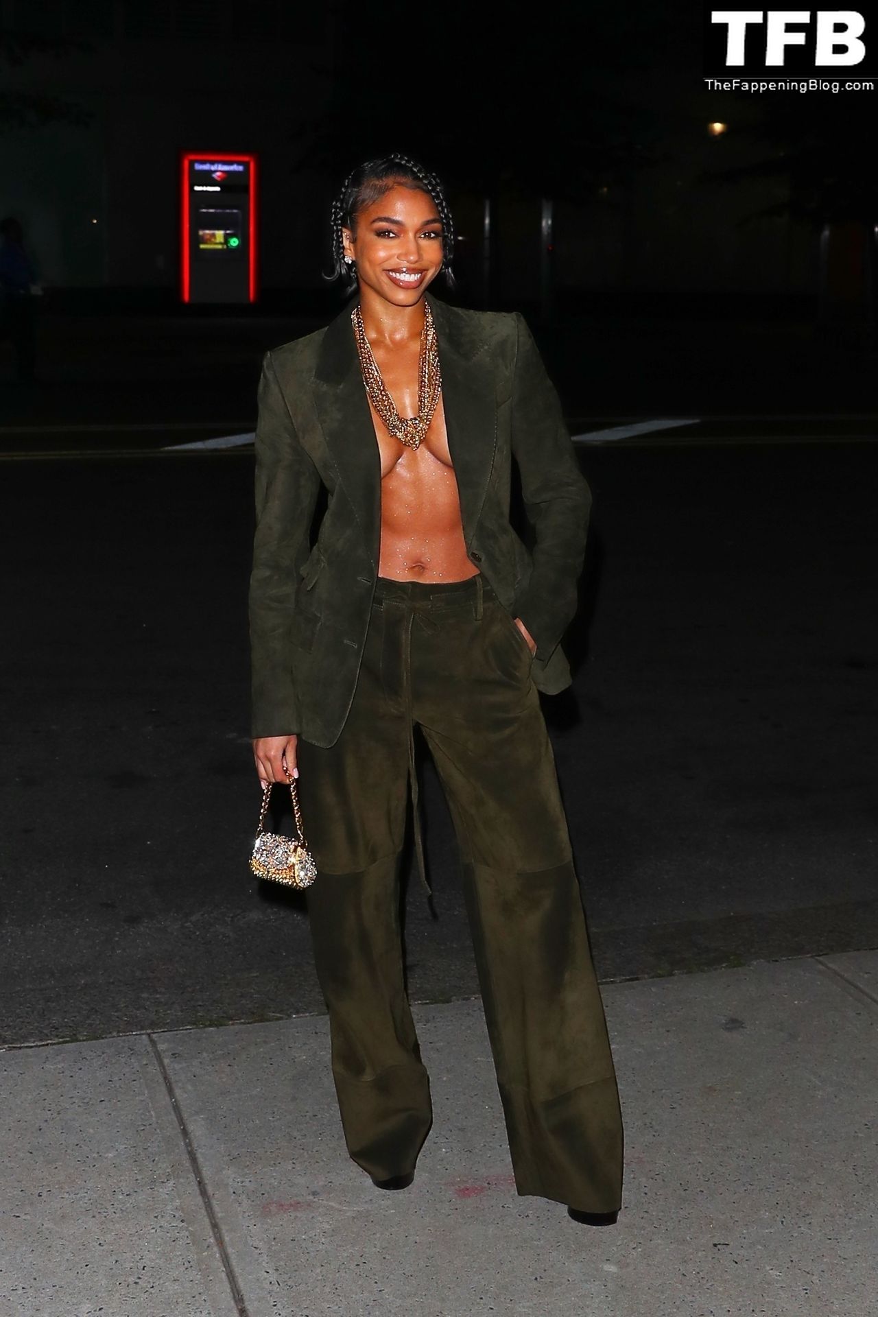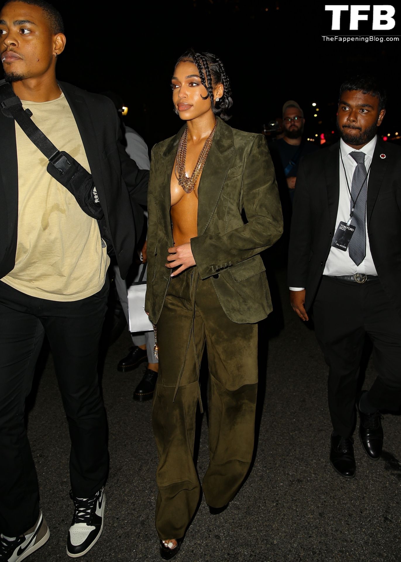 La modelo Lori Harvey es vista sentada en primera fila y saliendo del desfile de moda de Tom Ford durante la Semana de la Moda de Nueva York en la ciudad de Nueva York, 14/09/2022.