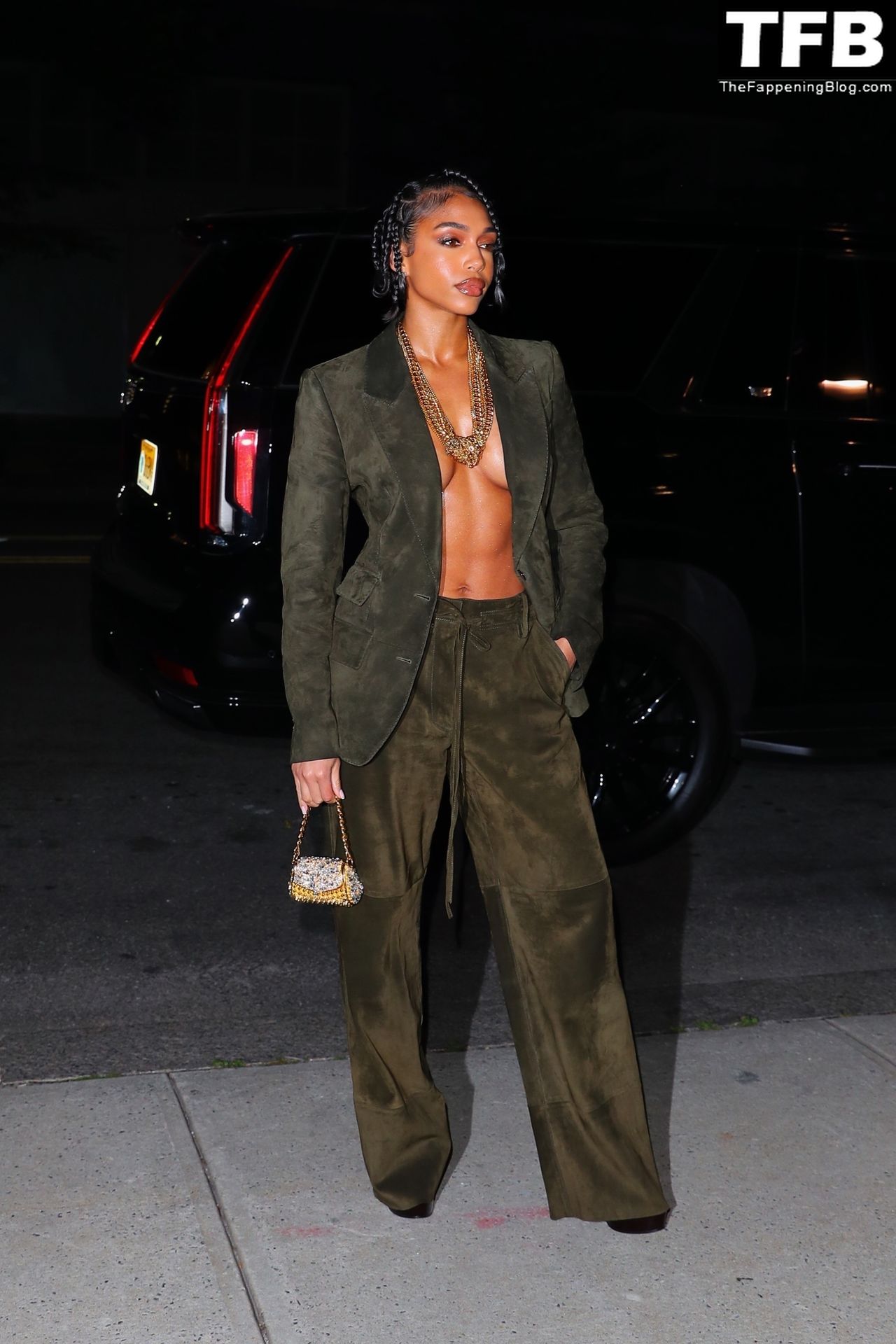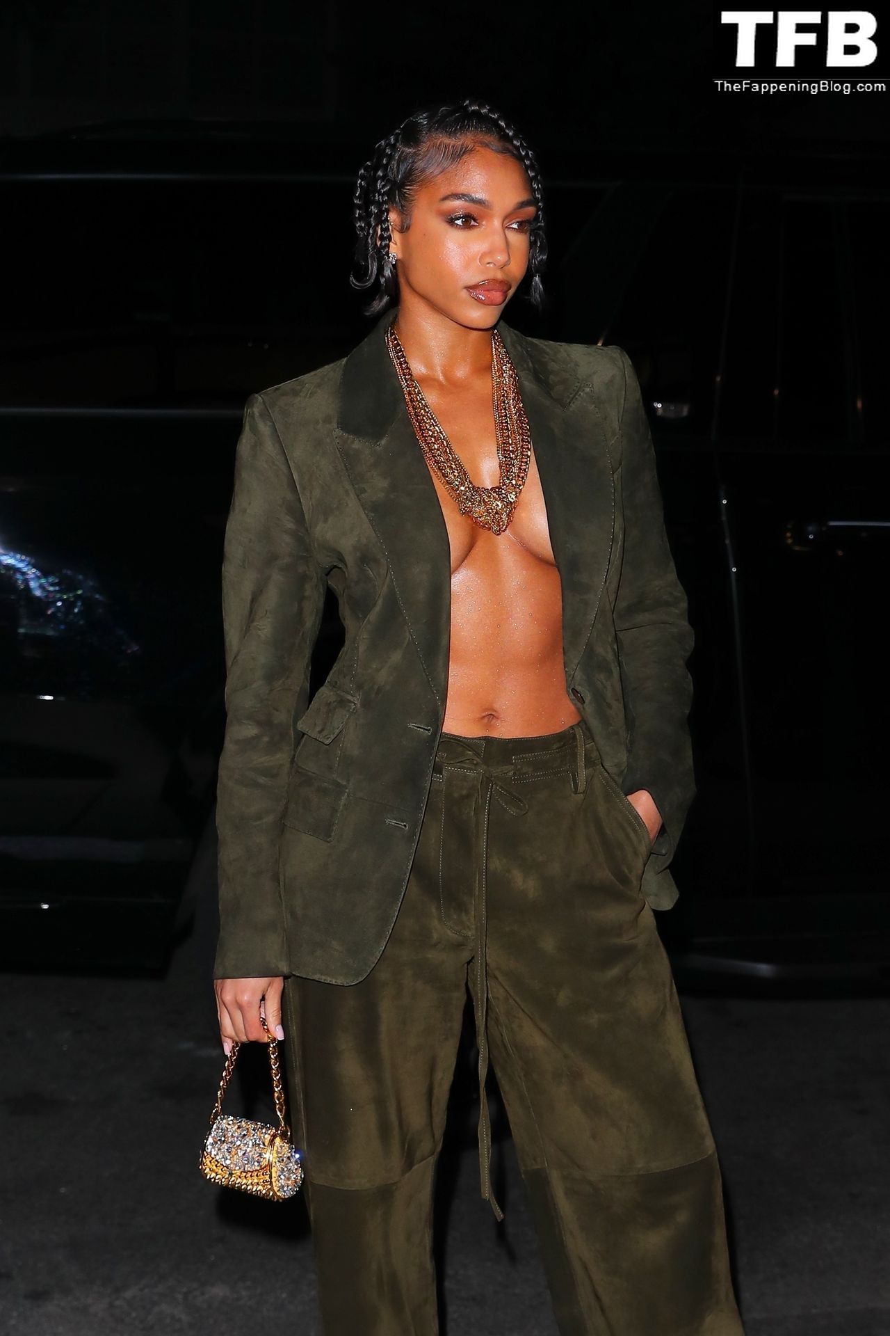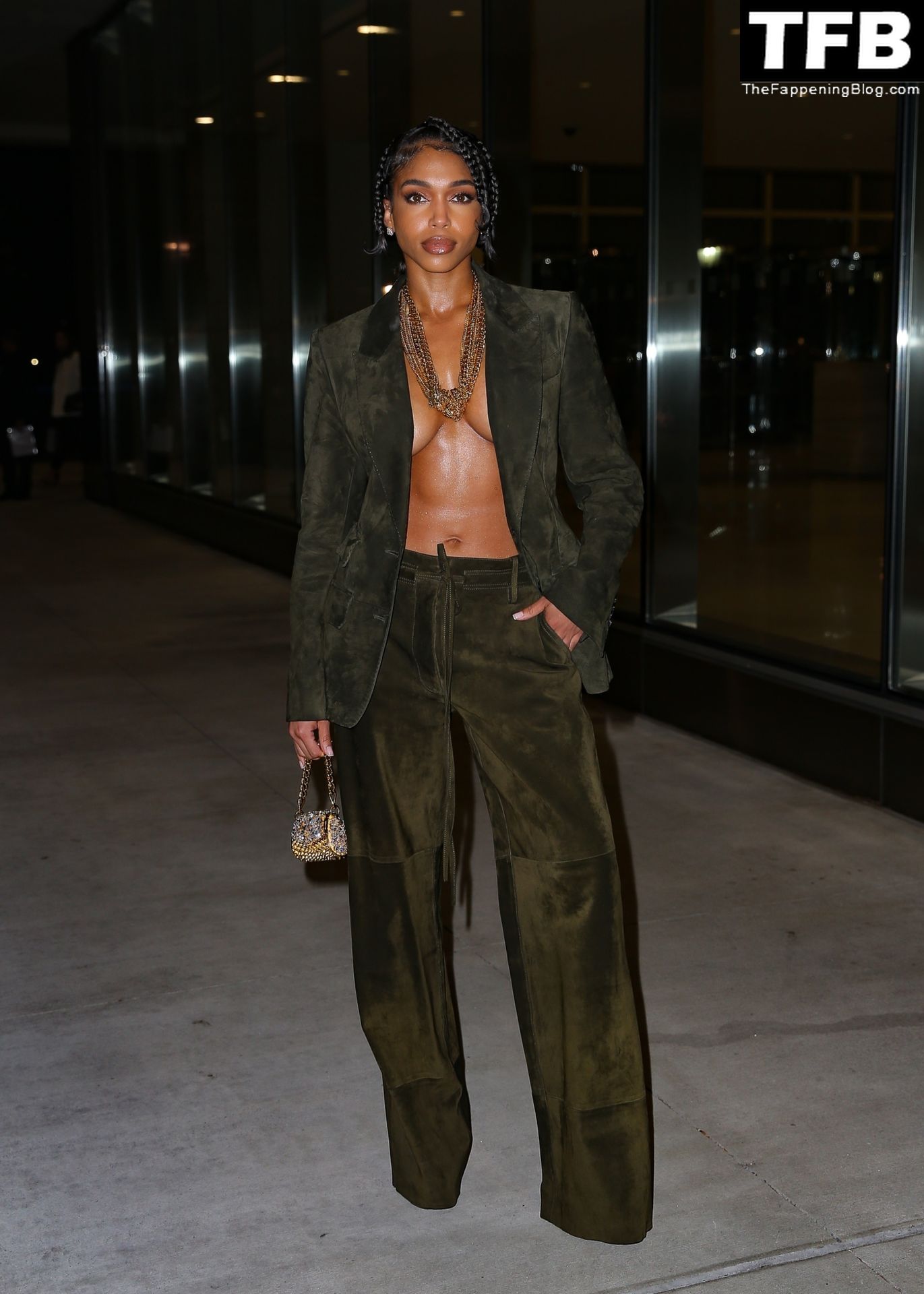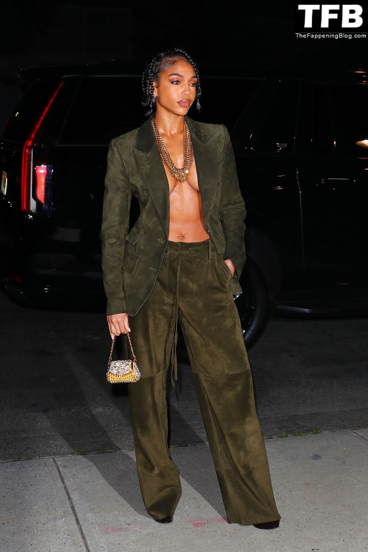 La modelo Lori Harvey es vista sentada en primera fila y saliendo del desfile de moda de Tom Ford durante la Semana de la Moda de Nueva York en la ciudad de Nueva York, 14/09/2022.