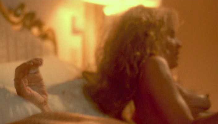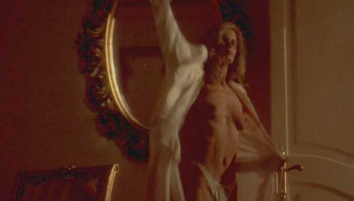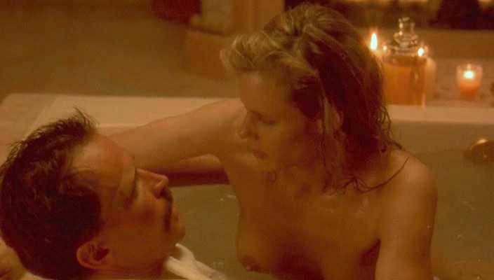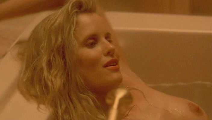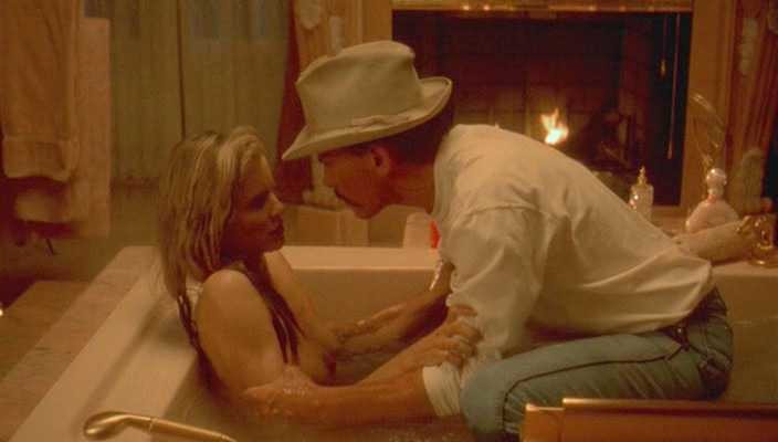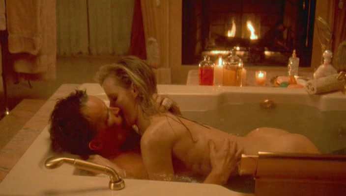 Lori Singer está desnuda mientras se relaja en una bañera. Luego un hombre se une a ella y ella se sube encima y se besan.