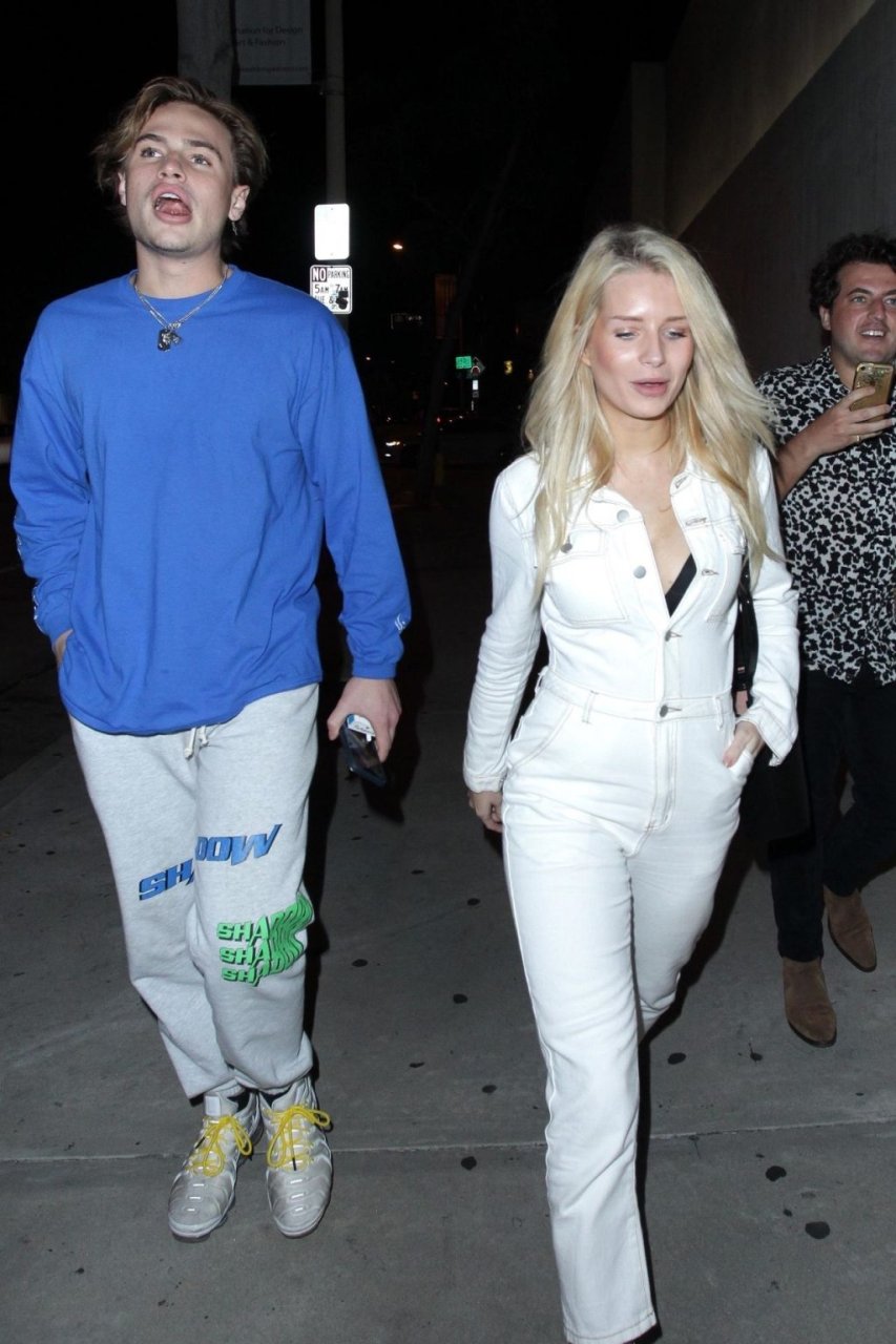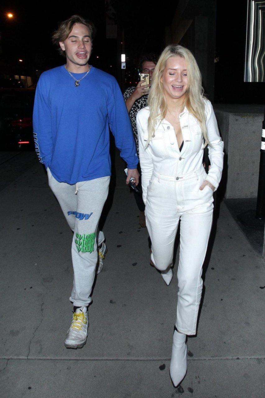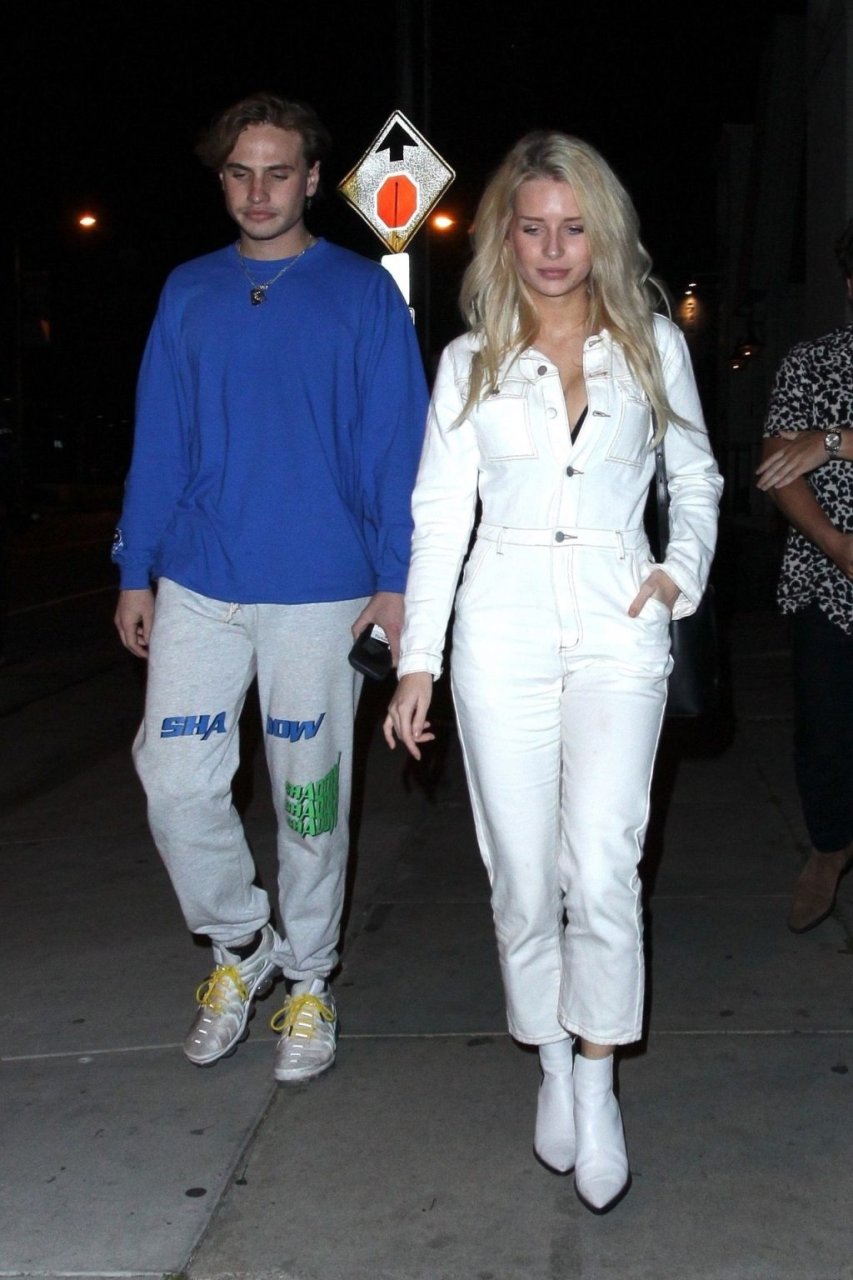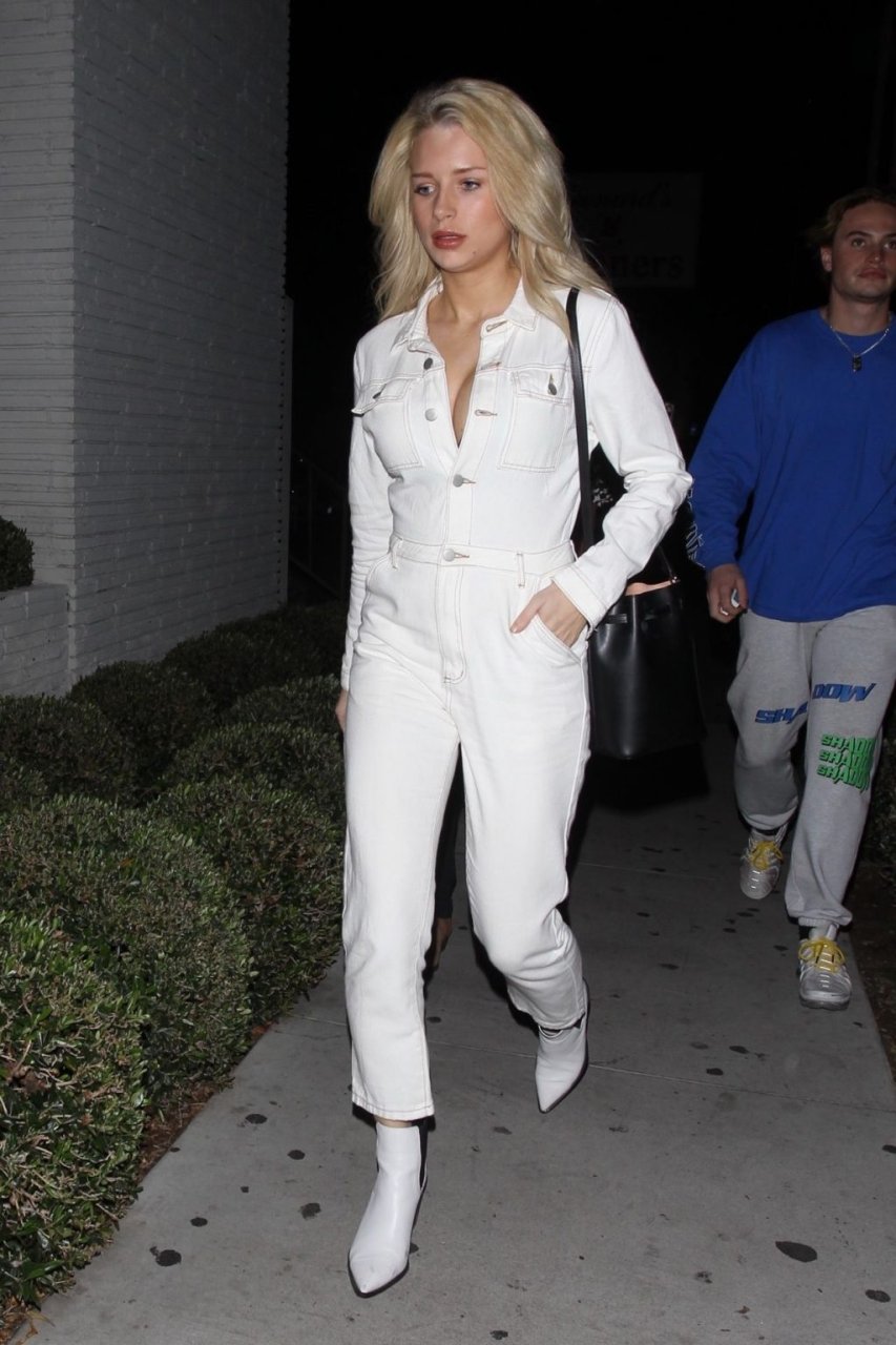 Se ve a Lottie Moss saliendo del Restaurante Madre con un hombre misterioso. Lottie luce genial con un mono de mezclilla blanco con escote pronunciado en la salida.