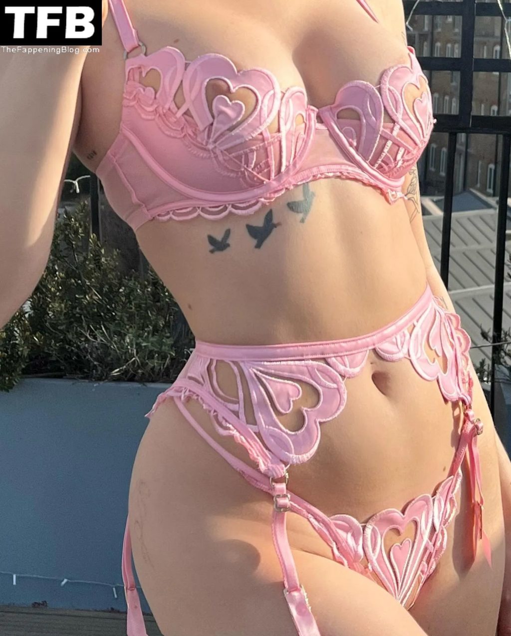 Modelo y creadora de contenido en OF, Lottie Moss posa con lencería rosa, promocionando una nueva colección de Honey Birdette – Instagram, 27/03/2022.