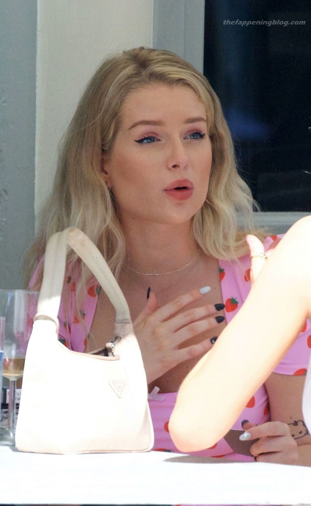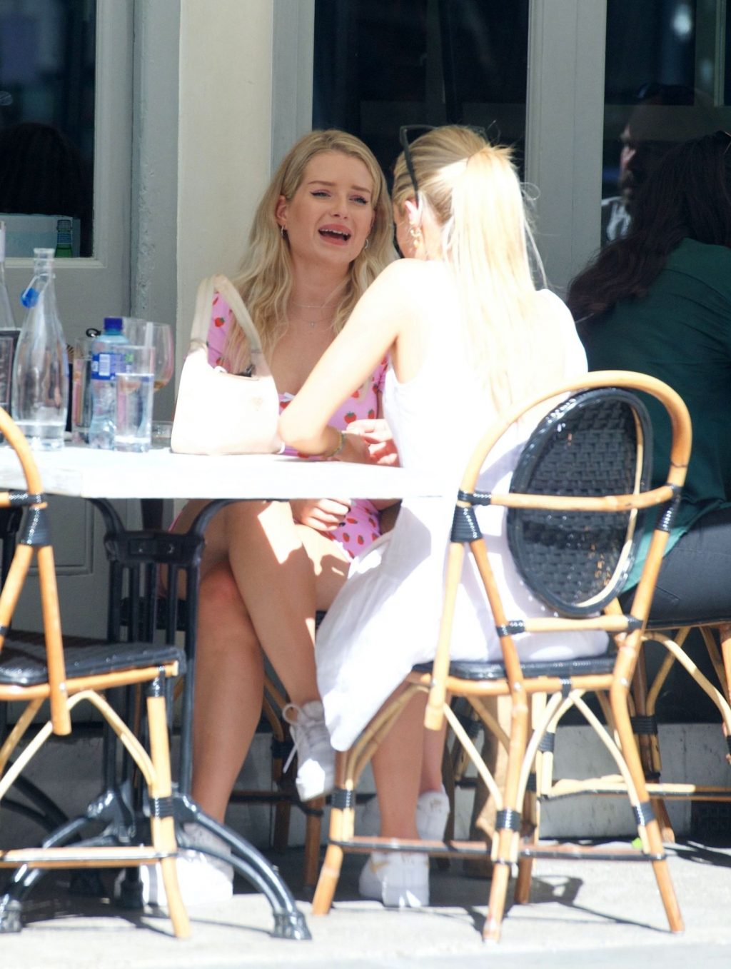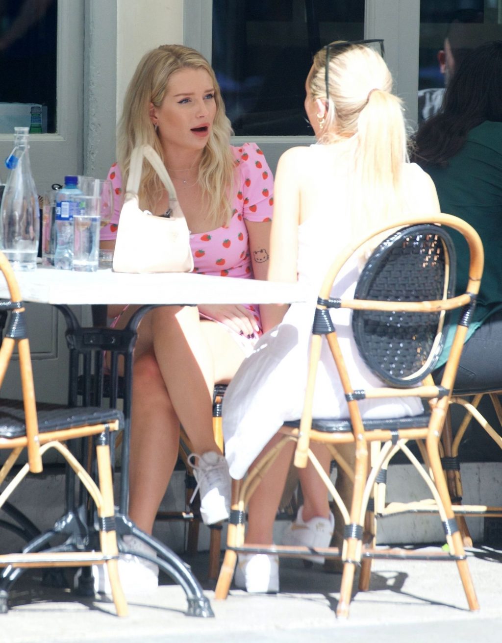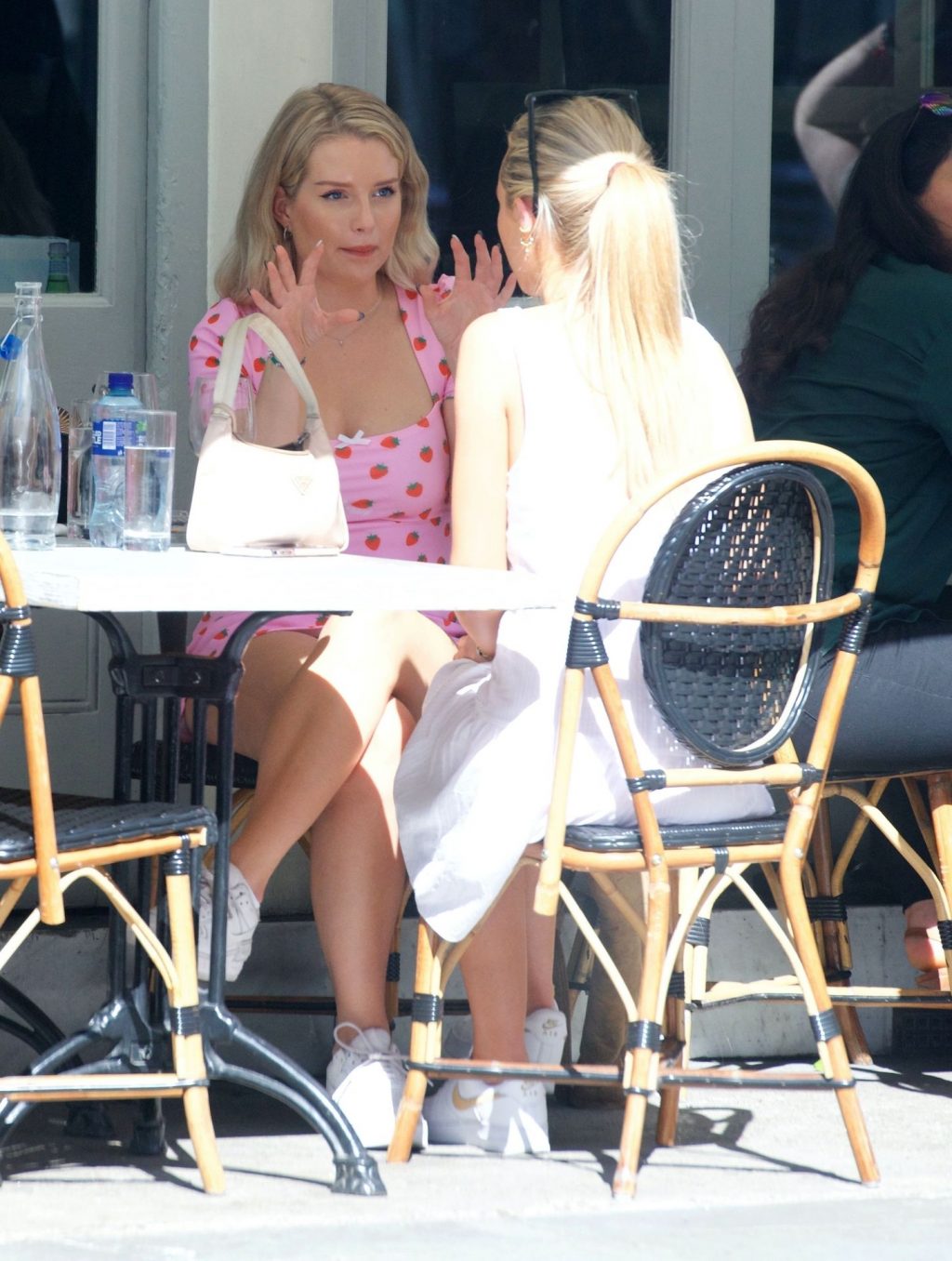 Lottie Moss casi detiene el tráfico mientras lleva un vestido muy corto sentada en una mesa, teniendo una conversación animada con una amiga. Su vestido rosa tenía pequeñas fresas por todas partes. Sin el tenis de Wimbledon este año, que debería haber terminado el domingo pasado, al menos Lottie llevó sus fresas.