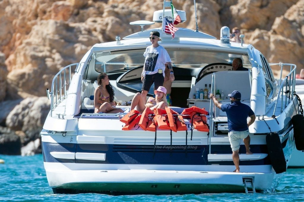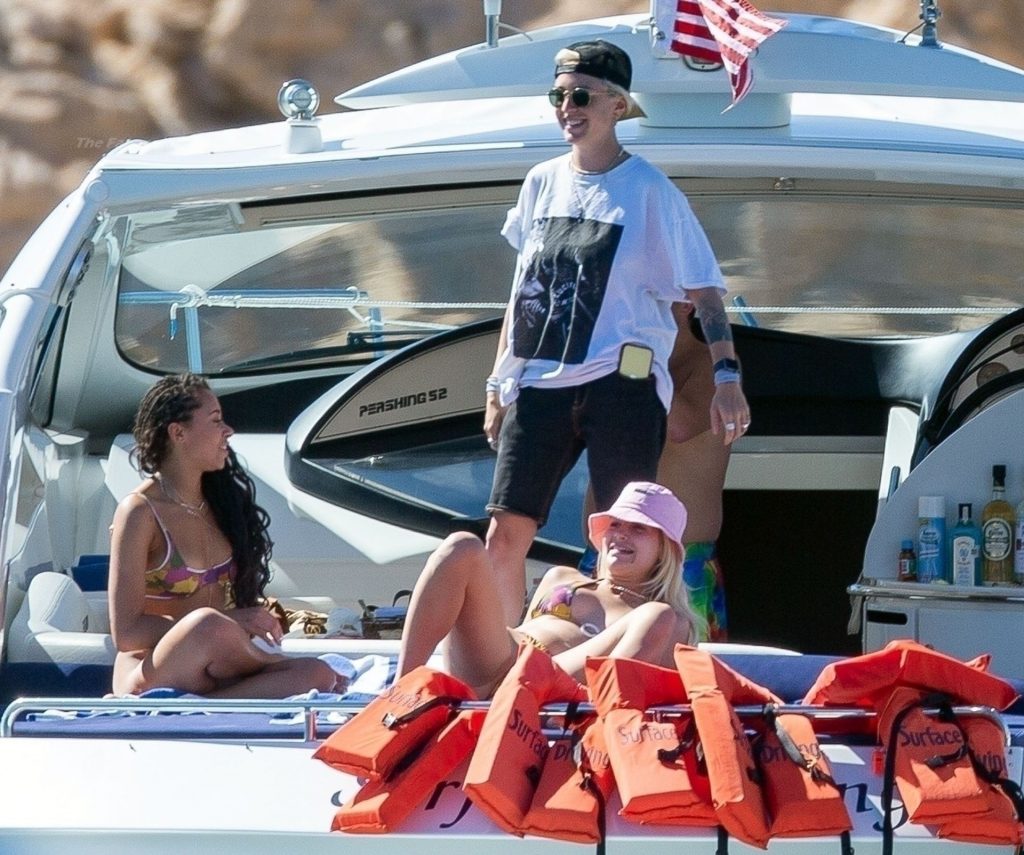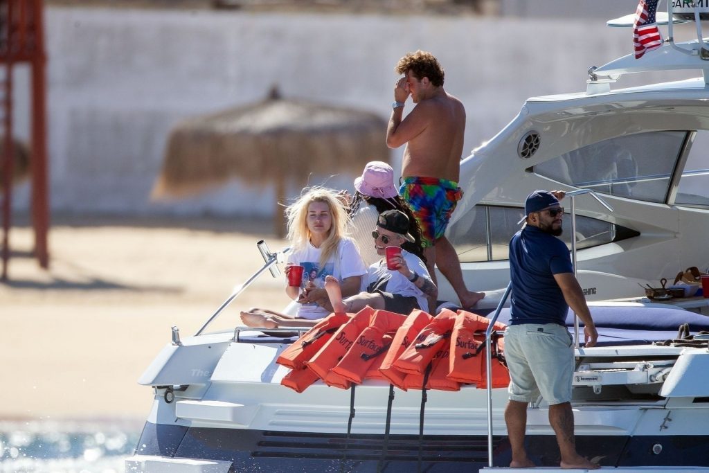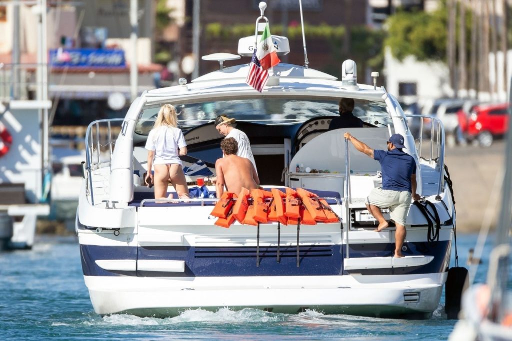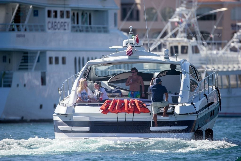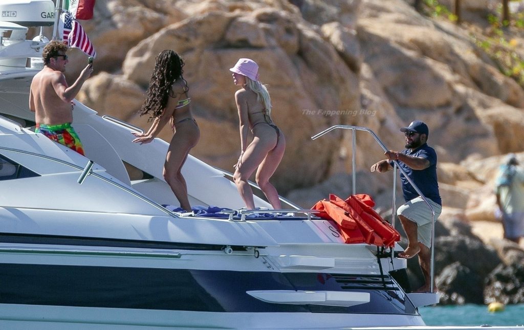 La modelo fue vista con amigos disfrutando del caluroso clima mexicano mientras bebían y bailaban en un barco, mostrando su sexy físico con un conjunto de bikini multicolor realmente escaso.