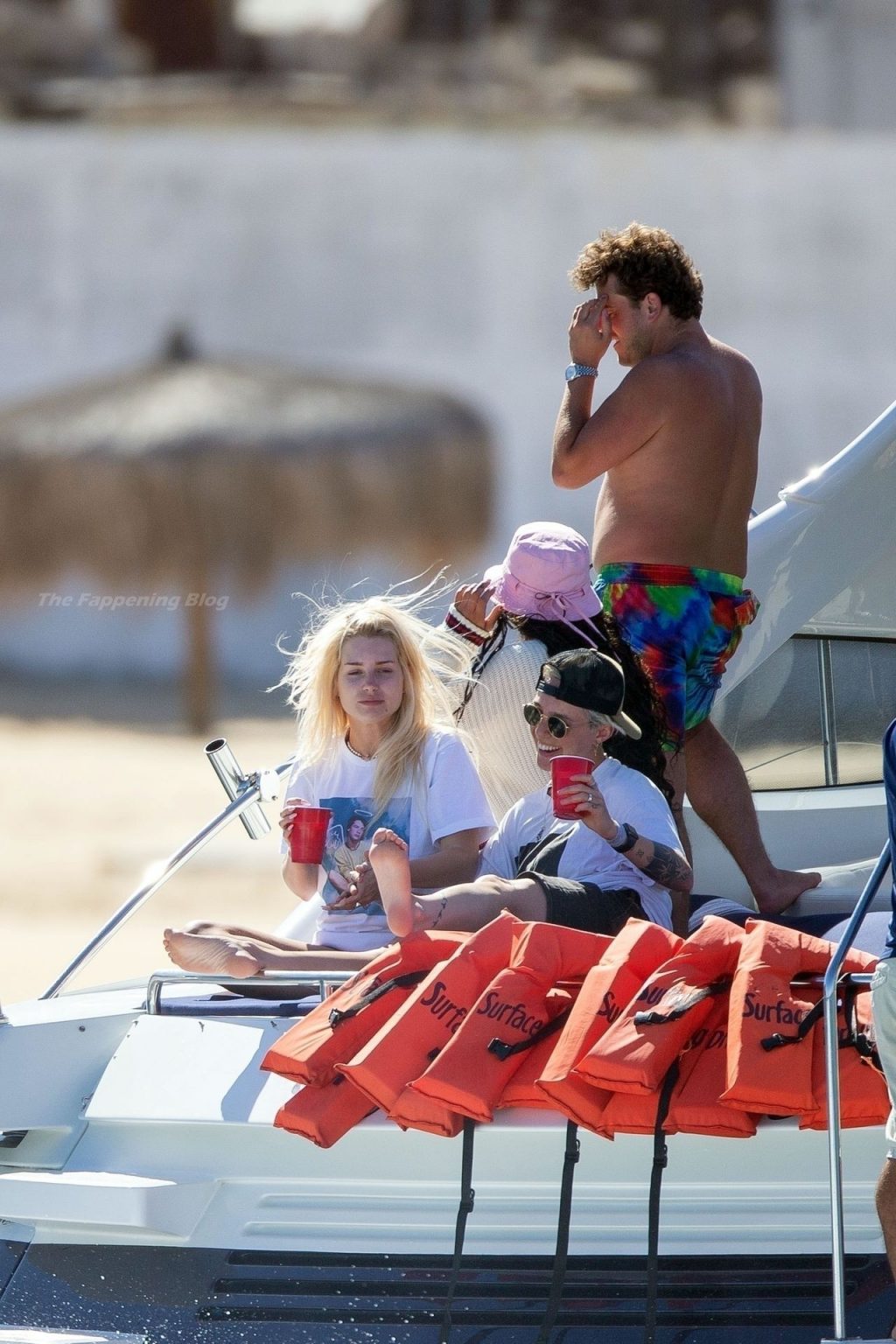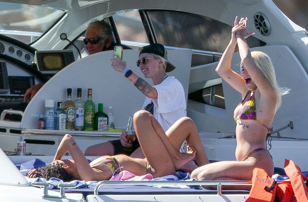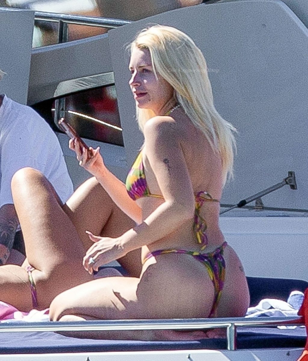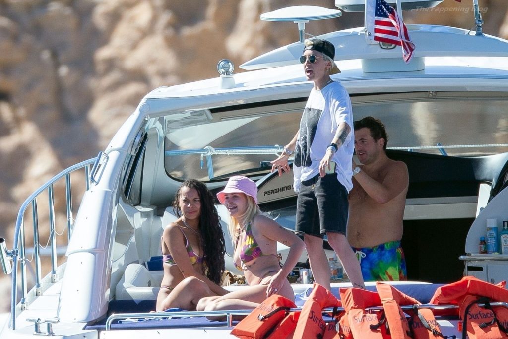 La modelo fue vista con amigos disfrutando del caluroso clima mexicano mientras bebían y bailaban en un barco, mostrando su sexy físico con un conjunto de bikini multicolor realmente escaso.
