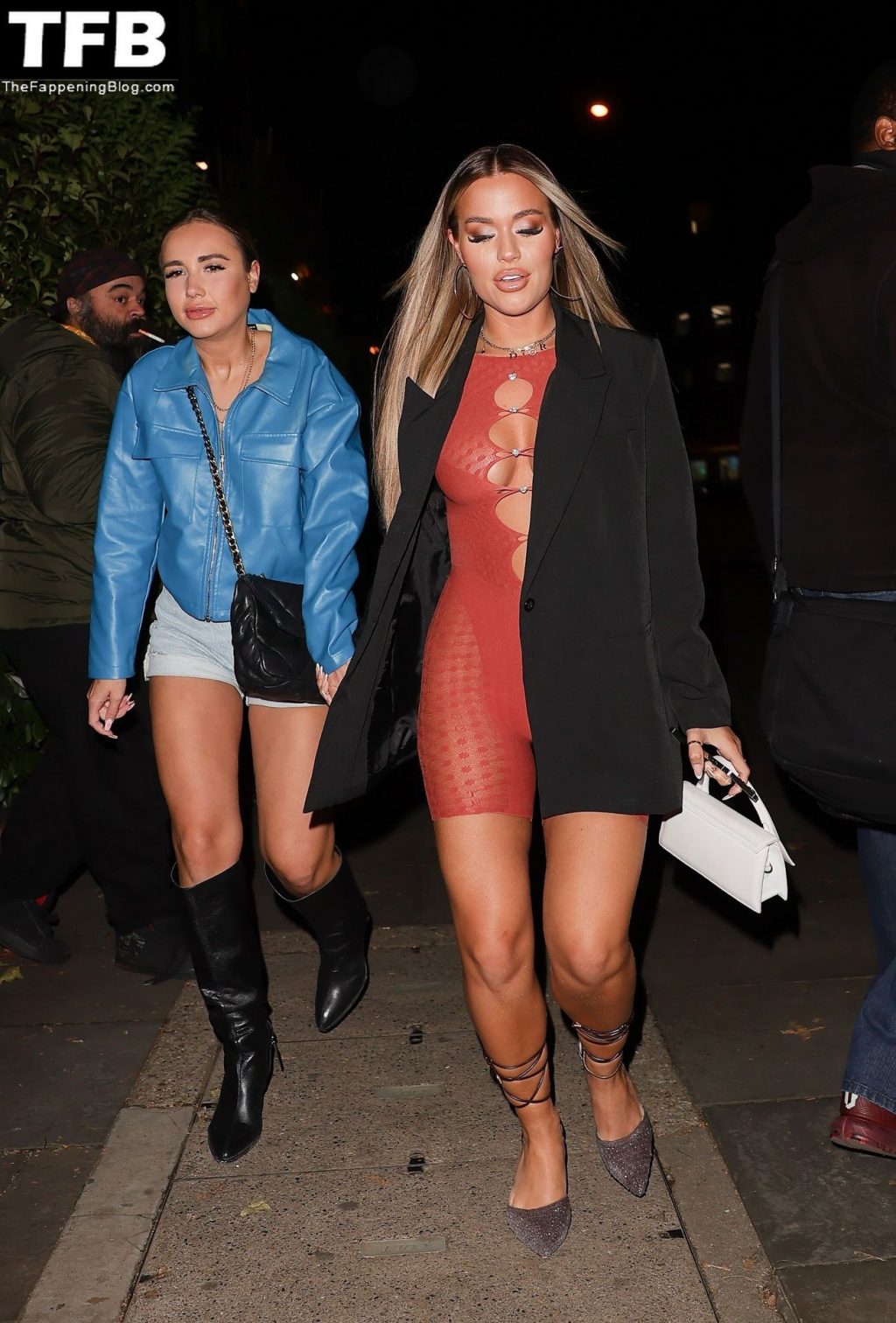 La estrella de las redes sociales Lottie Tomlinson luce espectacular con un mono rojo en la fiesta de moda de Molly Mae en Londres, 21/10/2021.