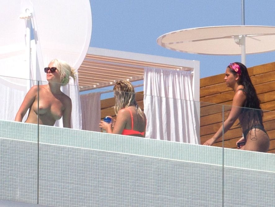 ‘Estrellas de ‘X Factor’ Louisa Johnson, Chloe Paige y Havva Rebke disfrutaron del sol, gozando de unas vacaciones de verano topless en Ibiza, 18/08/2017.