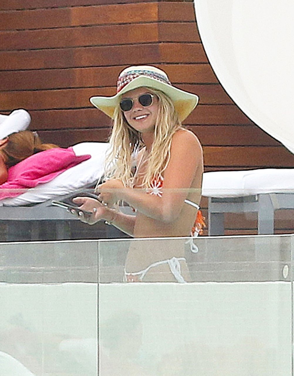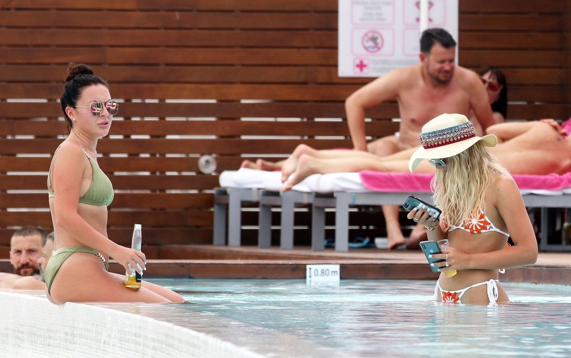 2015 ganadora de X Factor Louisa Johnson (20) fotografiada mostrando su trasero firme mientras se relaja junto a la piscina con una amiga en Ibiza, 07/03/2018. La cantante de ”Tear’s” fue vista luciendo relajada mientras disfrutaba una cerveza y revisaba su teléfono antes de darse un refrescante baño en la piscina.