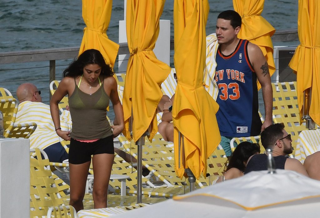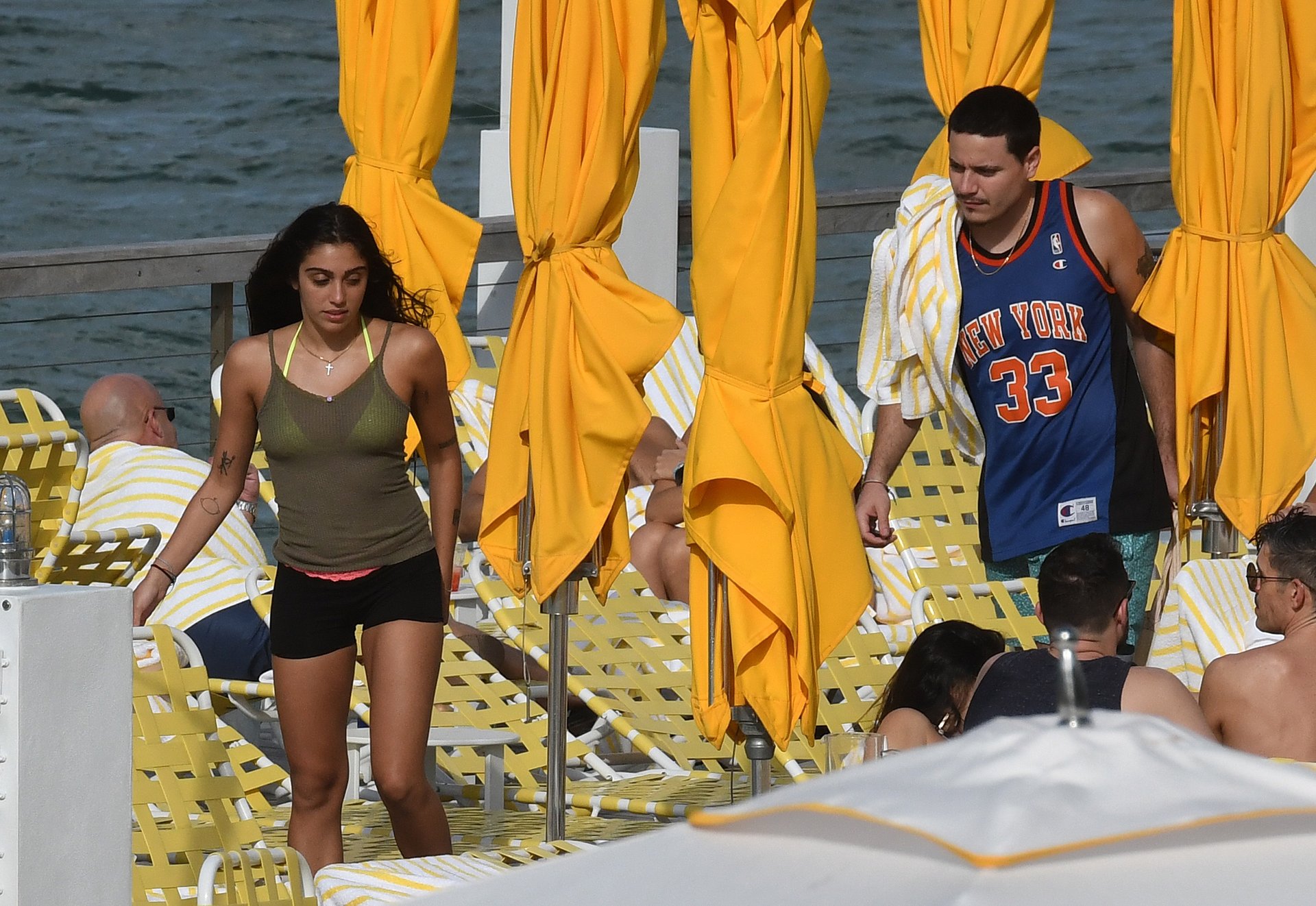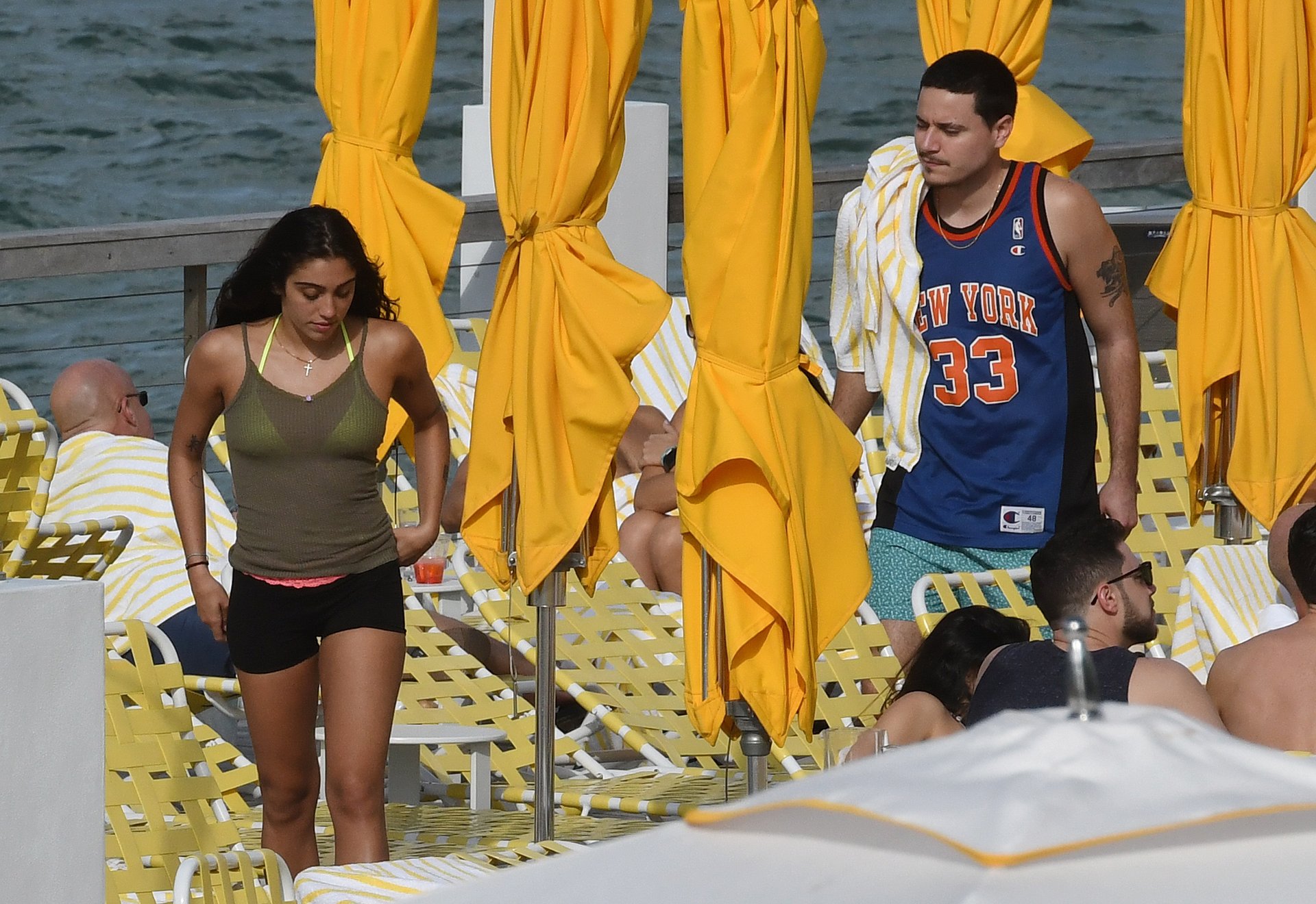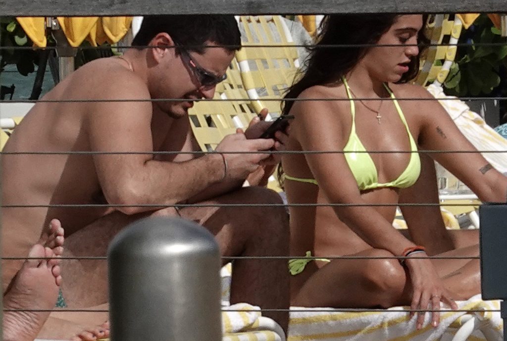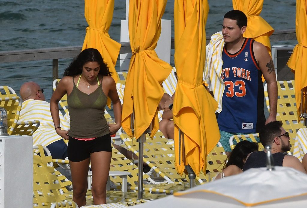 La hija de Madonna, Lourdes Leon, lleva un bikini amarillo mientras se broncea con su novio en Miami, 15/12/2019.