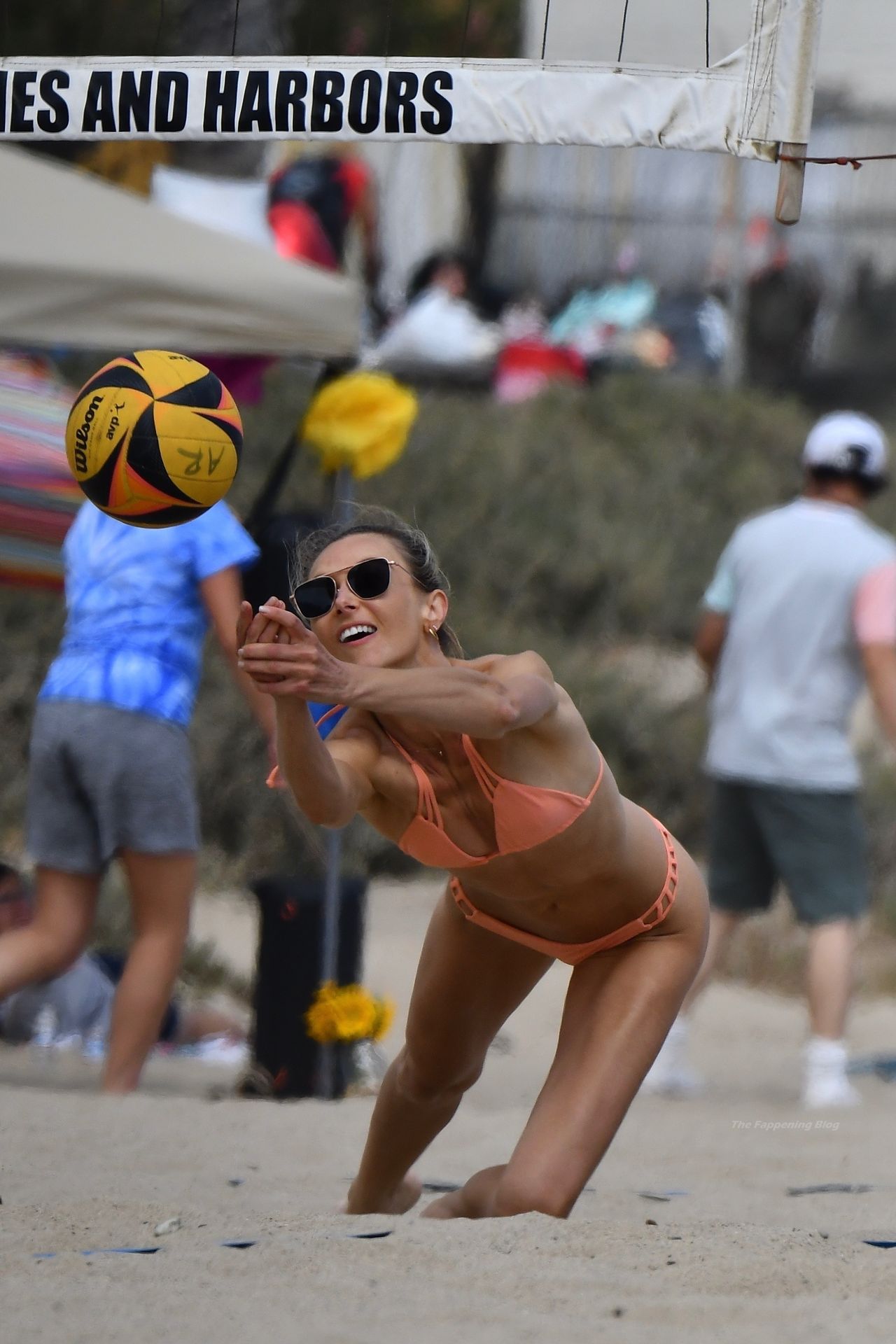 La modelo brasileña Ludi Delfino pasa el día recostada en la orilla disfrutando de un juego de voleibol de playa – Santa Mónica, 19/06/2021.