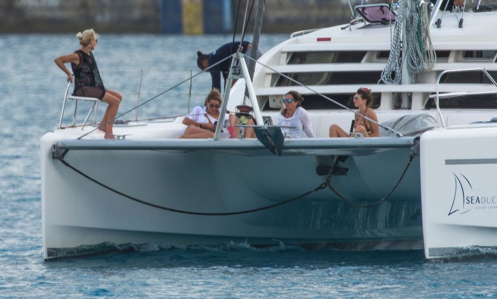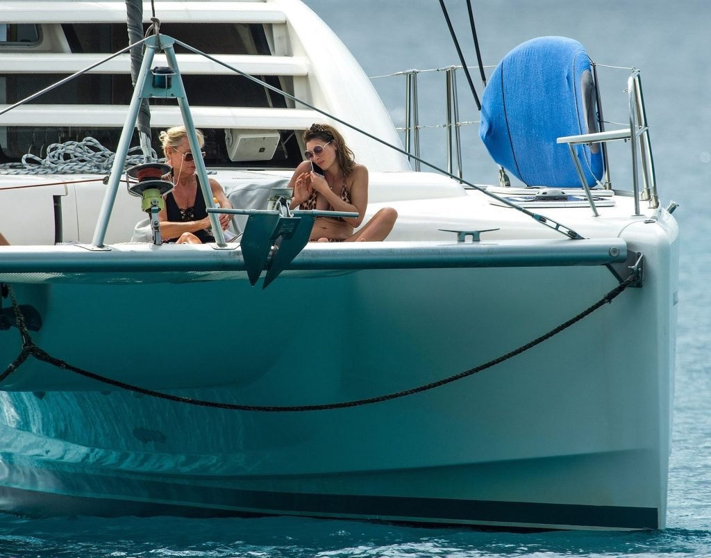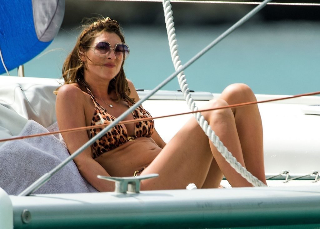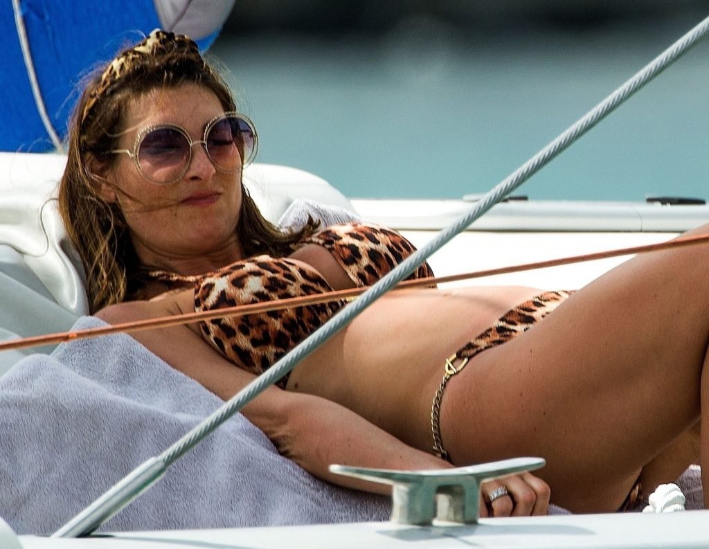 Luisa Collins (Zissman) se relaja con amigos en un yate en Barbados, 16/03/2019. La emprendedora inglesa de 31 años y La Estrella de The Fappening mostró su cuerpo de playa con un bikini diminuto de estampado animal.
